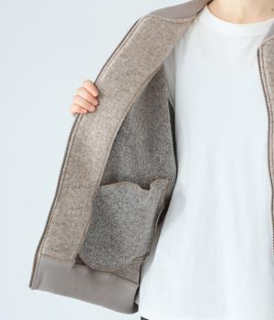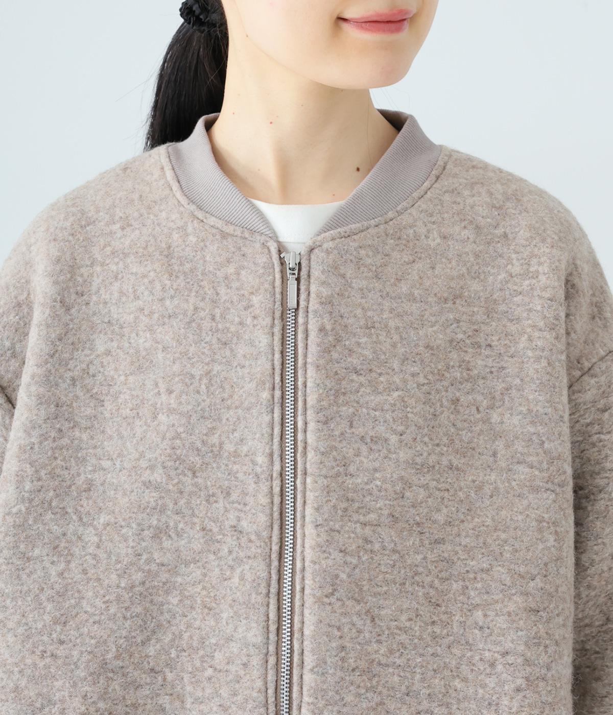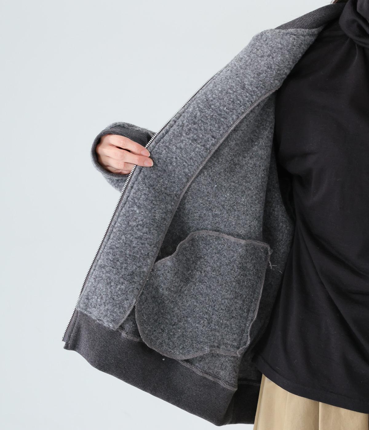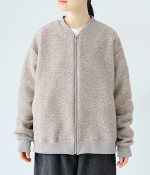 プードルニット生地のやわらかな風合いが女性らしさを運ぶブルゾン。袖口と裾、襟にリブを使用しカジュアルにデザインしました。フロントはファスナー仕様でさっと着脱できるのが◎。両サイドには便利なポケットつきです。