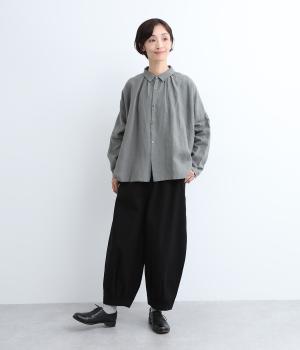 ウエストと裾にタックを入れたコクーンシルエットで個性を発揮。立体的ながら足元はすっきりとしているのでソックスやシューズとのコーディネートがたのしめます。ファスナー開きで脱ぎはきしやすく、後ろウエストはゴム入りでフィット感も◎。