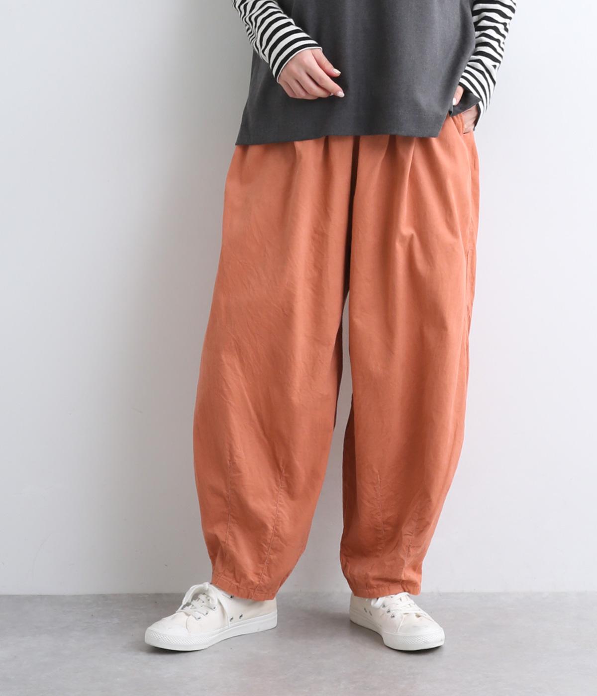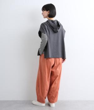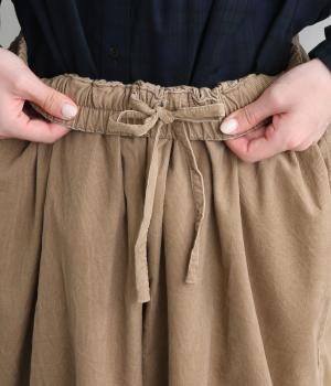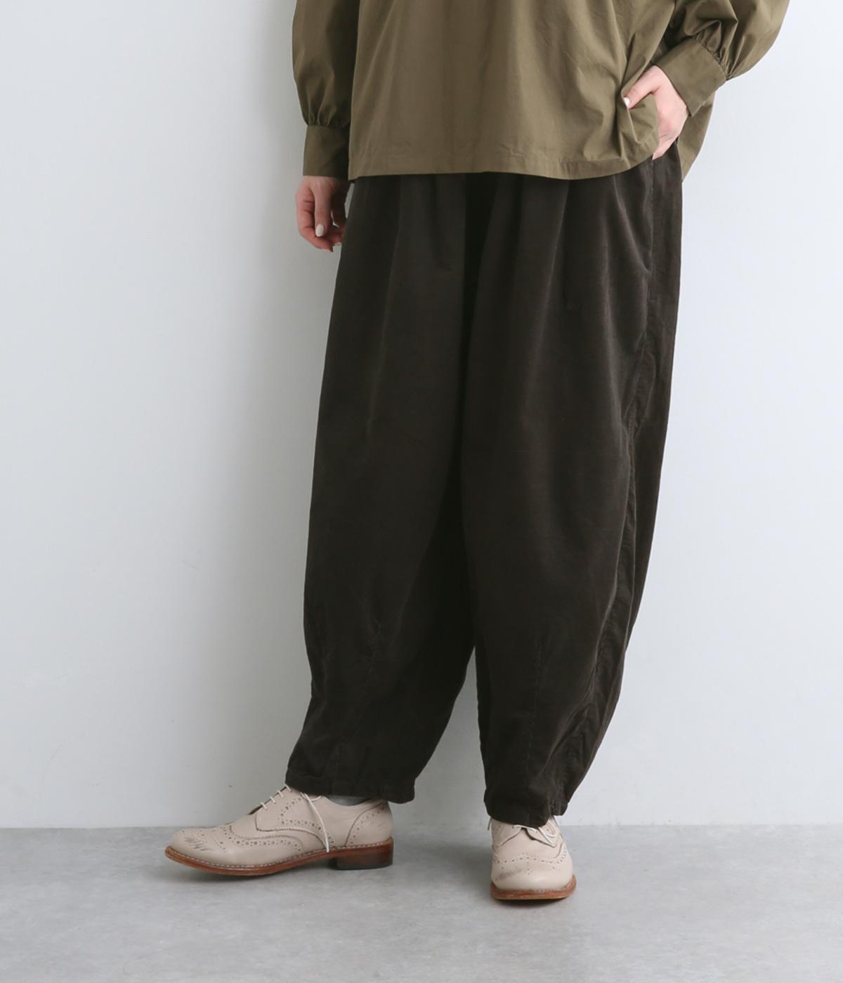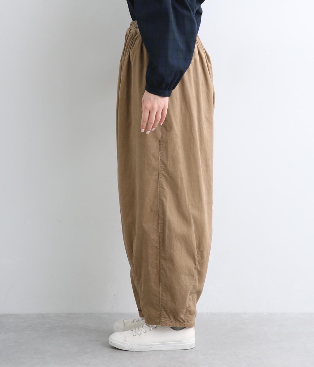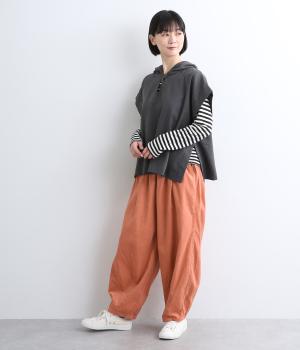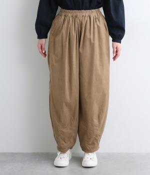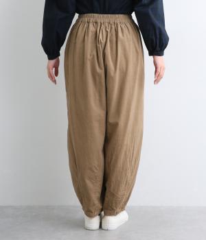 ゆったりとしたボリューム感に裾ダーツでコクーンシルエットに仕上げました。デイリーにスタイリングしやすく、さり気なくニュアンスをもたらしてくれるアイテムで、こなれ感ある装いが完成。ウエストはフィット感のある総ゴム&内紐入りです。