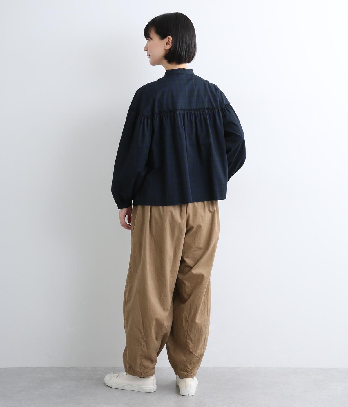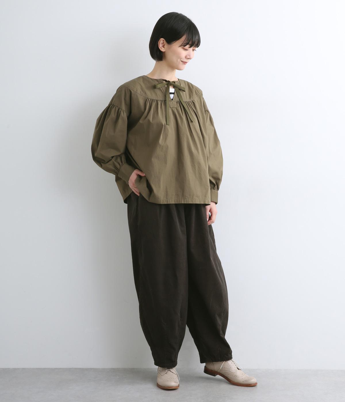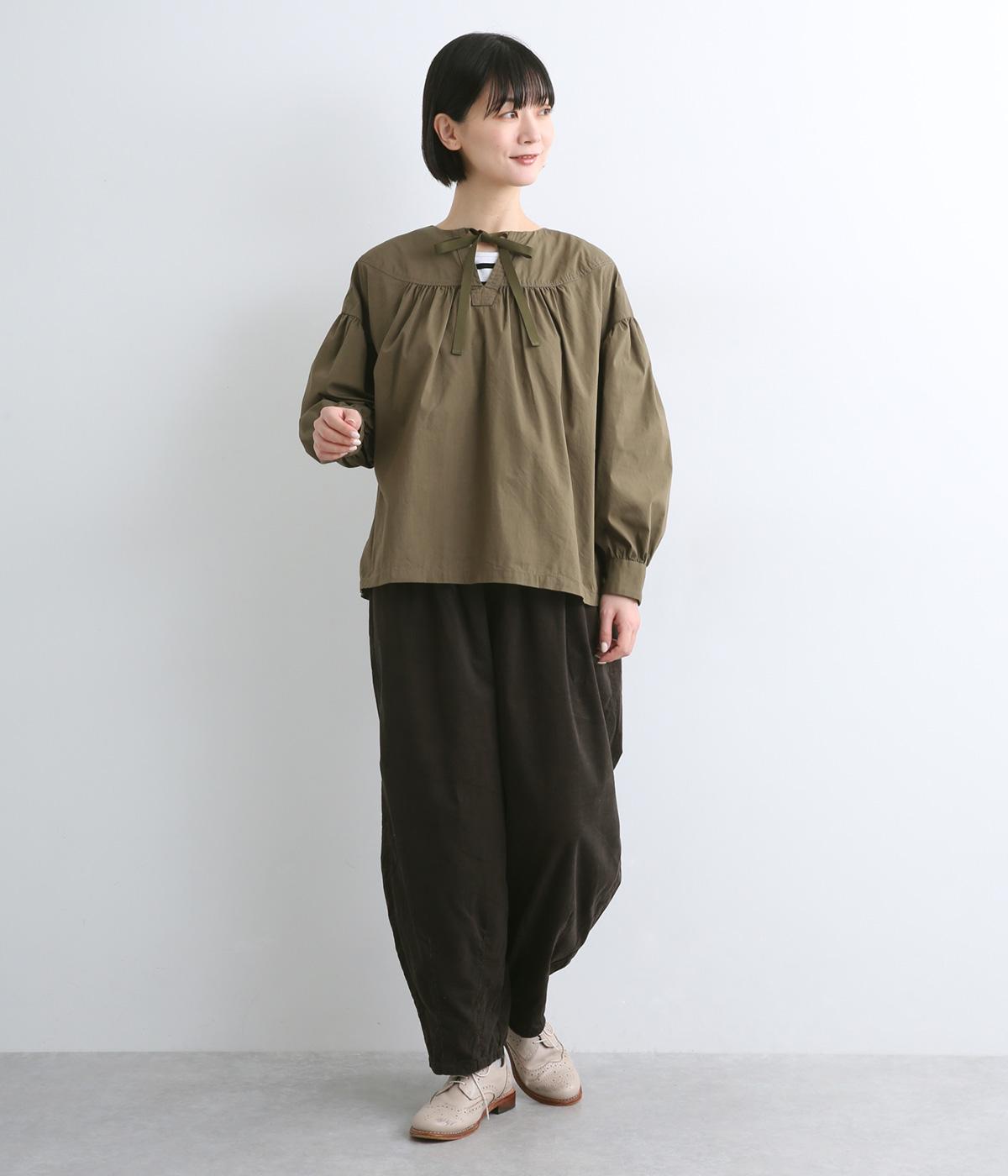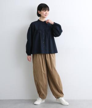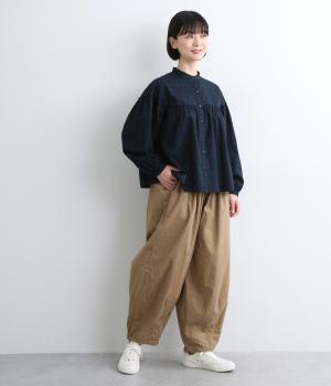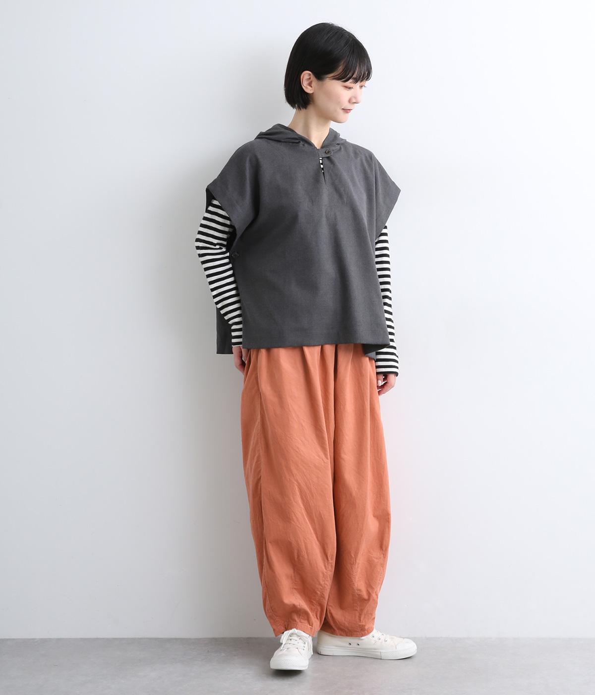 ゆったりとしたボリューム感に裾ダーツでコクーンシルエットに仕上げました。デイリーにスタイリングしやすく、さり気なくニュアンスをもたらしてくれるアイテムで、こなれ感ある装いが完成。ウエストはフィット感のある総ゴム&内紐入りです。