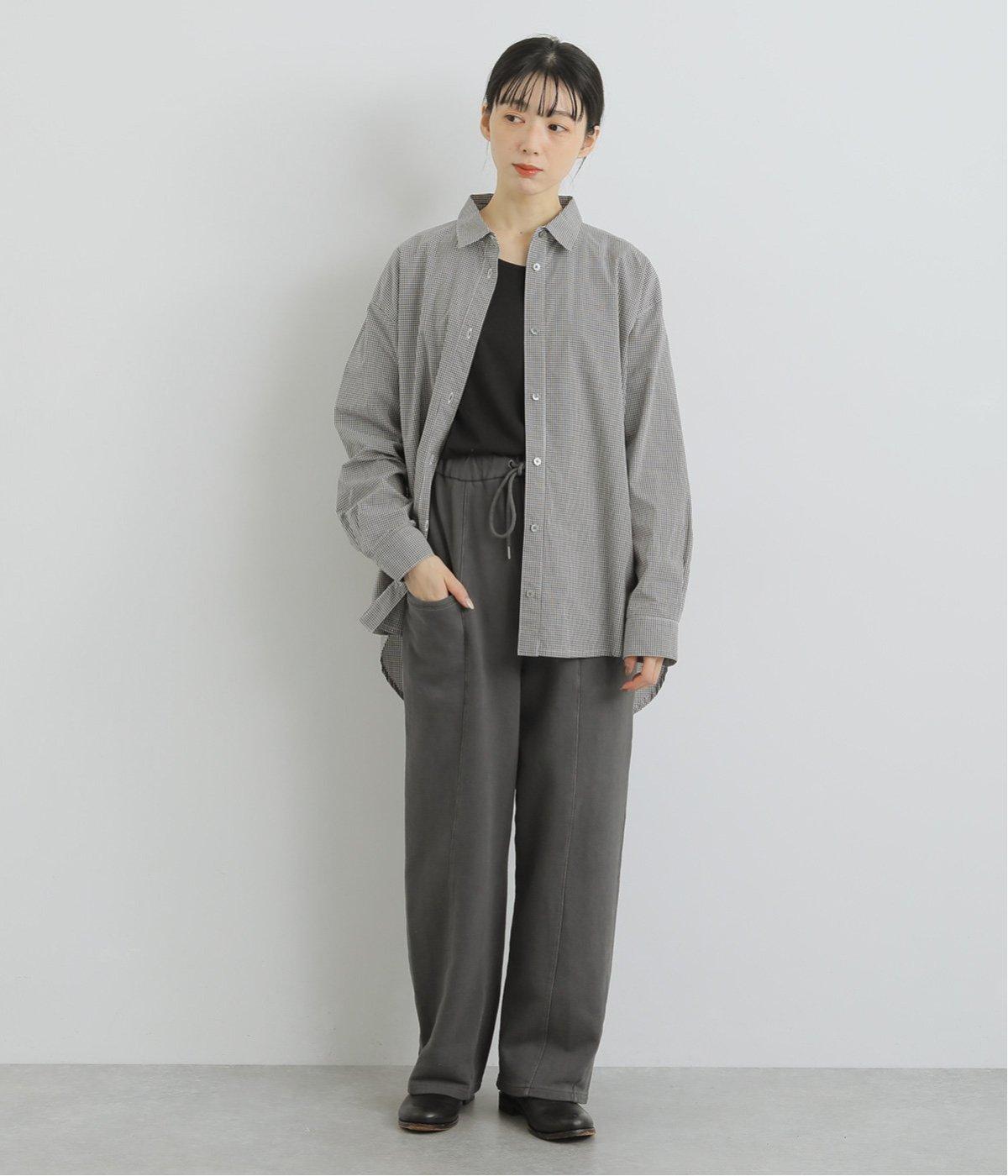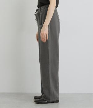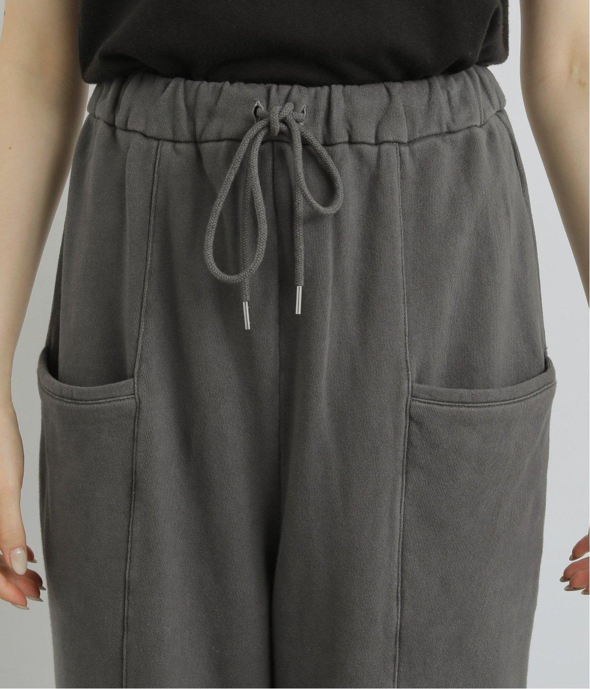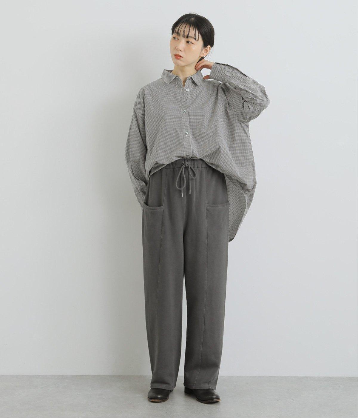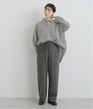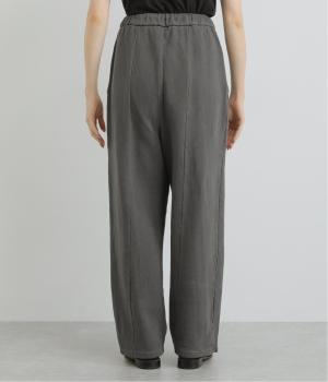 適度にゆとりを持たせつつも、センターの切り替えが脚のラインをすっきりと見せてくれます。立体感のあるサイドポケットは気になる太ももをカバー。味わい深い表情を持つ生地にもこだわった、大人の装いにぴったりな一本です。ウエストは総ゴム仕様で、アウト紐つき。