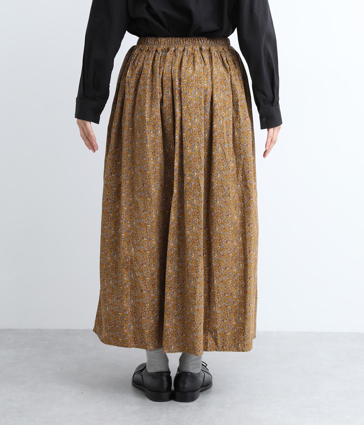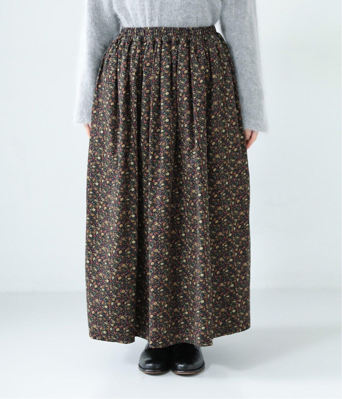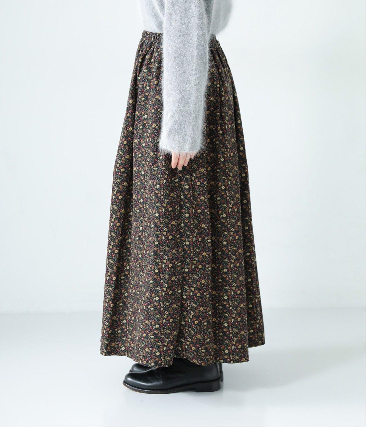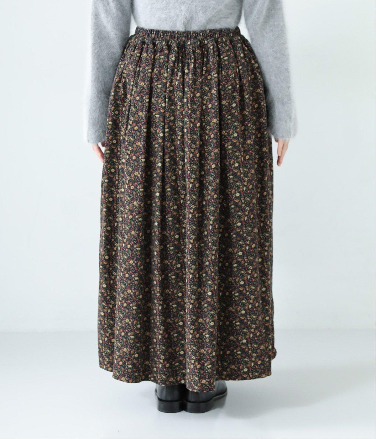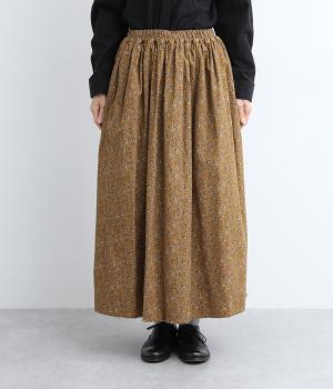 クラシカル&レトロな花柄が雰囲気のある装いに導いてくれるギャザースカート。分量を持たせつつロング丈で甘すぎない、大人顔なアイテムにまとまっています。ウエストはオールゴムに内紐入りではきやすいのも好ポイント。