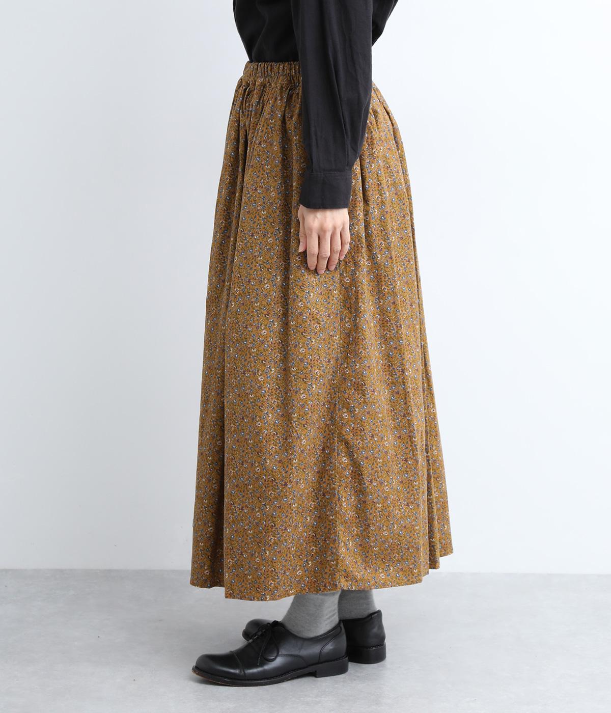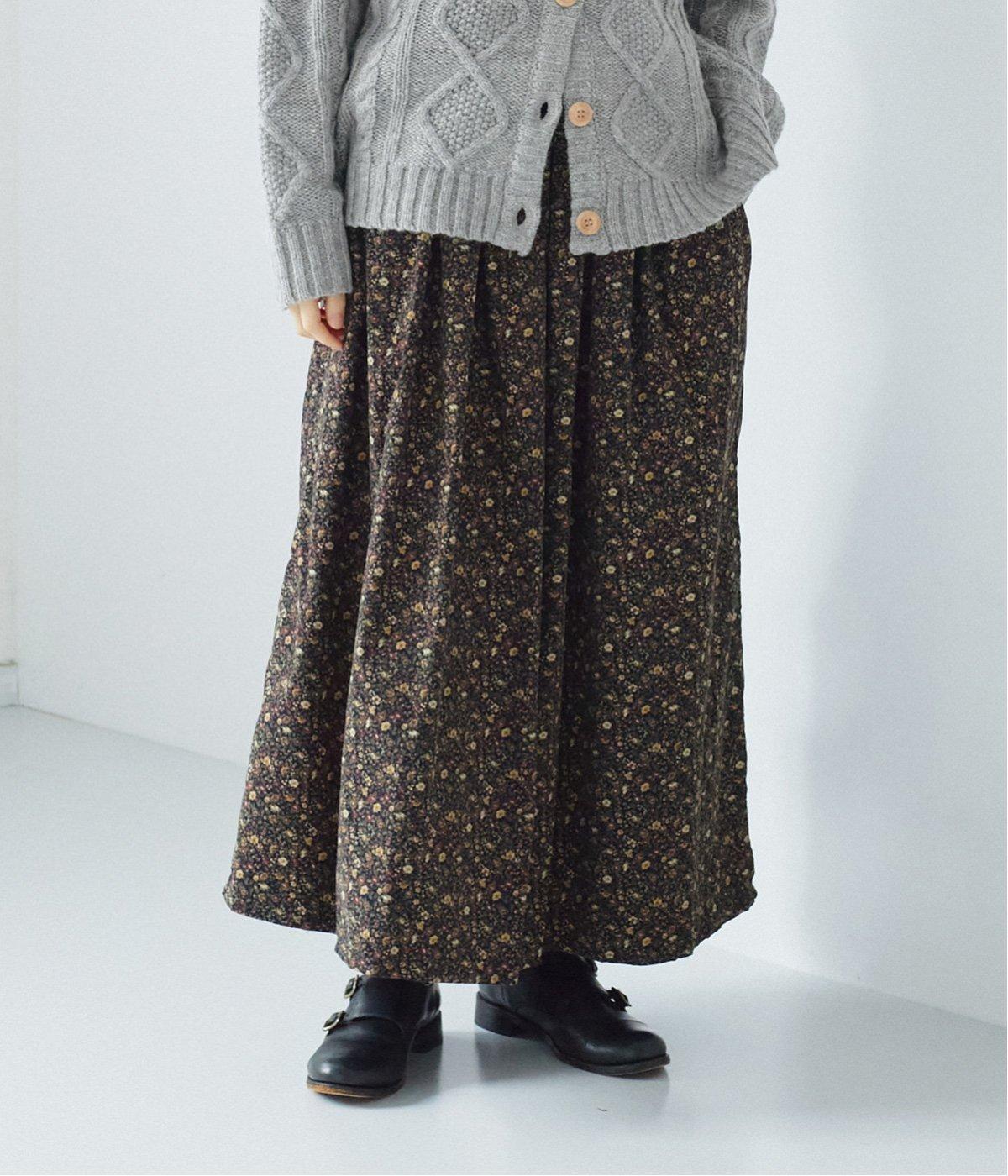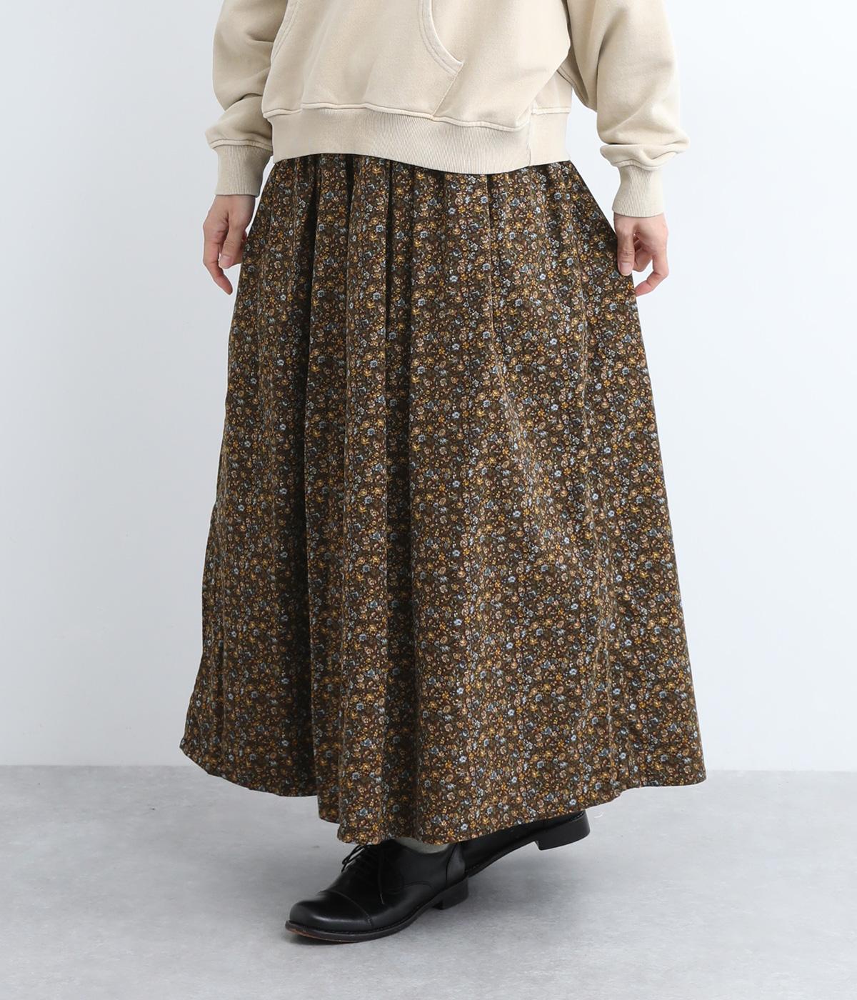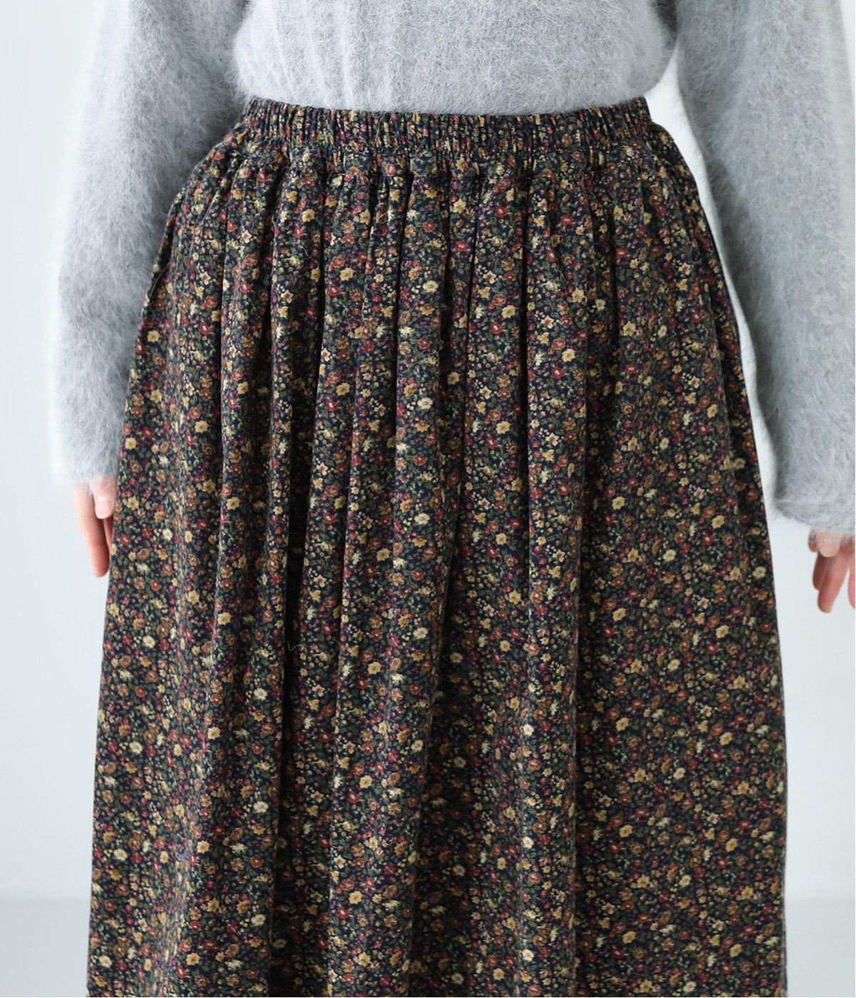 クラシカル&レトロな花柄が雰囲気のある装いに導いてくれるギャザースカート。分量を持たせつつロング丈で甘すぎない、大人顔なアイテムにまとまっています。ウエストはオールゴムに内紐入りではきやすいのも好ポイント。
