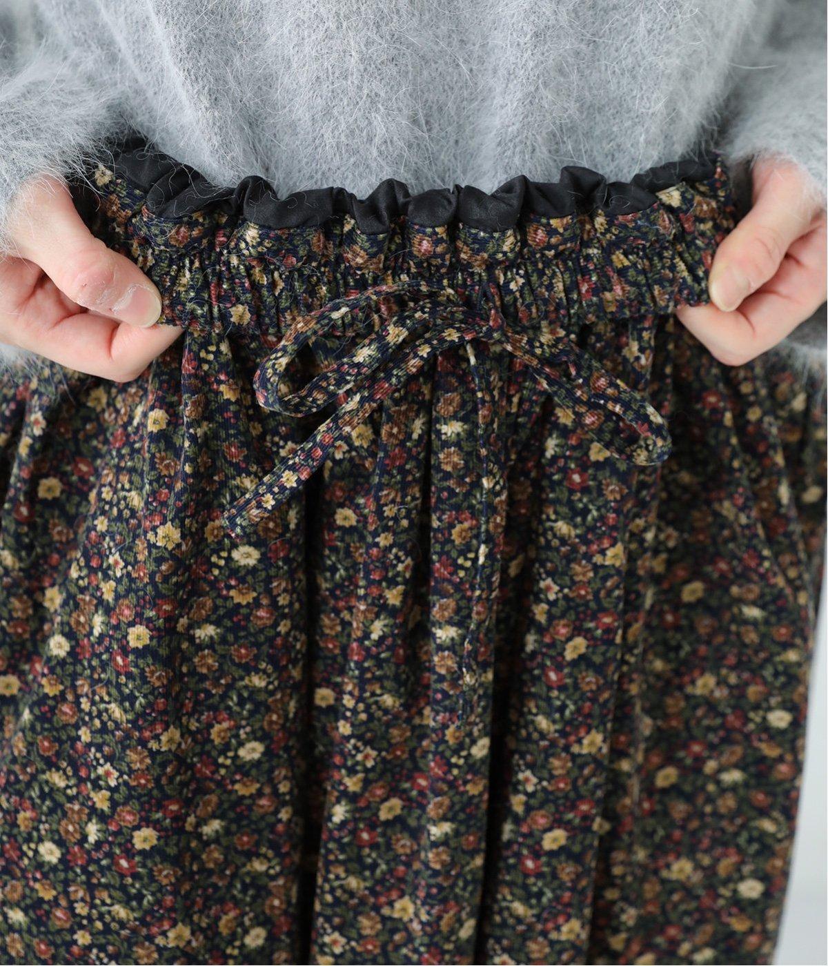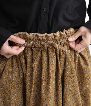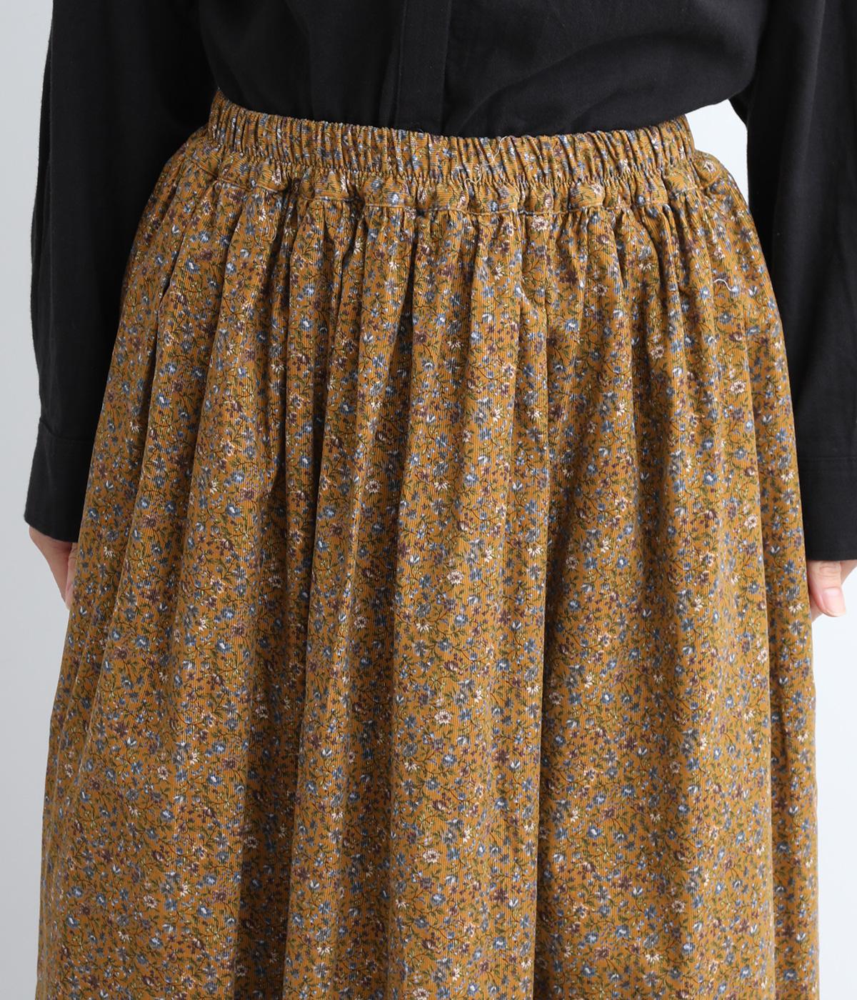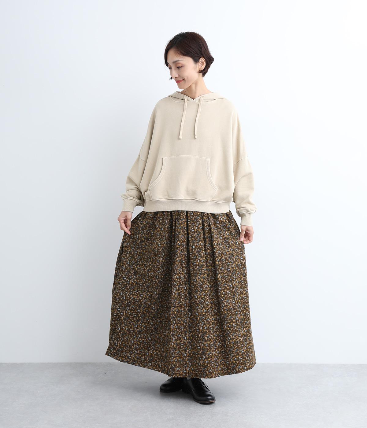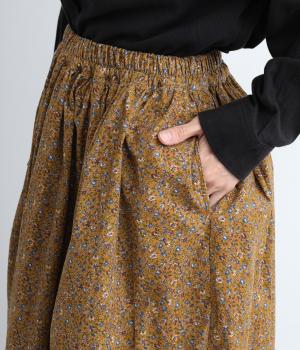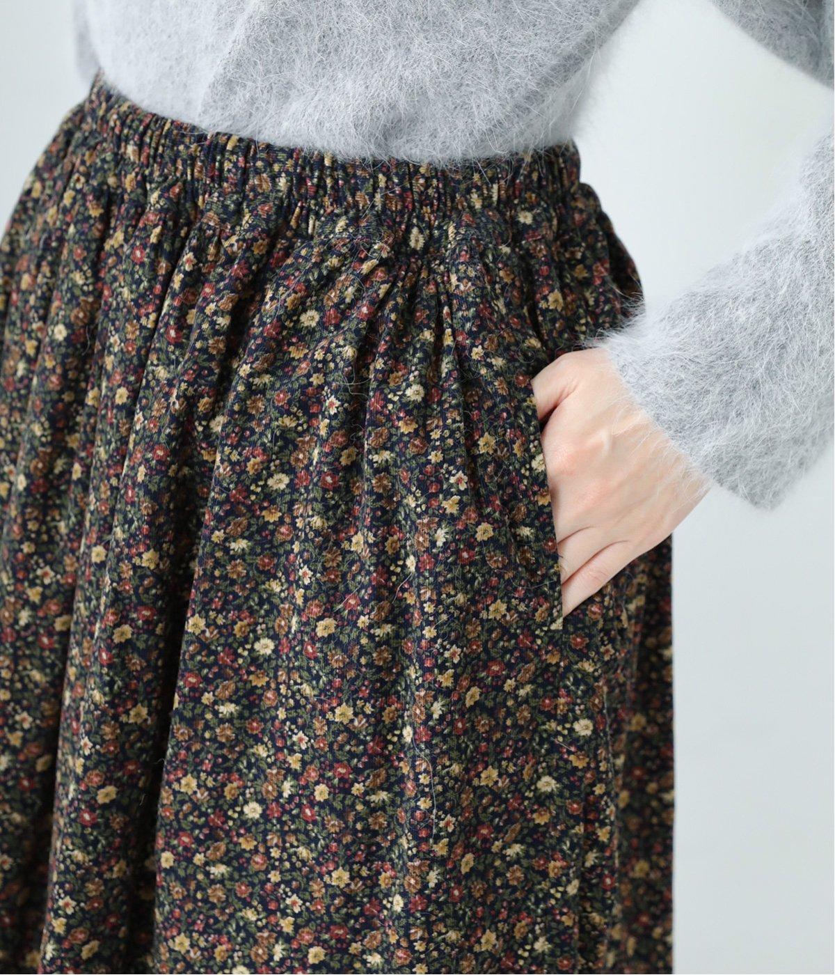 クラシカル&レトロな花柄が雰囲気のある装いに導いてくれるギャザースカート。分量を持たせつつロング丈で甘すぎない、大人顔なアイテムにまとまっています。ウエストはオールゴムに内紐入りではきやすいのも好ポイント。
