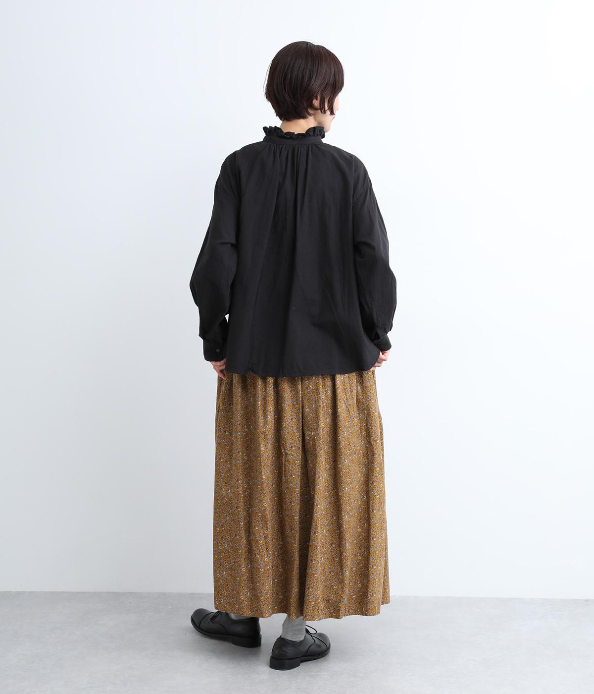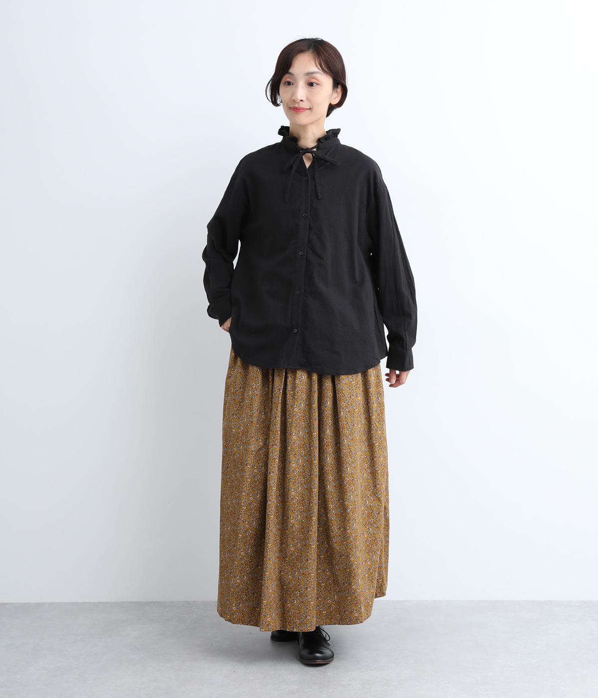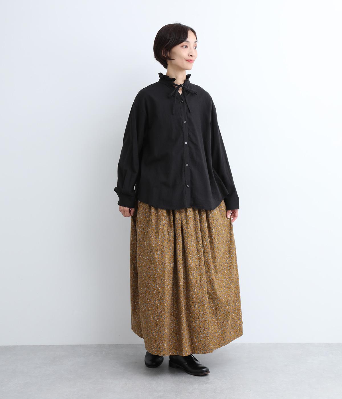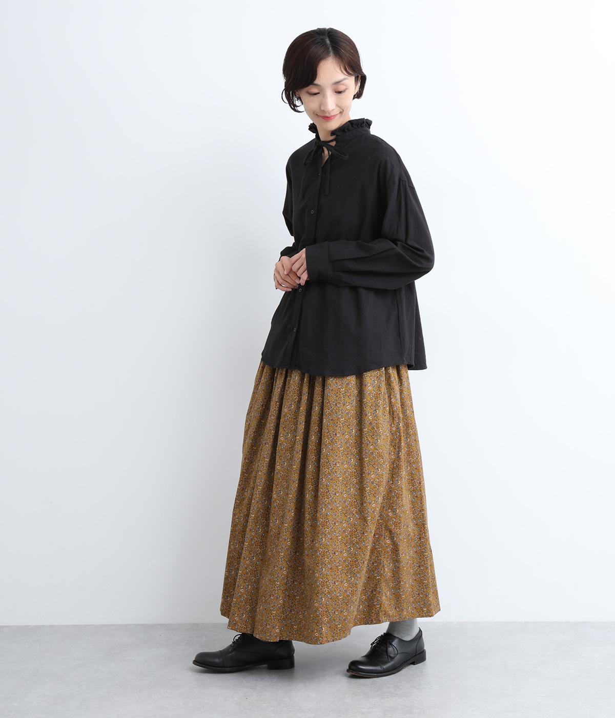 クラシカル&レトロな花柄が雰囲気のある装いに導いてくれるギャザースカート。分量を持たせつつロング丈で甘すぎない、大人顔なアイテムにまとまっています。ウエストはオールゴムに内紐入りではきやすいのも好ポイント。