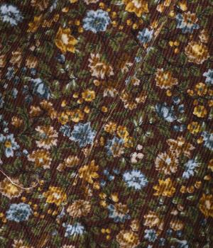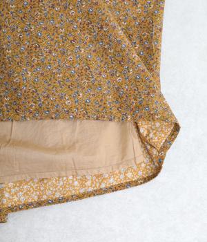 タテ方向に畝のあるコール天生地を使用しています。独特のあたたかみのある表情が特徴で、生地自体は薄手なので扱いやすく仕上がっています。薄手の裏地つきで肌あたりも考慮。