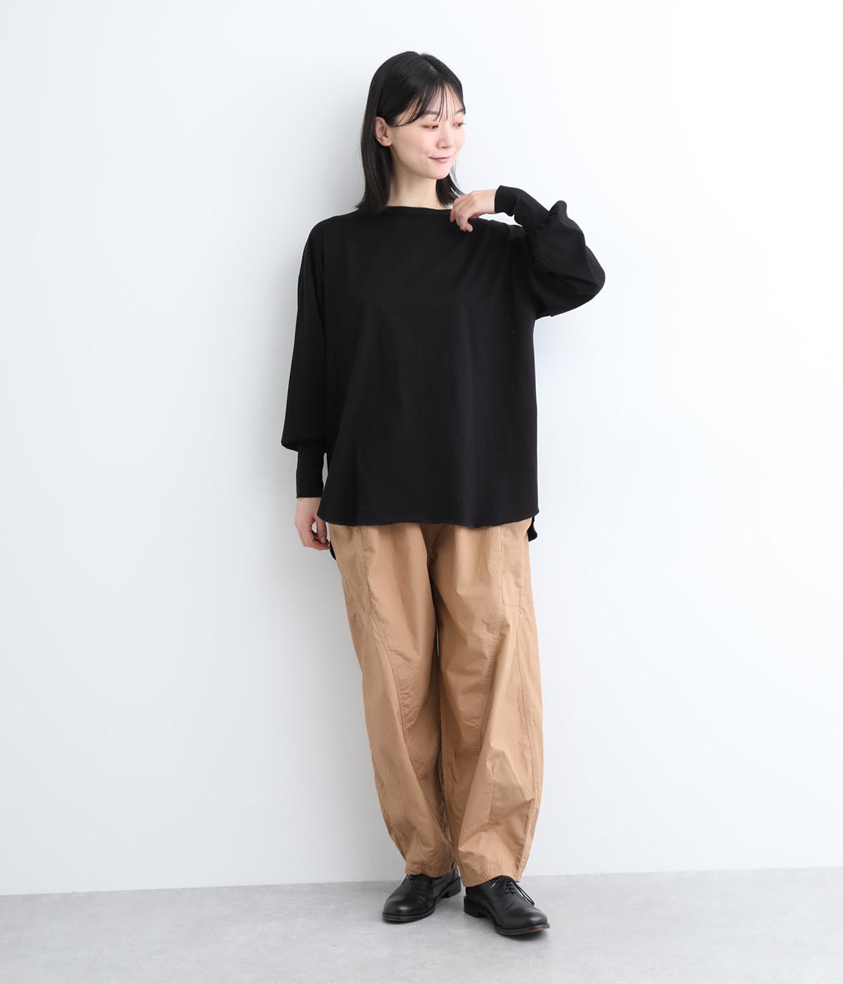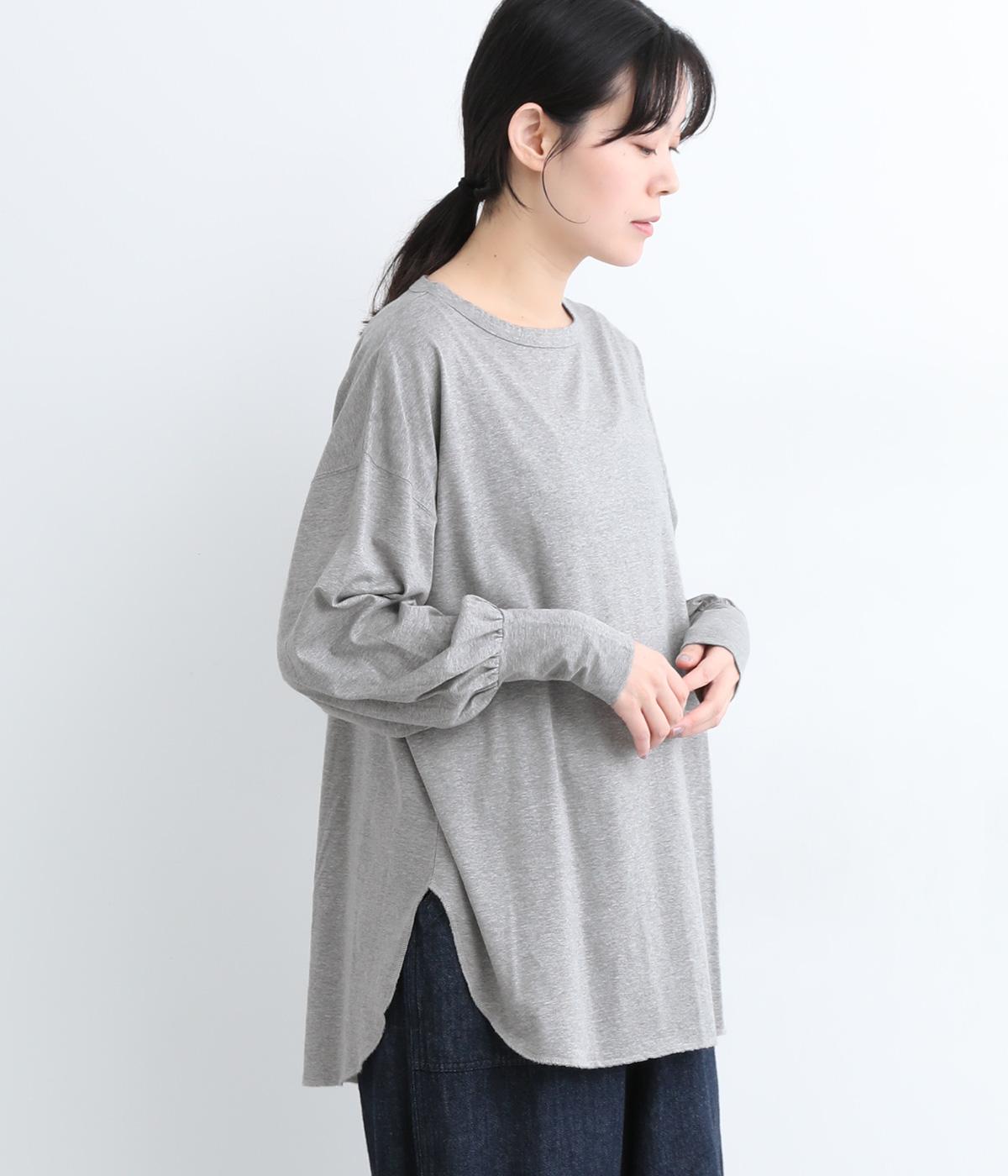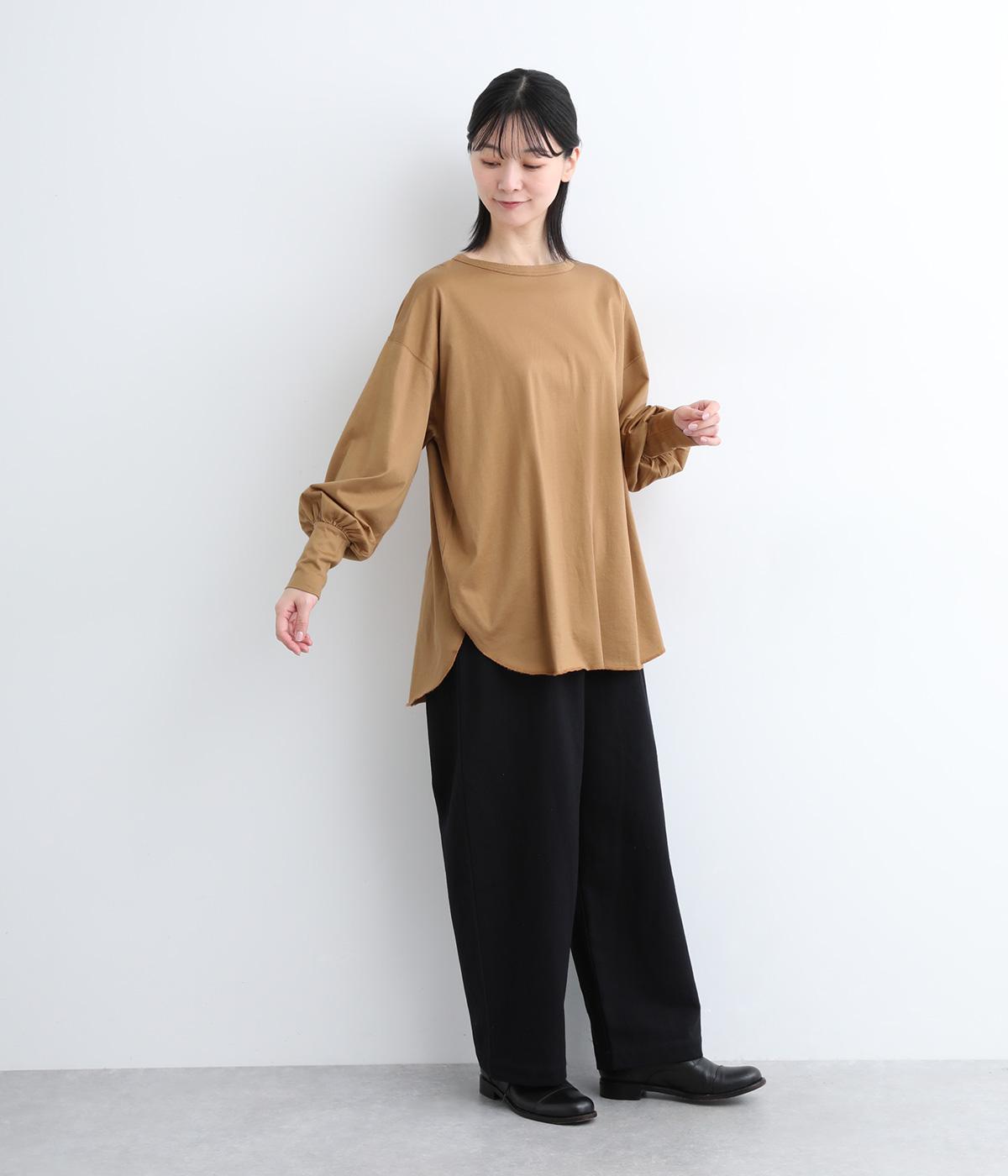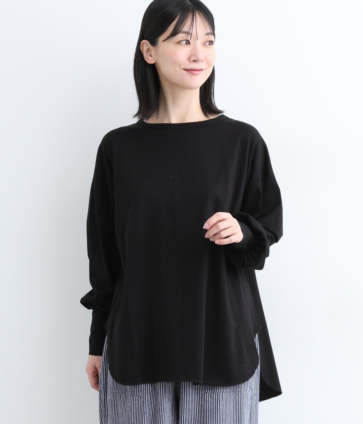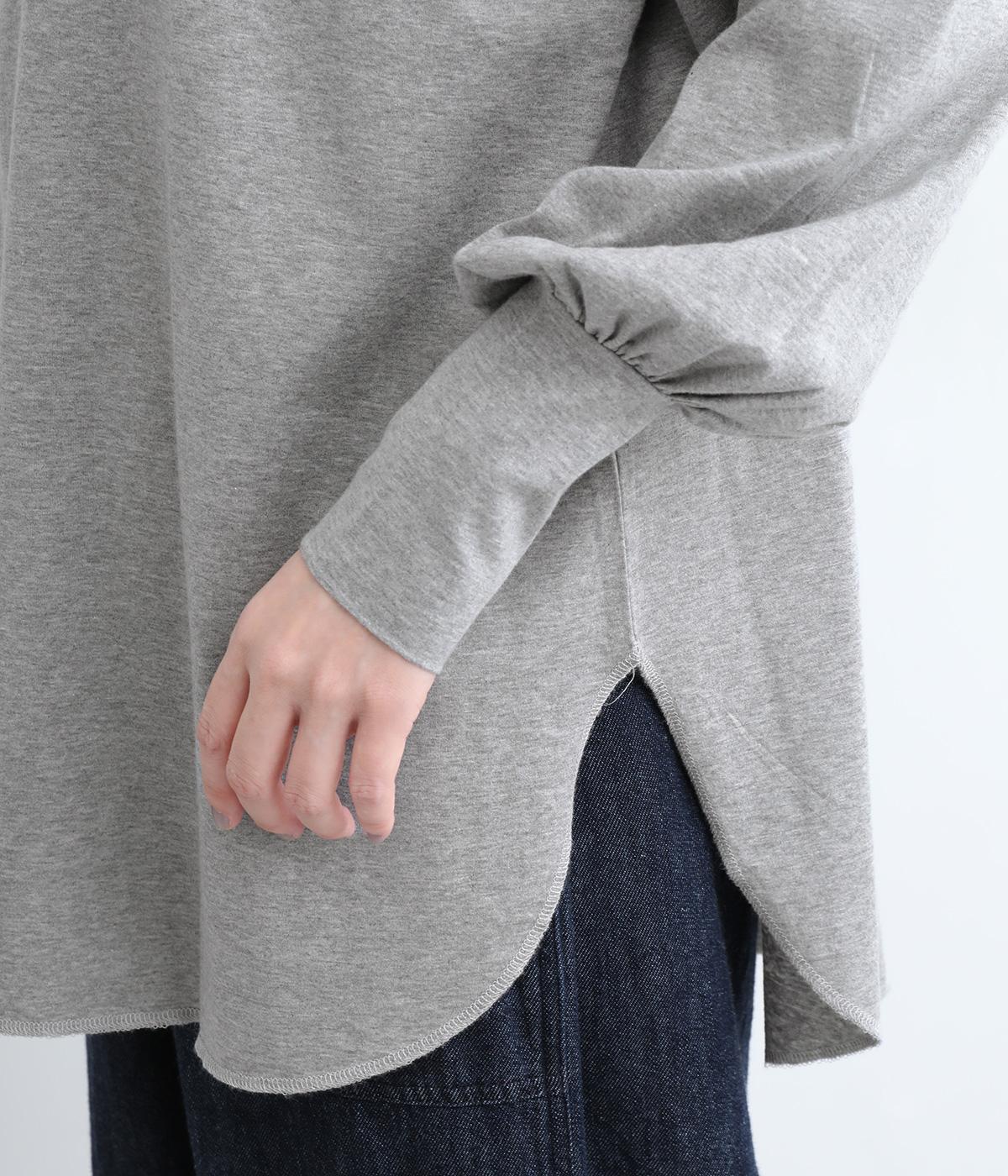 ラウンドカットした前後差のある裾がスタイリングに動きを添えるプルオーバーです。ボリュームのあるバルーン袖に、長めの袖リブが好バランス。シンプルながらも着映えする一枚です。