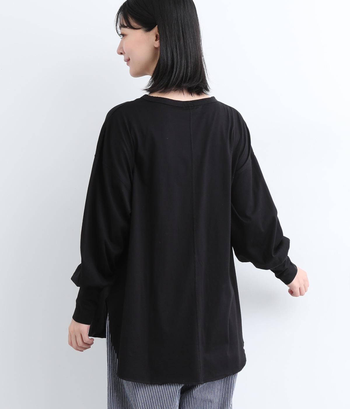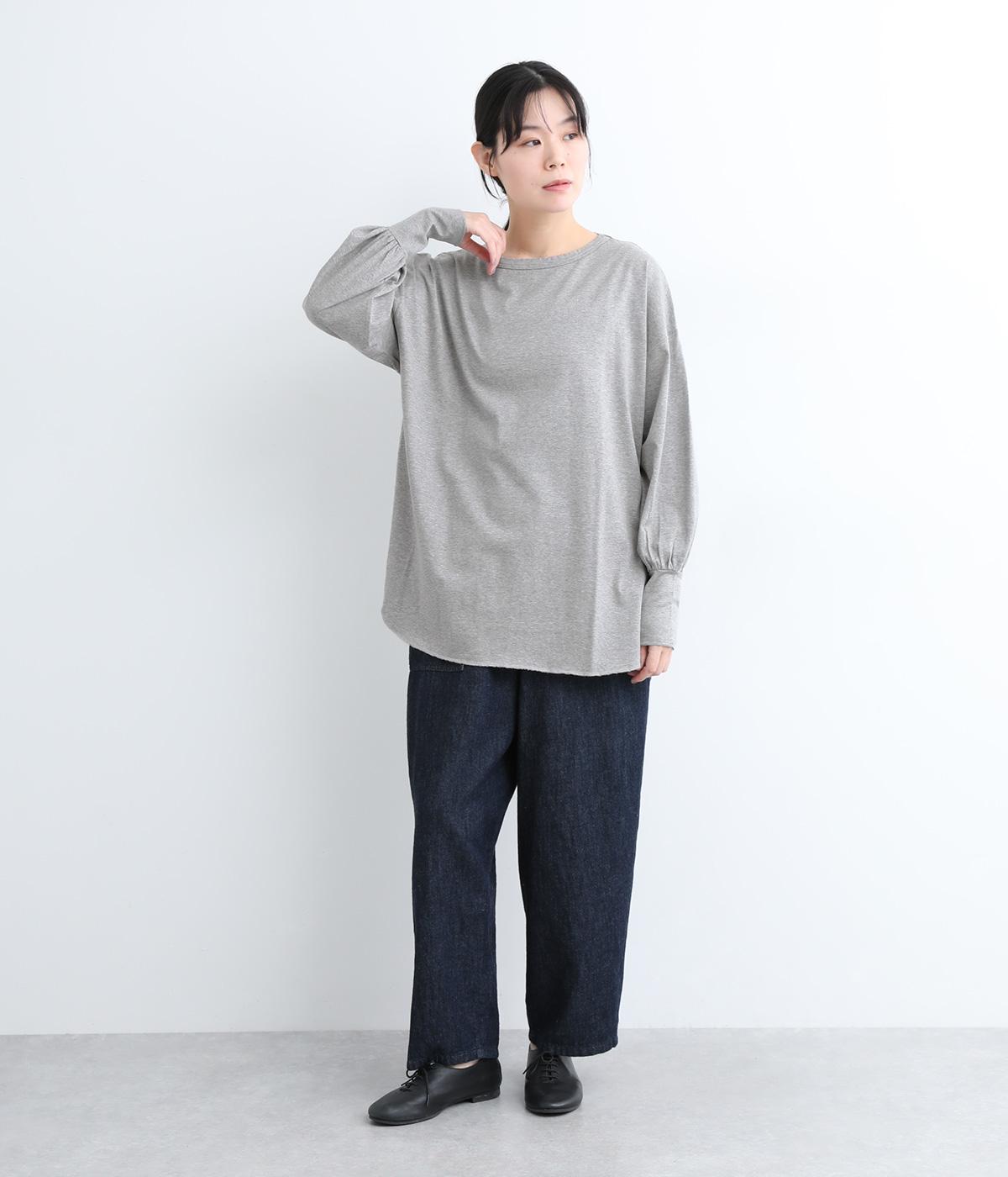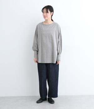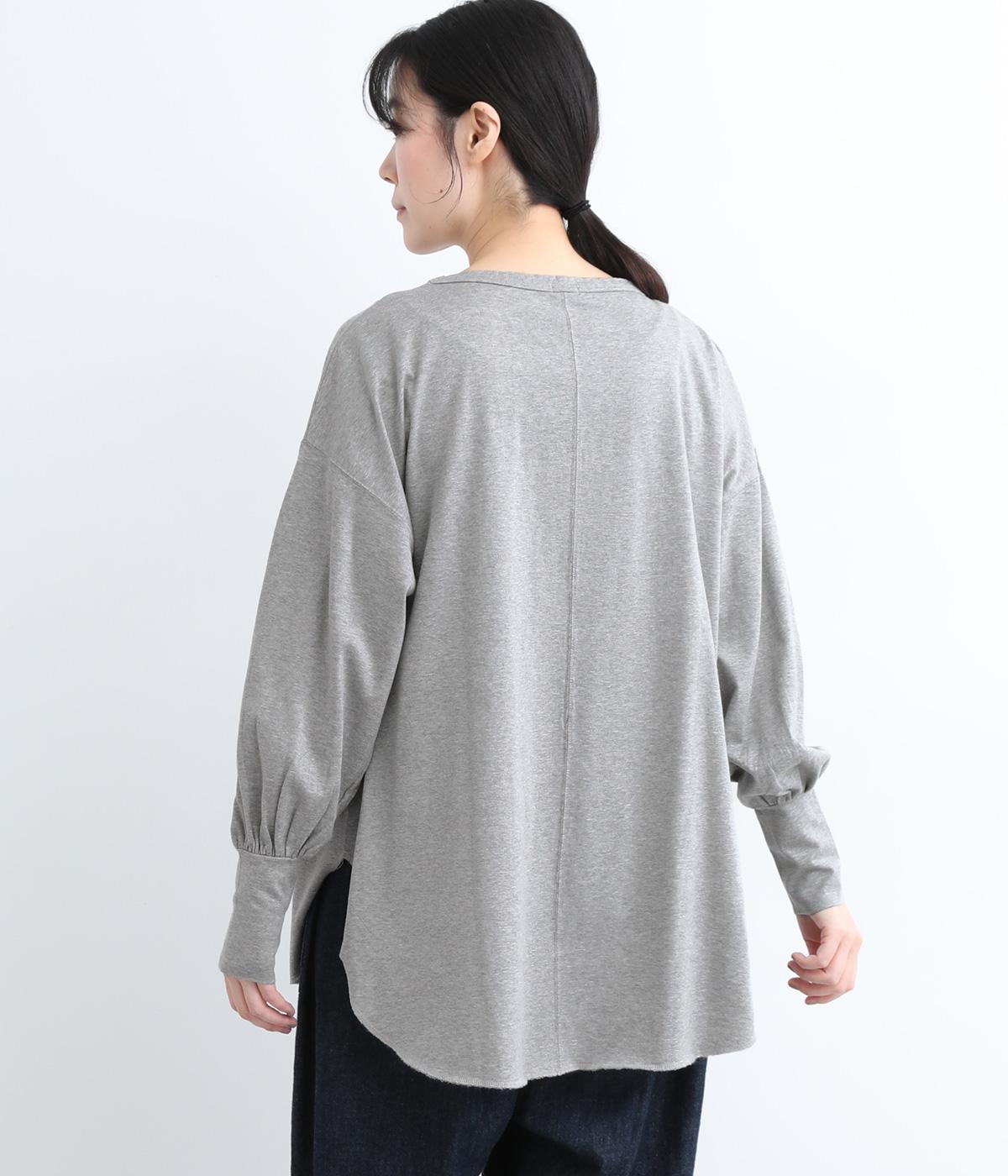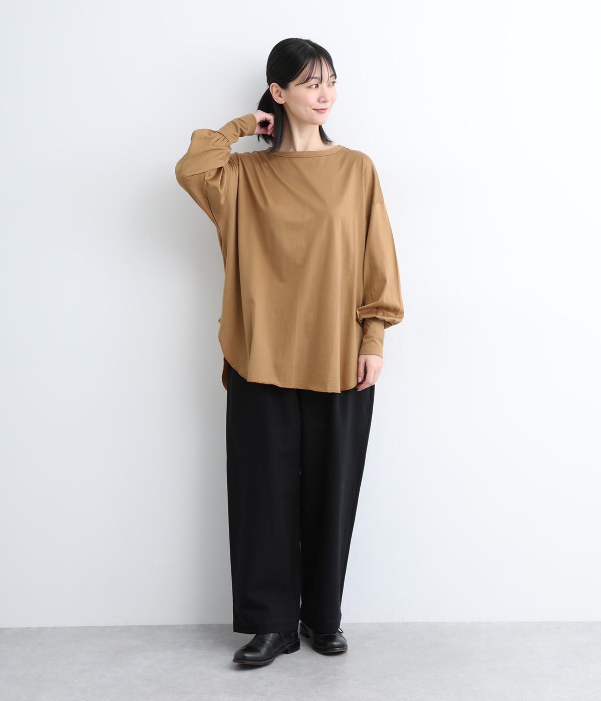 ラウンドカットした前後差のある裾がスタイリングに動きを添えるプルオーバーです。ボリュームのあるバルーン袖に、長めの袖リブが好バランス。シンプルながらも着映えする一枚です。