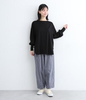 さらりとしたなめらかな肌ざわりが特徴のコットン天竺素材。適度にやわらかな伸縮性があり、ストレスフリーな着心地も魅力的です。