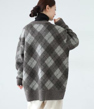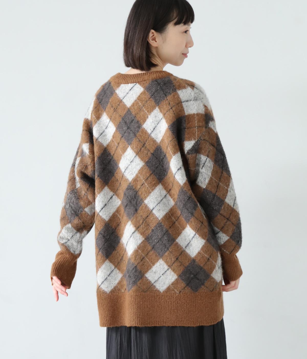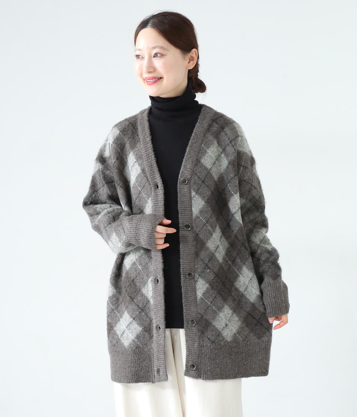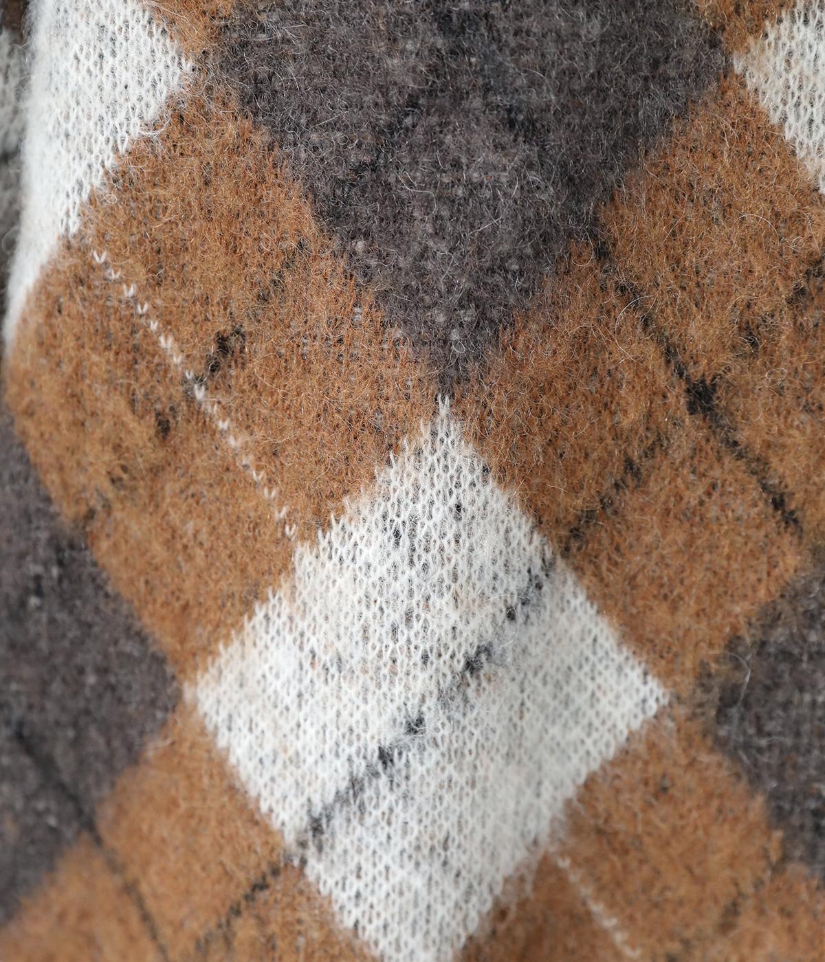 チクチク感の少ないふんわりとした心地よい起毛感が魅力のモヘア混ニット。クラシカルなアーガイル模様がコーディネートを華やかに彩ります。