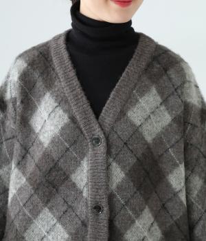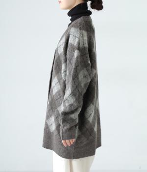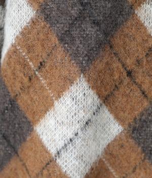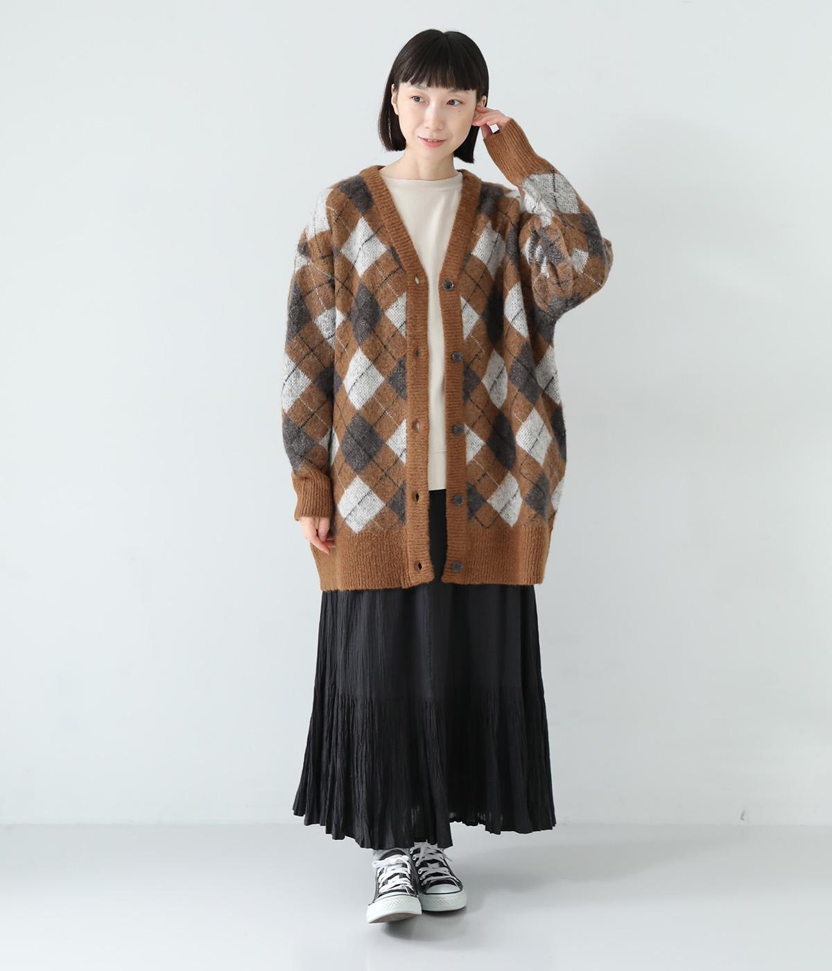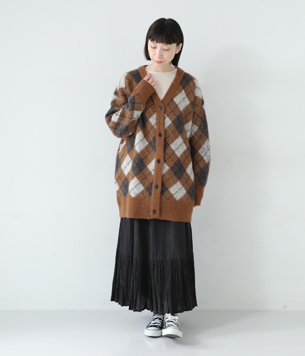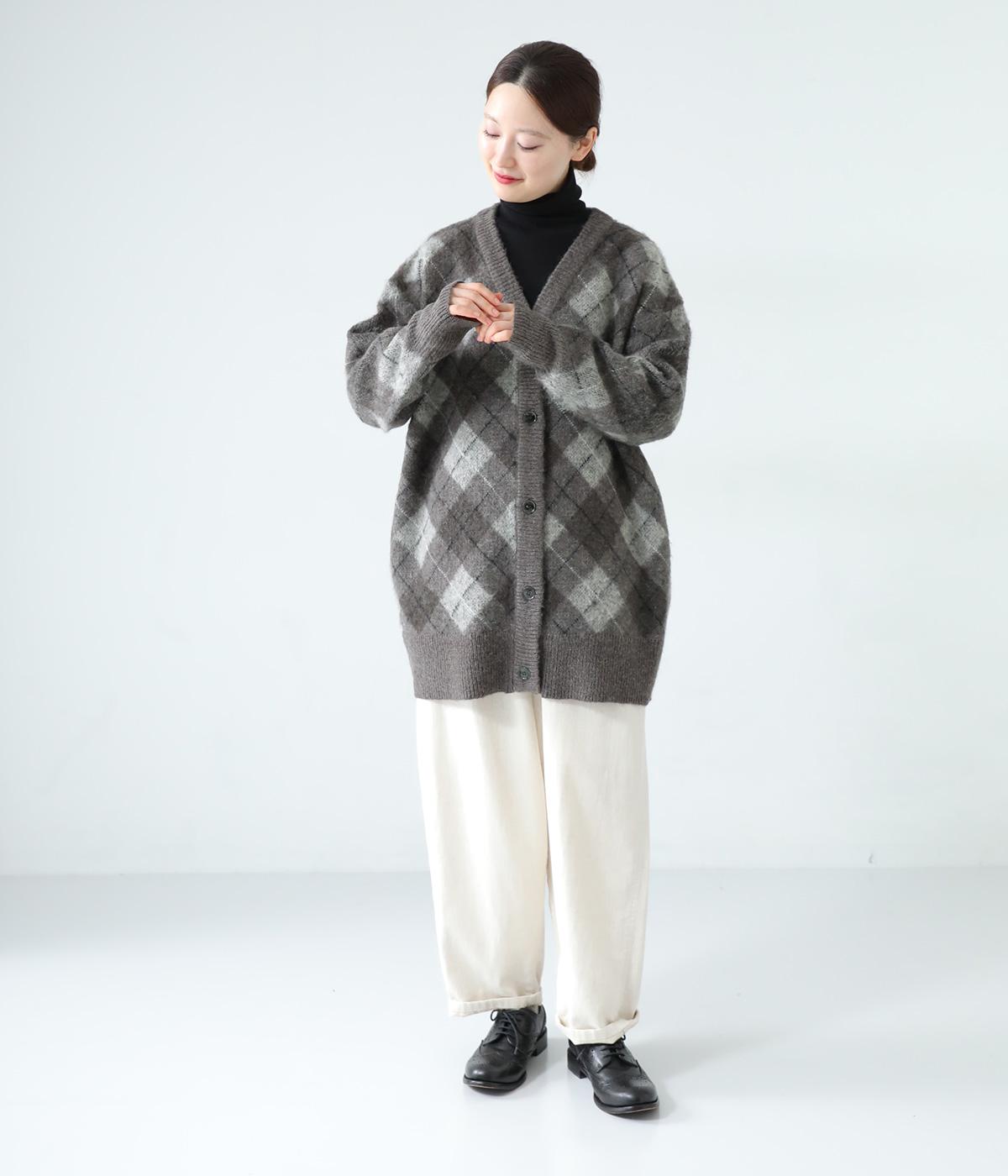 チクチク感の少ないふんわりとした心地よい起毛感が魅力のモヘア混ニット。クラシカルなアーガイル模様がコーディネートを華やかに彩ります。