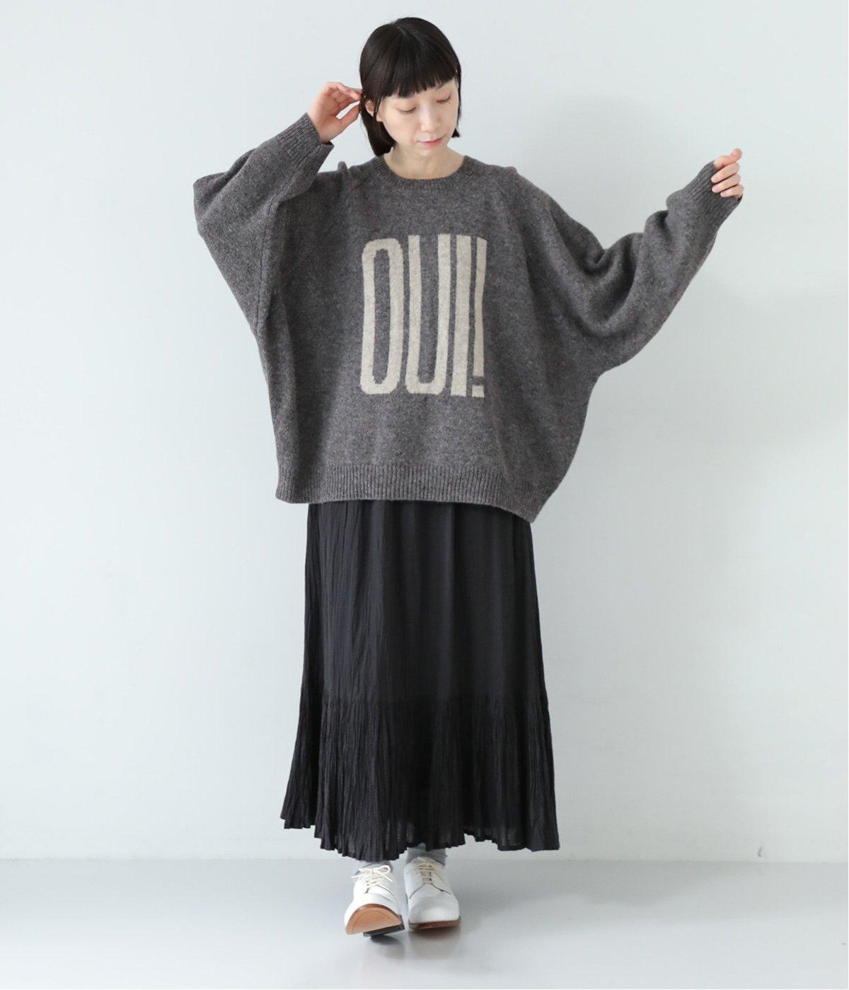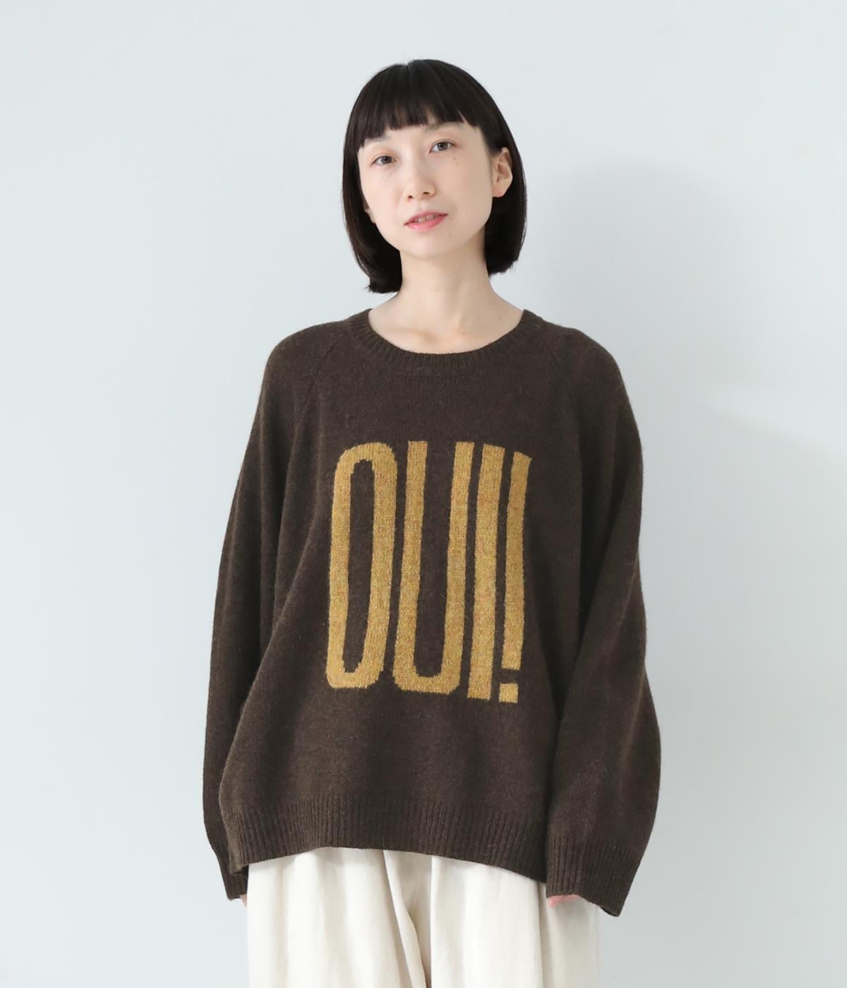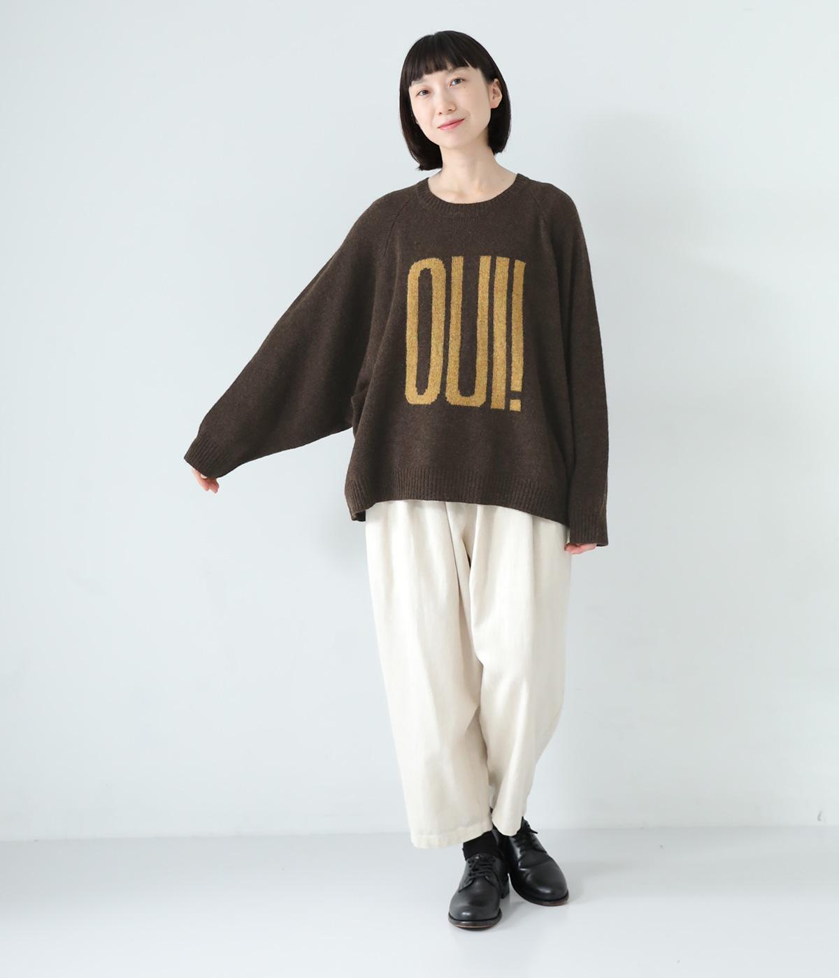 YESを意味するフランス語を大胆にあしらったニットプルオーバー。アームホールを広く取ったラグランスリーブとゆとりのある身幅で、こなれ感たっぷりな着こなしが叶います。ほどよく開いたネックラインがすっきりとした印象をプラス。ベースカラーとロゴのおしゃれな配色にも注目です。