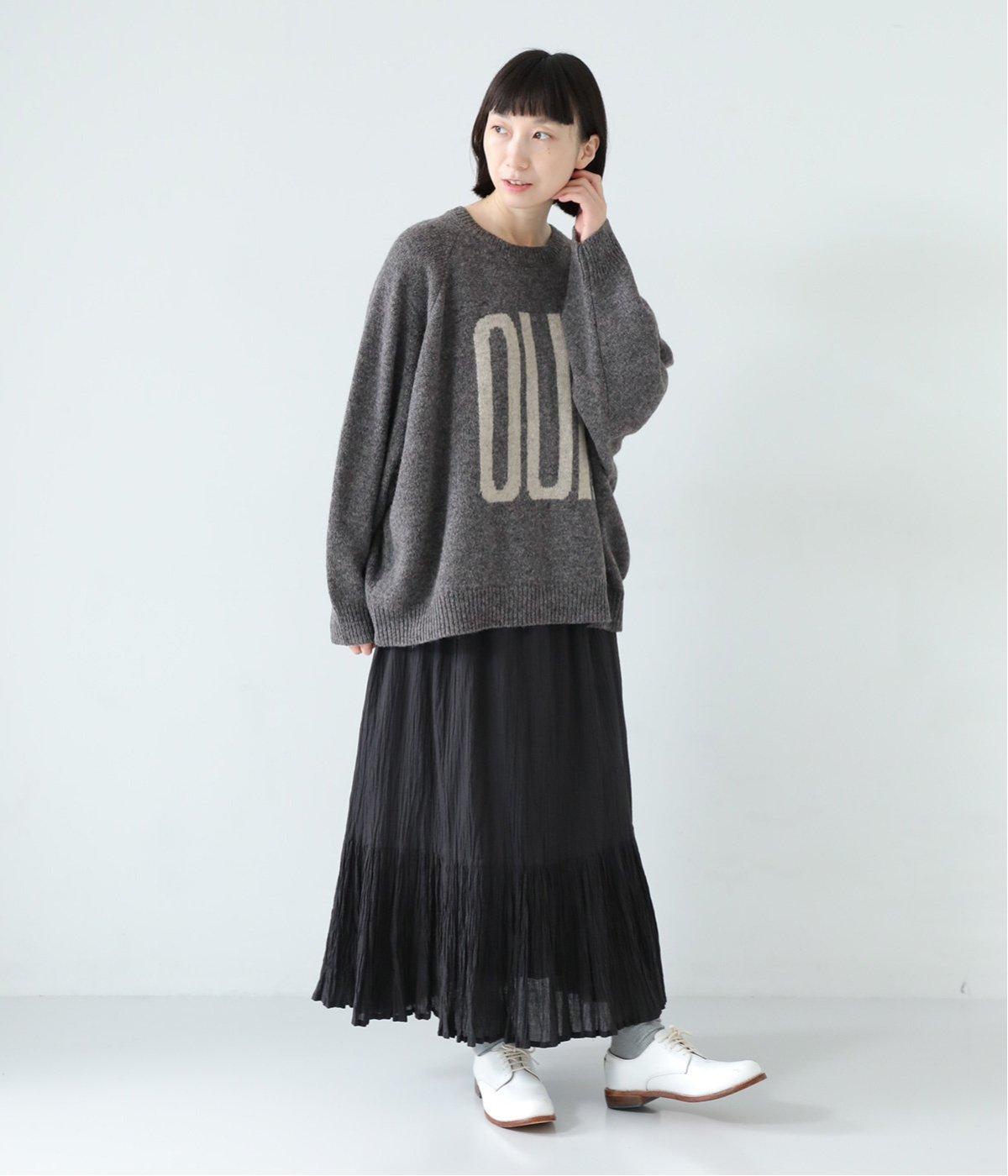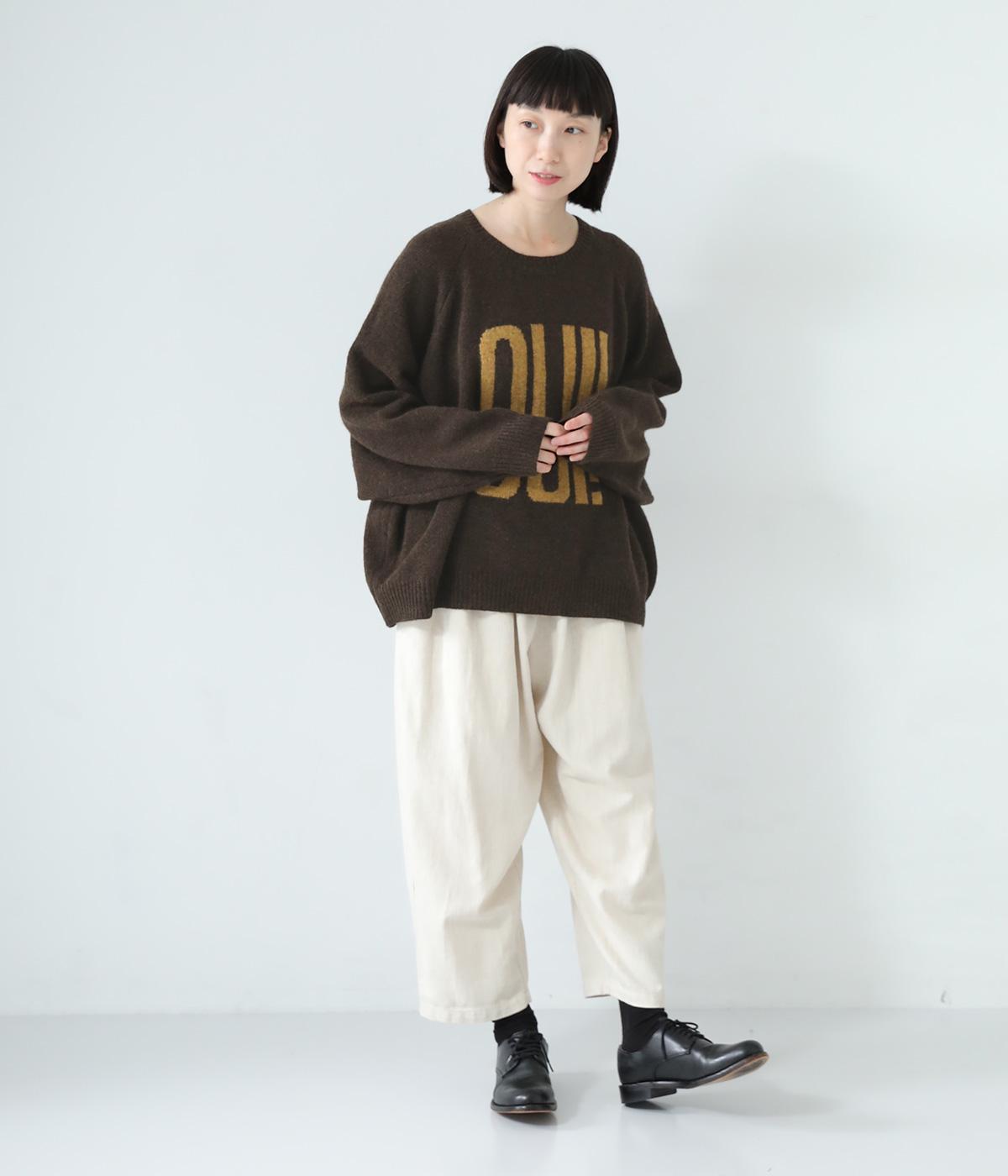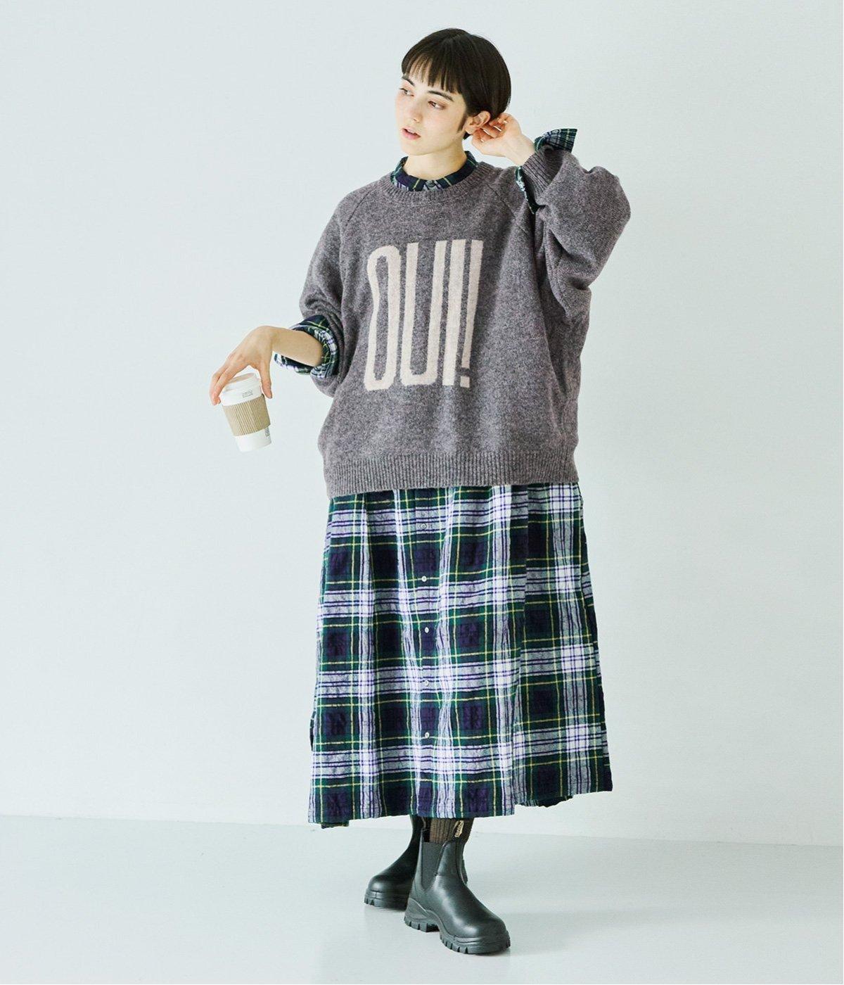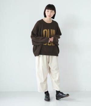 YESを意味するフランス語を大胆にあしらったニットプルオーバー。アームホールを広く取ったラグランスリーブとゆとりのある身幅で、こなれ感たっぷりな着こなしが叶います。ほどよく開いたネックラインがすっきりとした印象をプラス。ベースカラーとロゴのおしゃれな配色にも注目です。