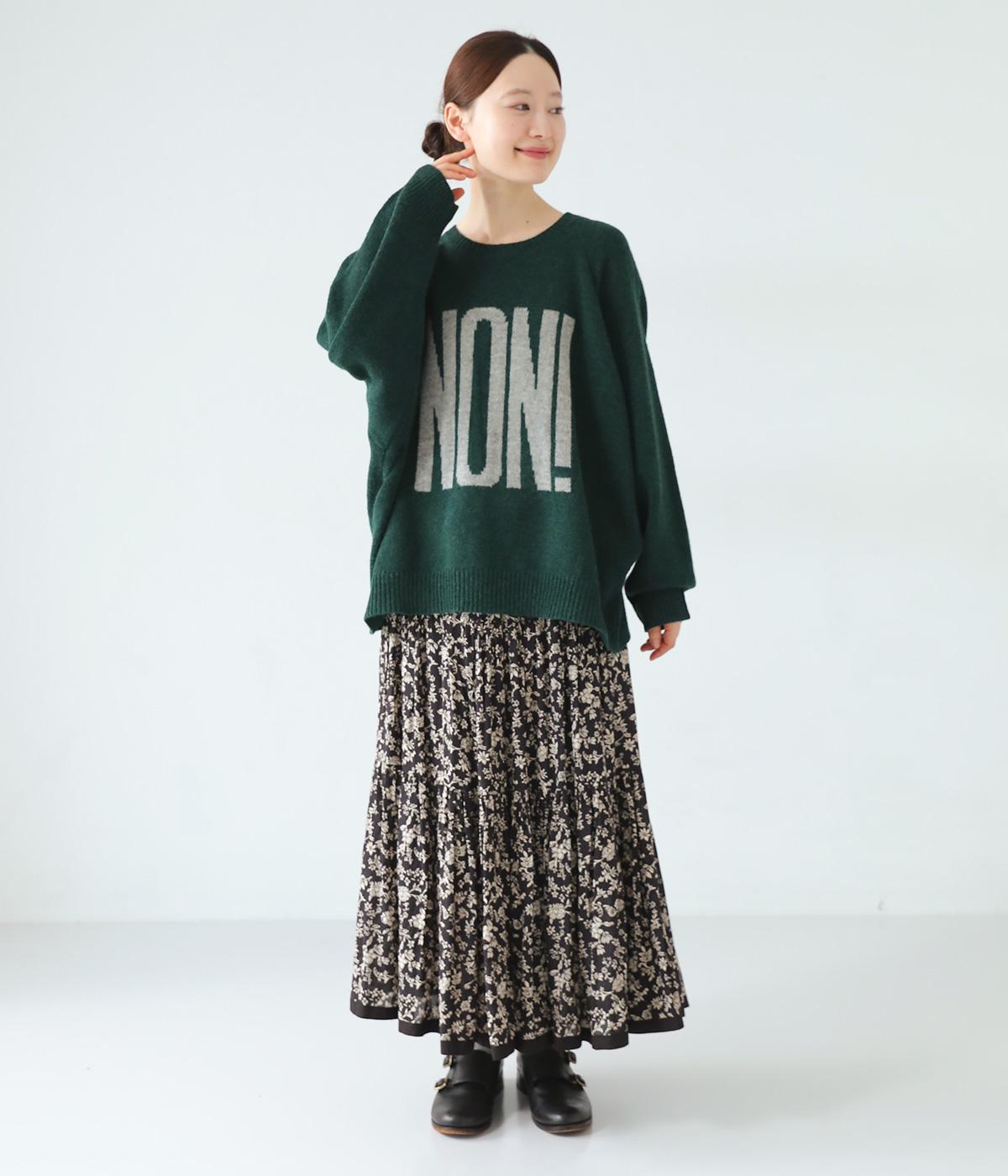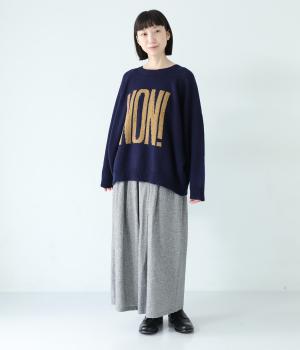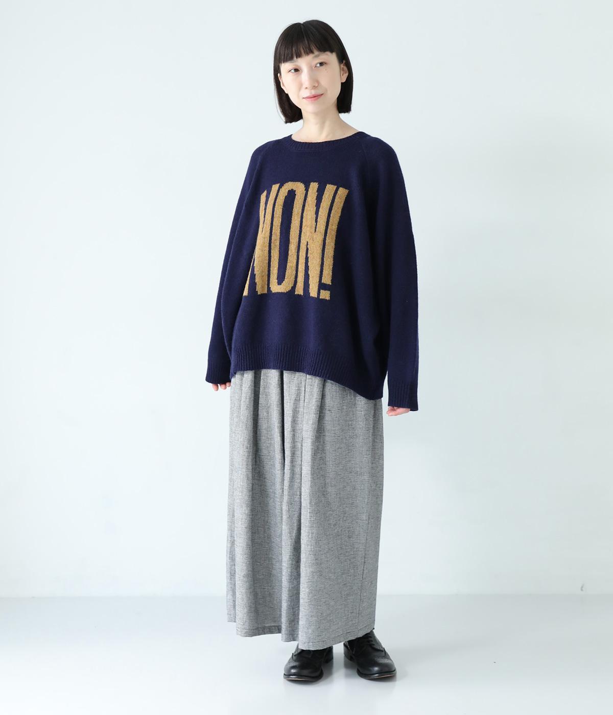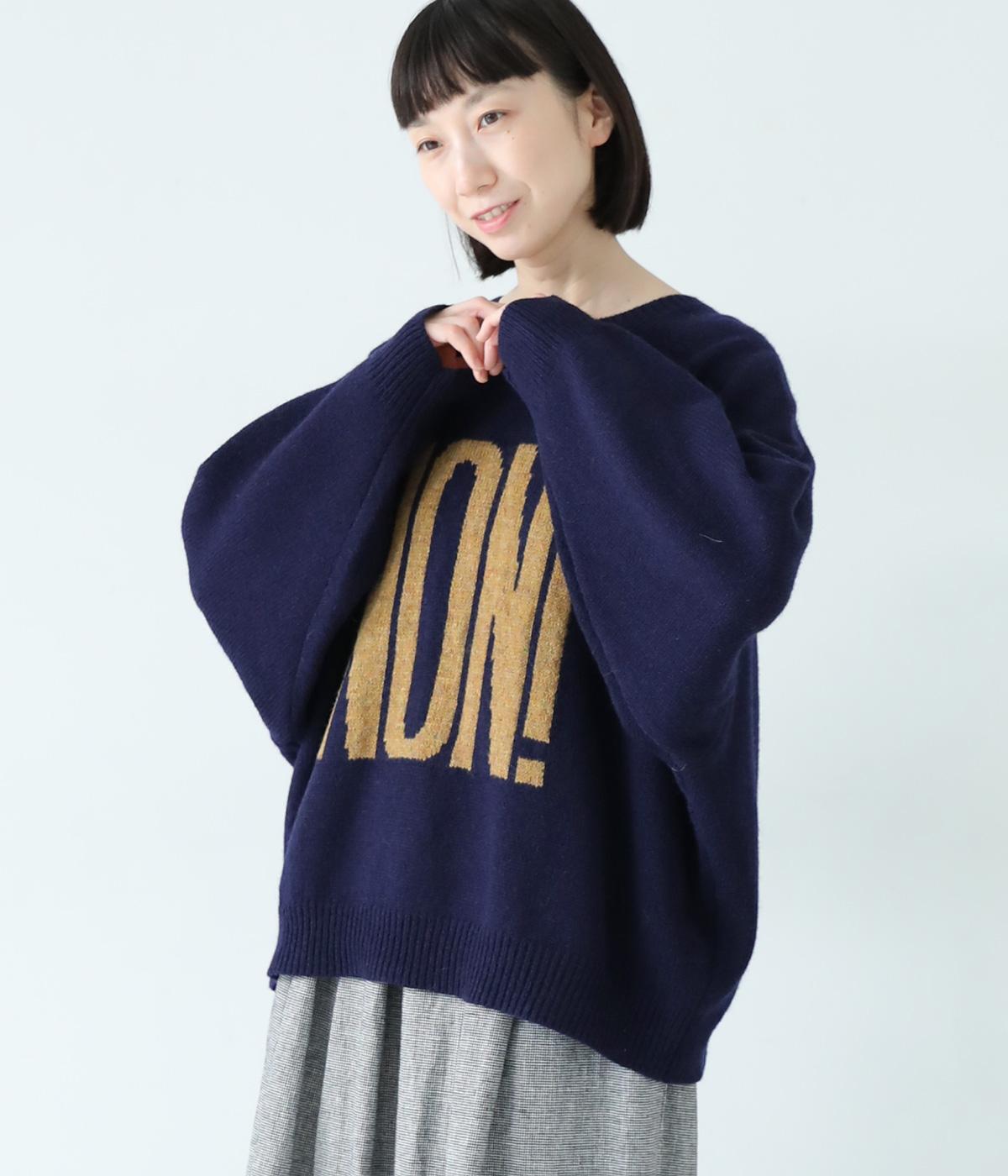 フランス語でNOを意味するロゴとおしゃれな配色がポイントのニットプルオーバー。ゆとりのあるシルエットでこなれ感たっぷりな着こなしが叶います。肩幅を強調しないラグランスリーブもポイント。ほどよく開いたネックラインが顔まわりをすっきりと見せてくれます。