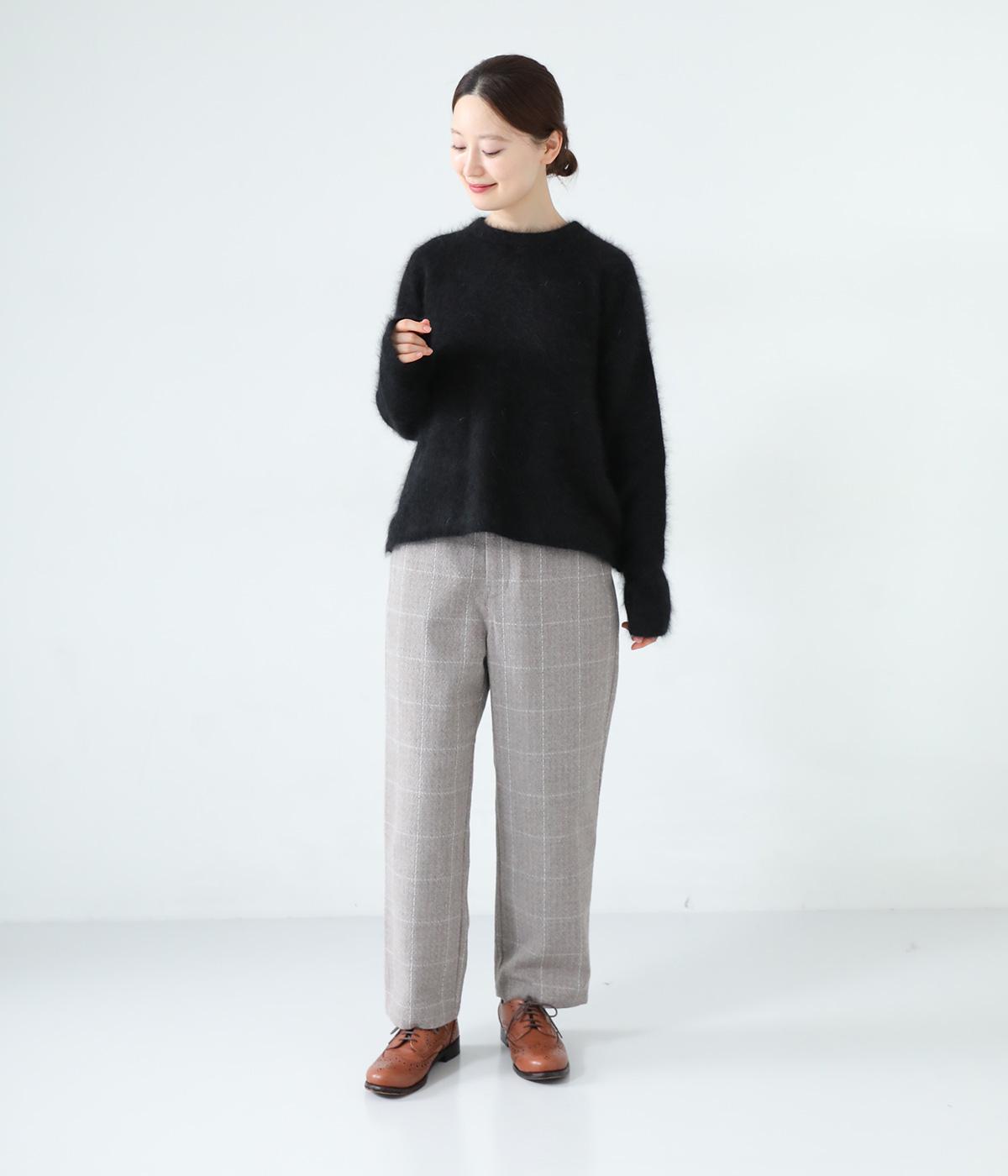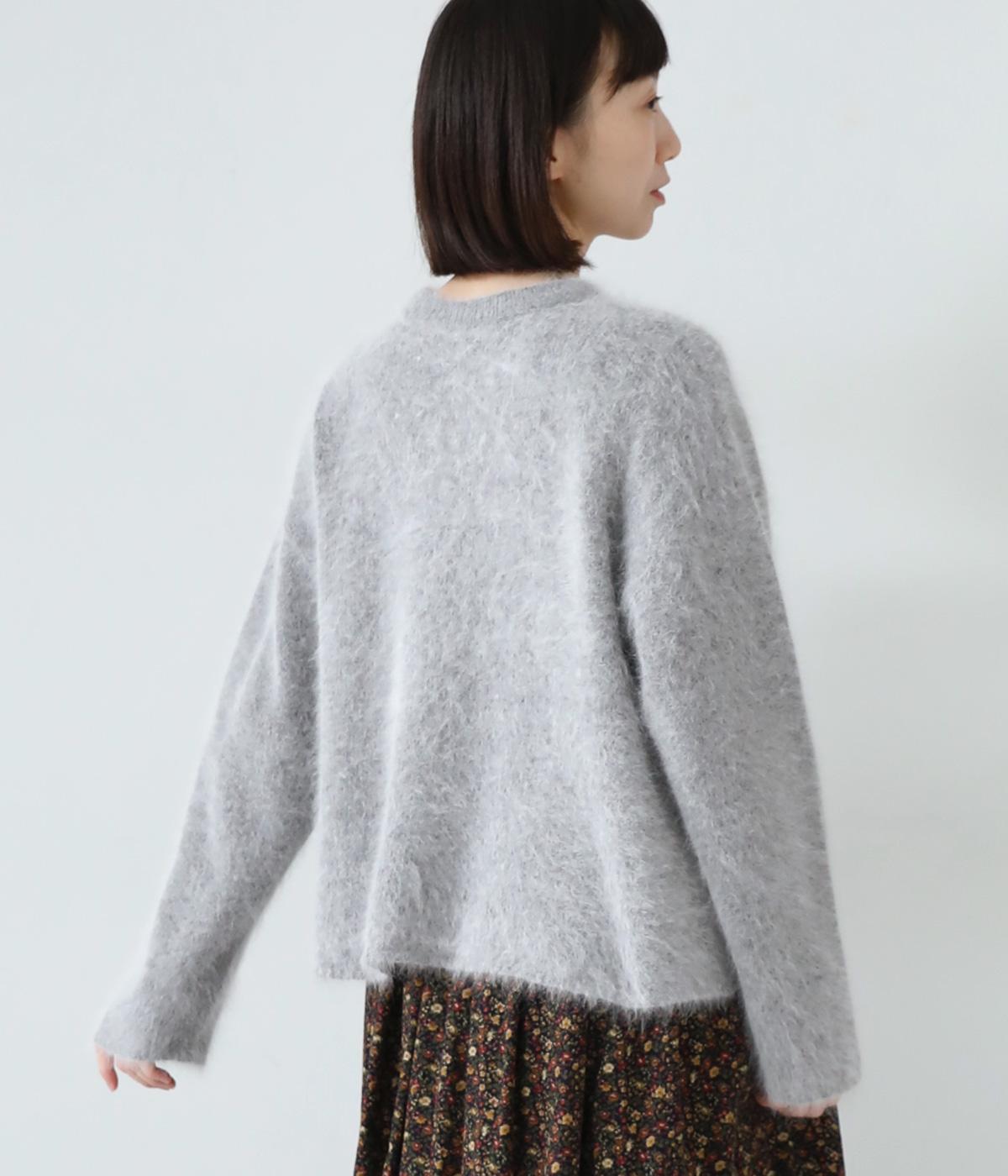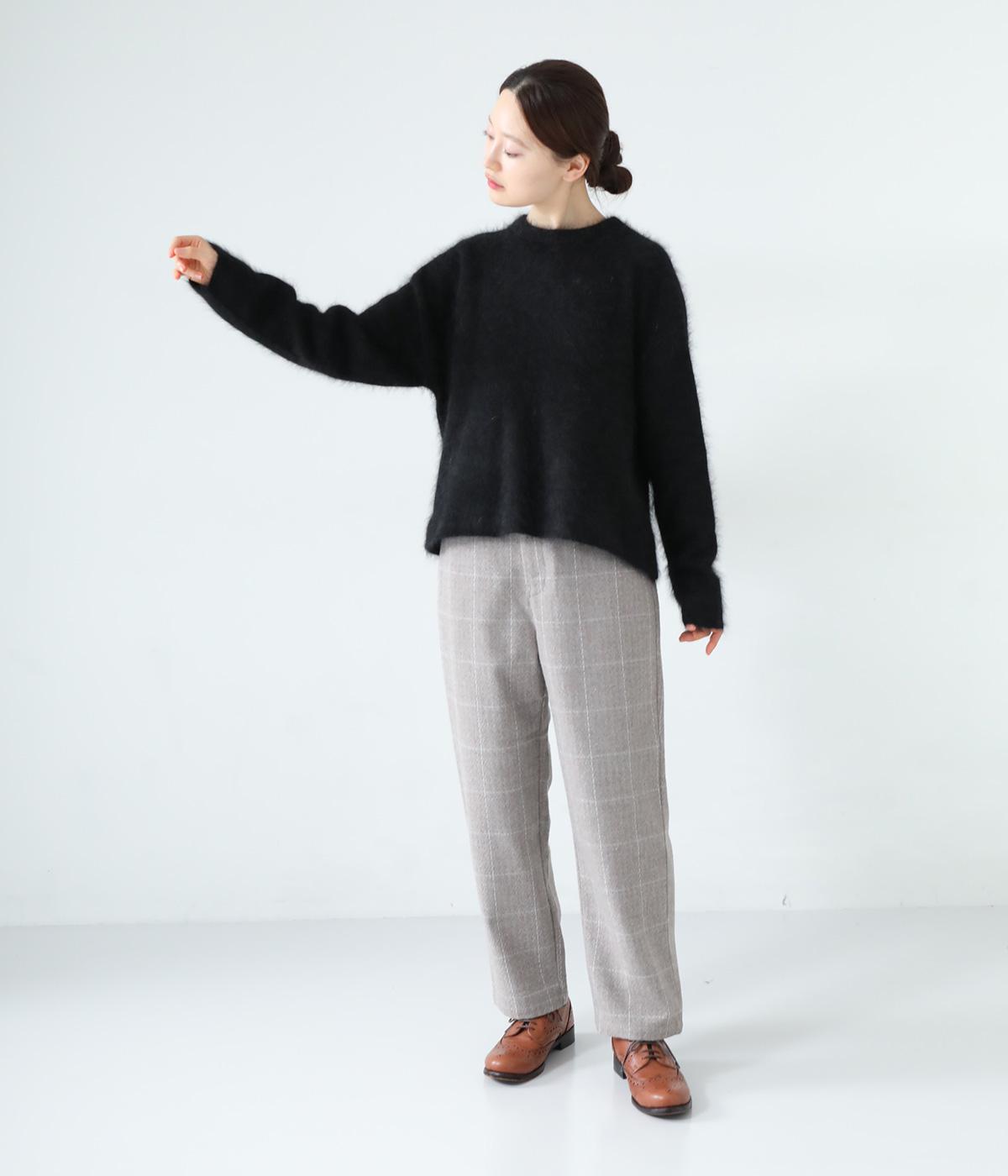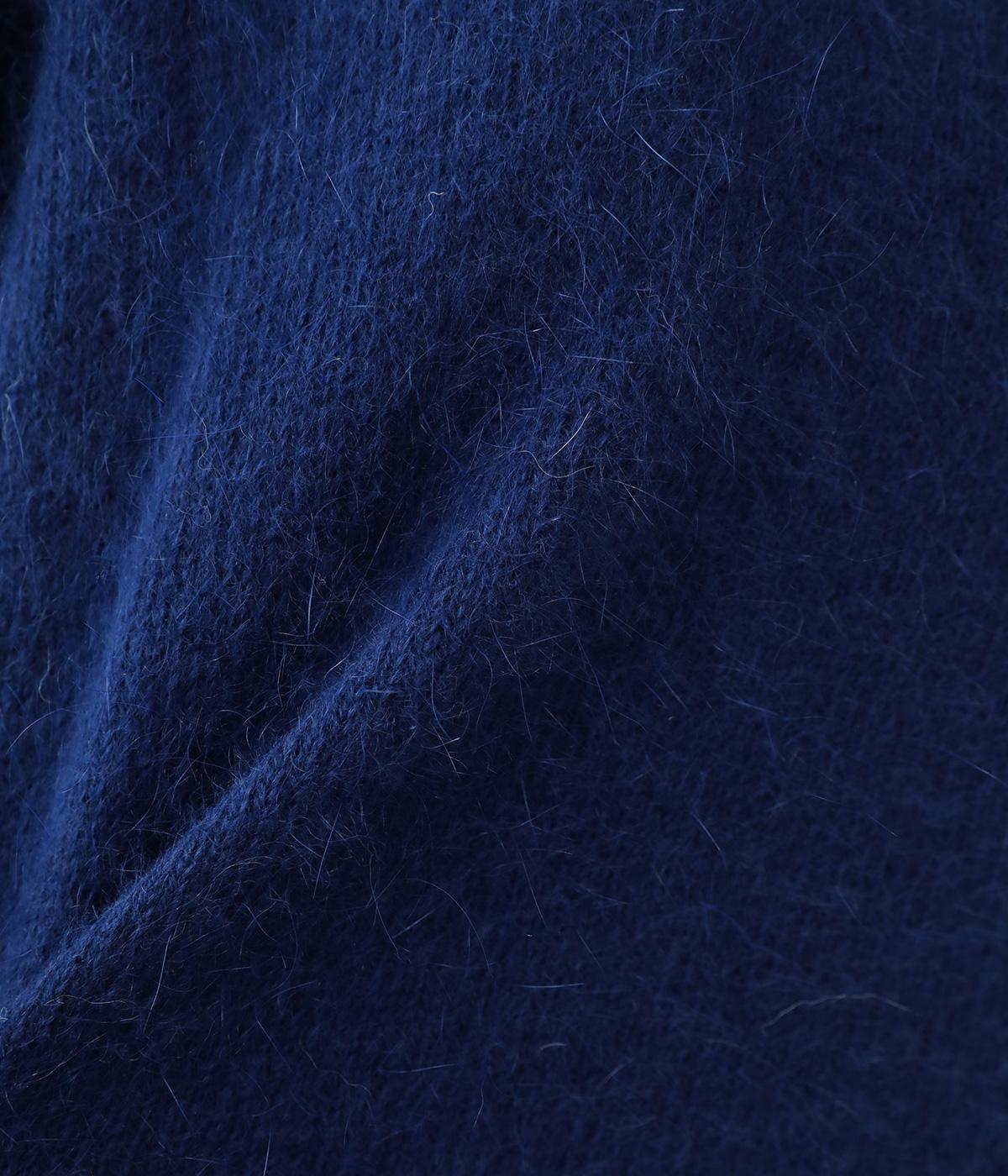 毛足の長いふわふわとしたルックスと、チクチク感の少ない心地よい肌触りをたのしめるアンゴラ混ニット。厚手すぎないほどよい肉感で、真冬はアウターのインにも着やすいのがうれしいポイントです。