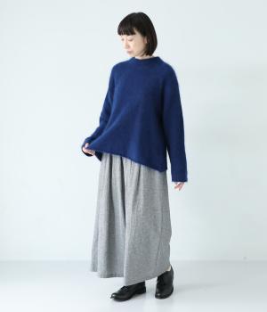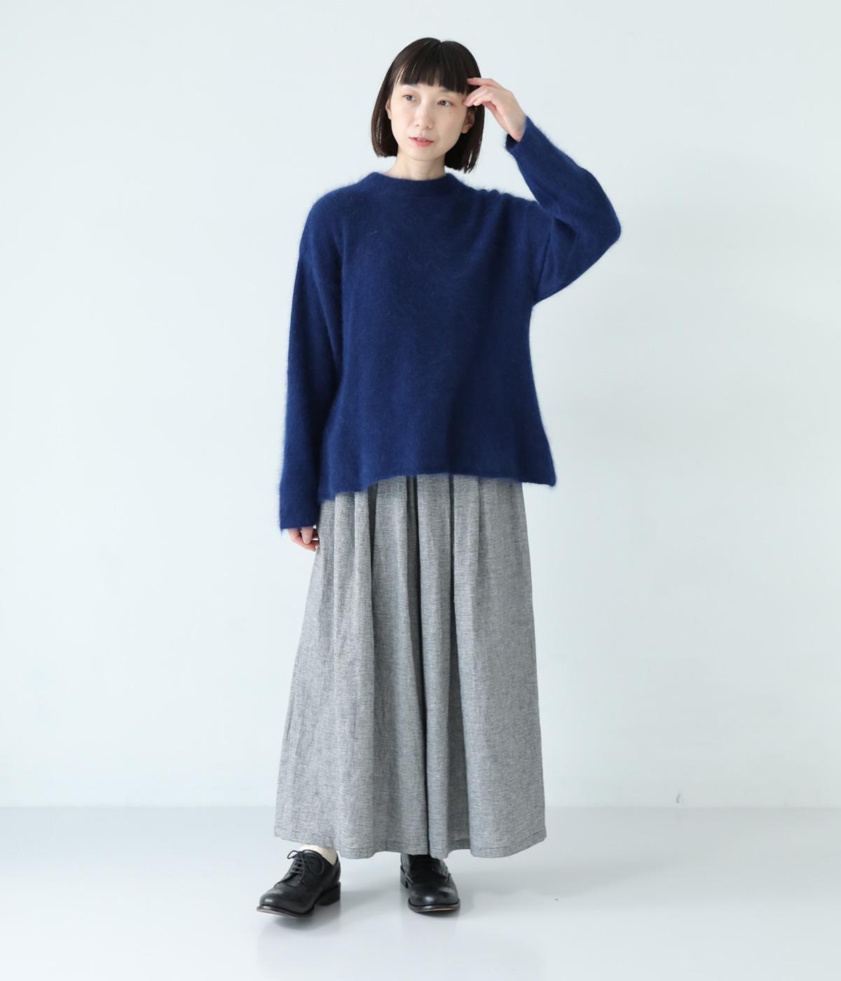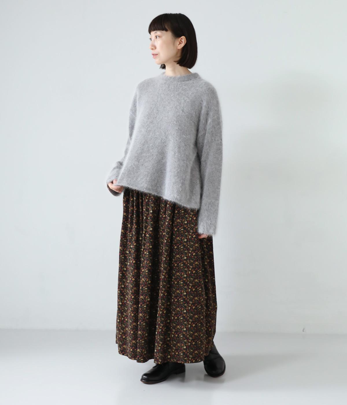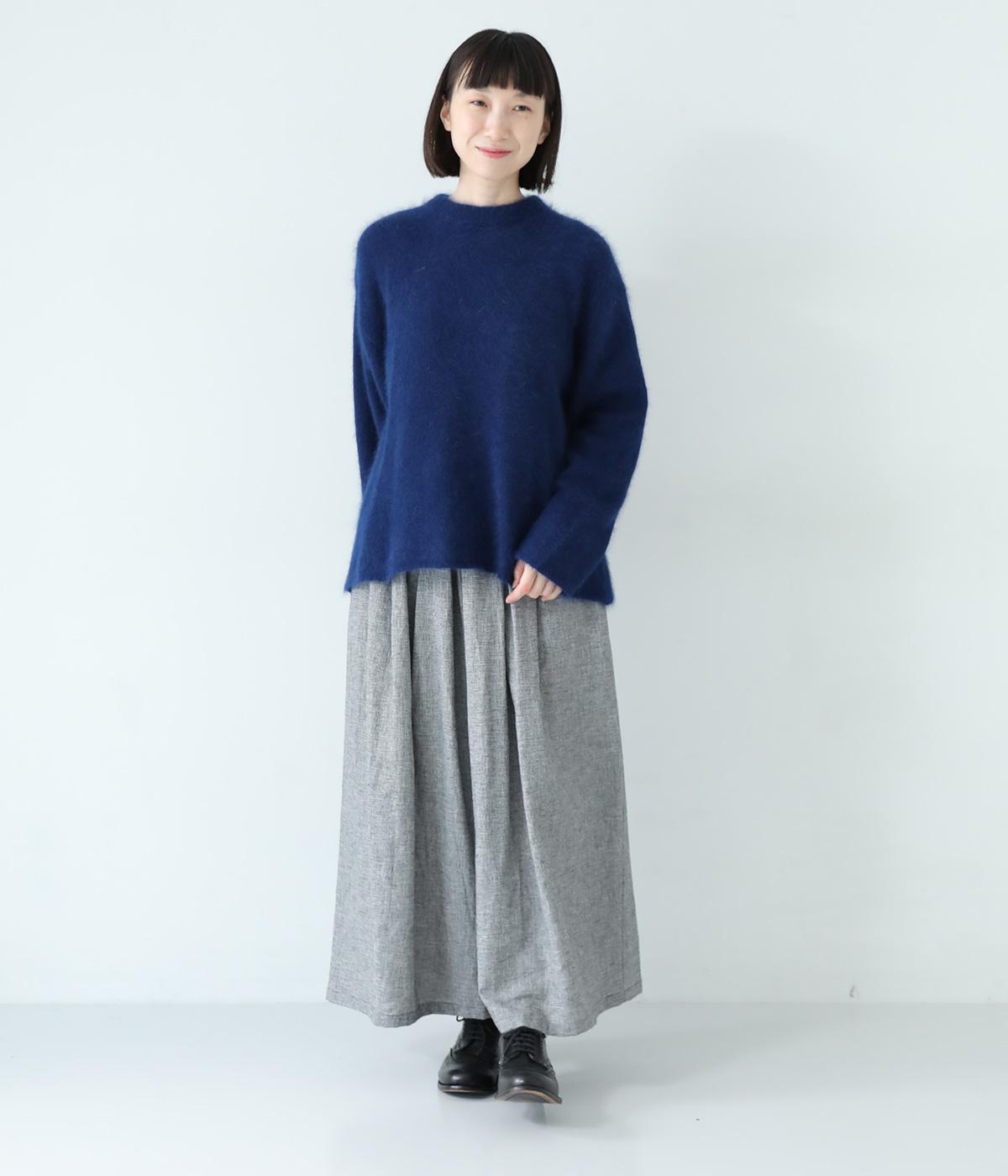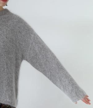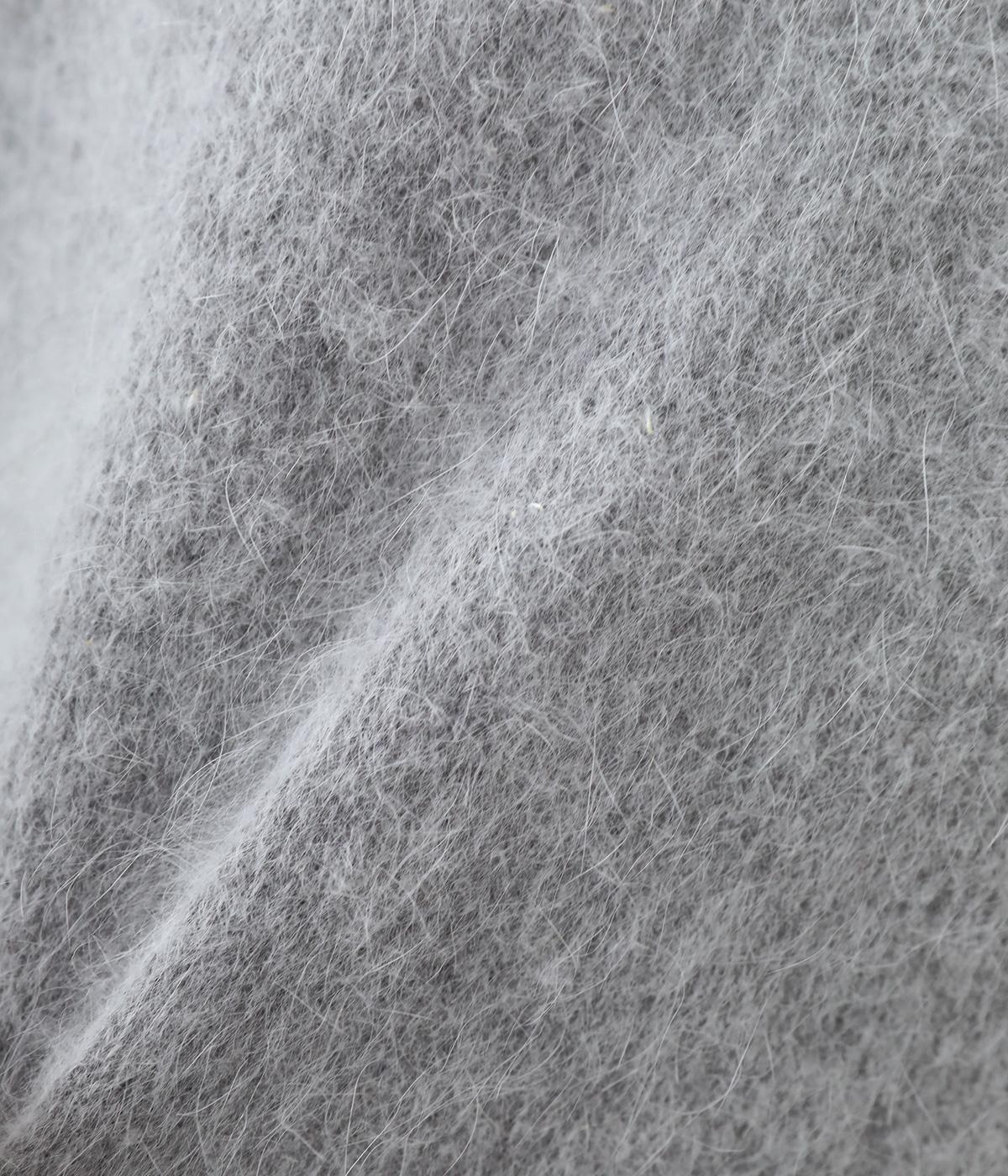 毛足の長いふわふわとしたルックスと、チクチク感の少ない心地よい肌触りをたのしめるアンゴラ混ニット。厚手すぎないほどよい肉感で、真冬はアウターのインにも着やすいのがうれしいポイントです。
