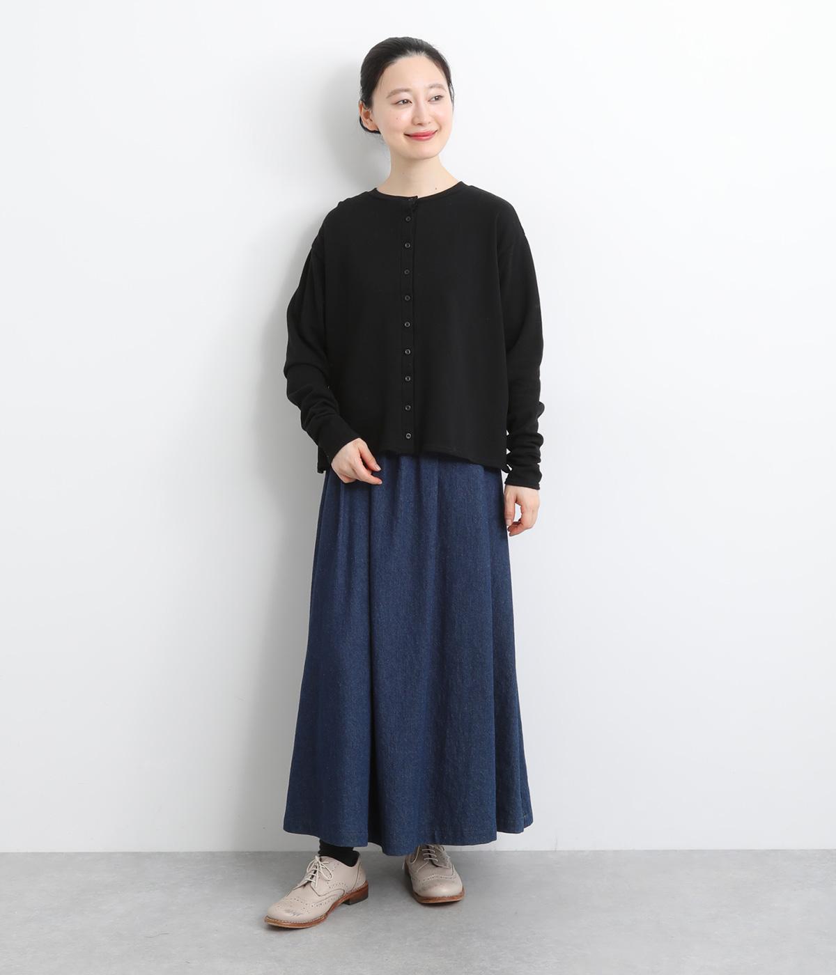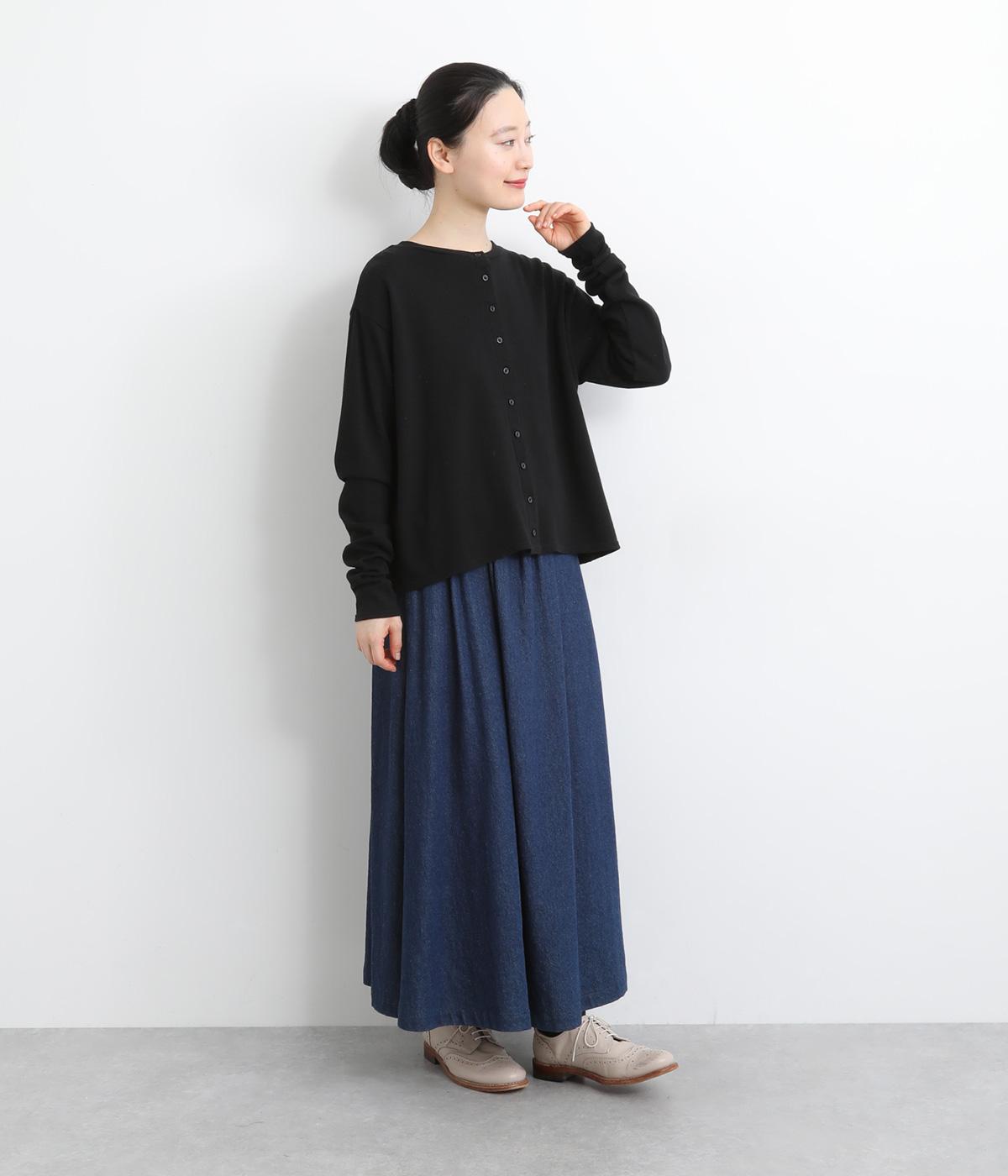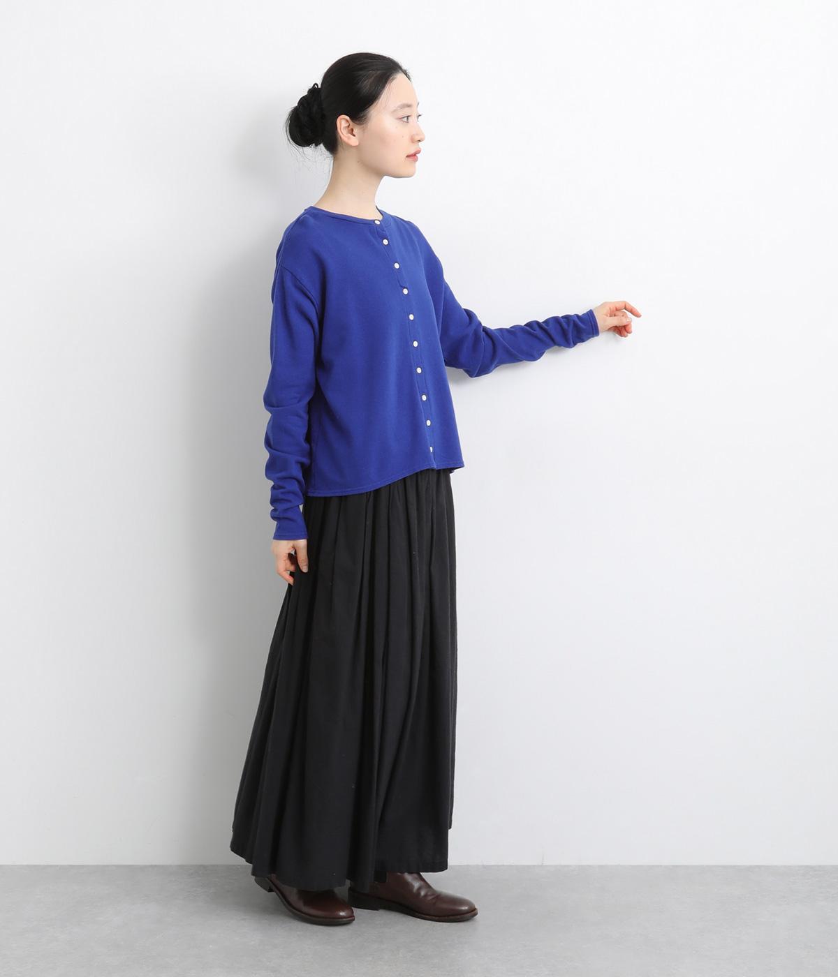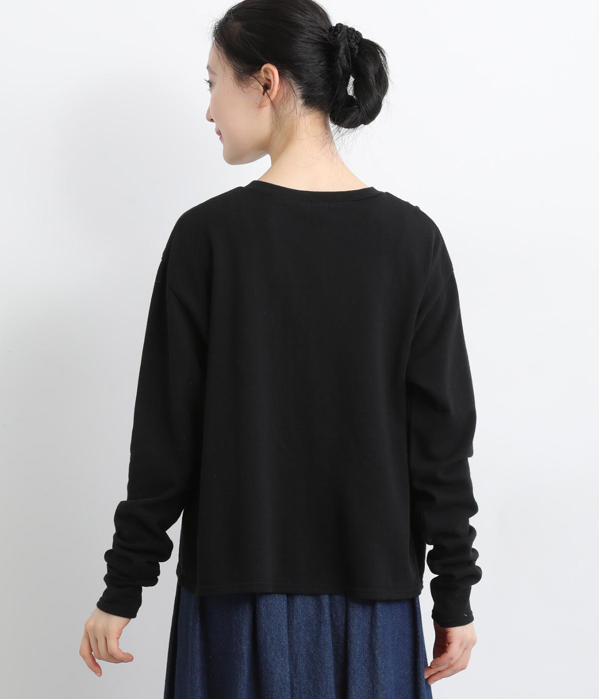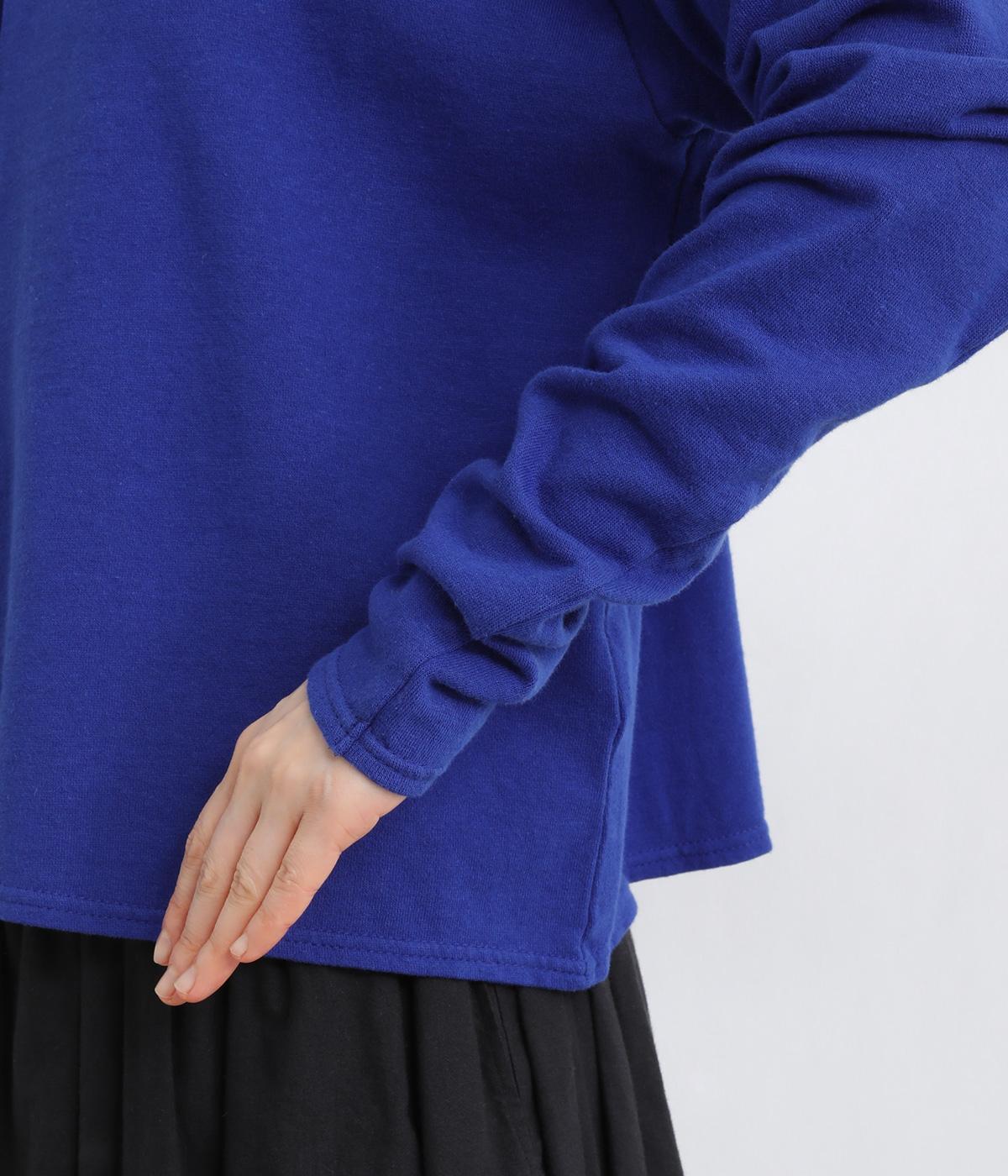 ソフトな手ざわりが心地いい裏毛記事を使用しました。伸縮性があり、やさしく体にフィットします。ドライな質感できれい見えする素材感です。