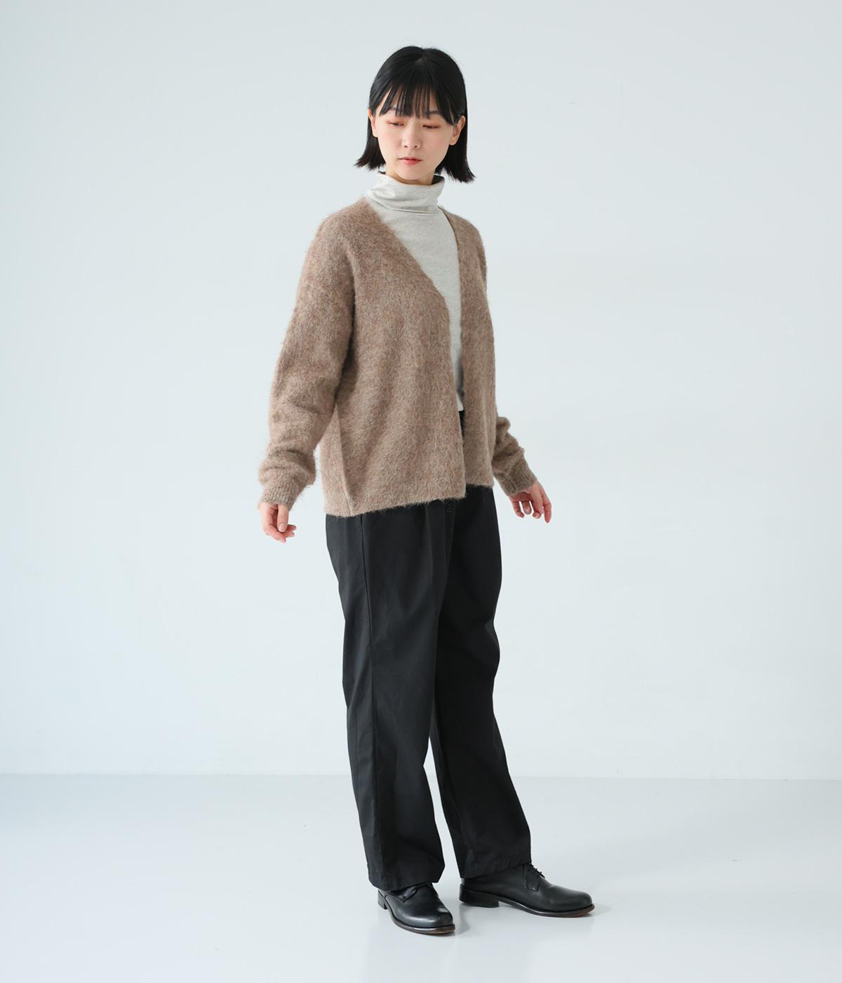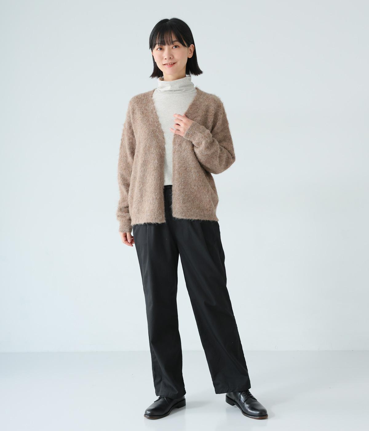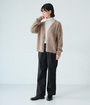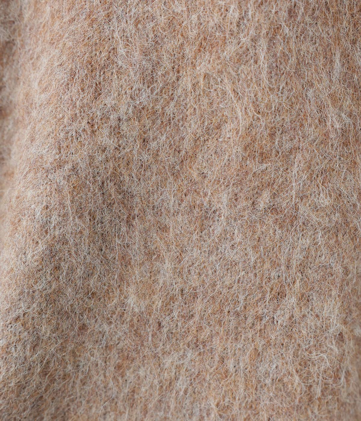 ふっくらとした長い毛足が心地よい肌触りと女性らしいやわらかな見た目を叶えてくれます。ウールを混紡しているので、あたたかさも◎。とても軽くて伸びがよく、ストレスフリーな着用感です。