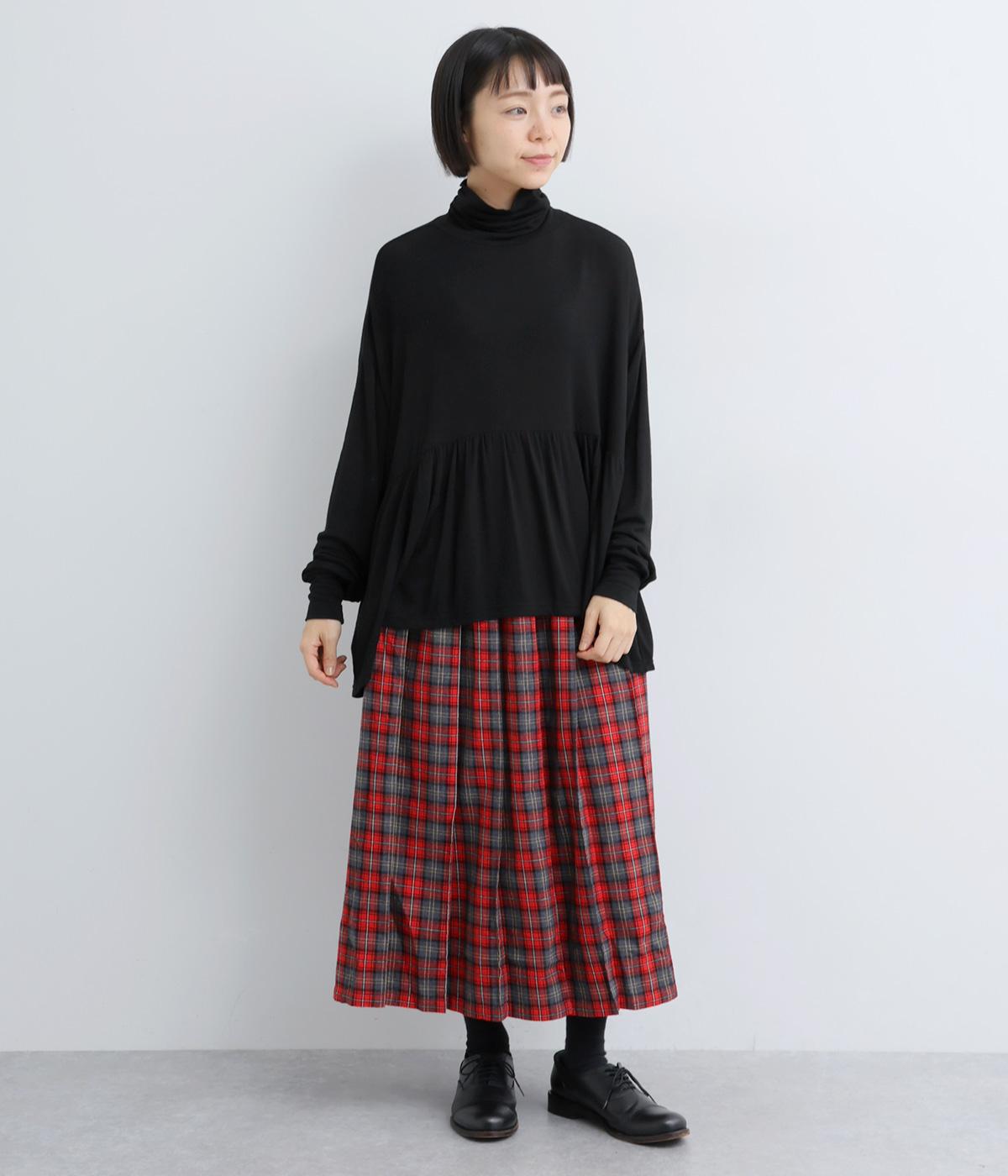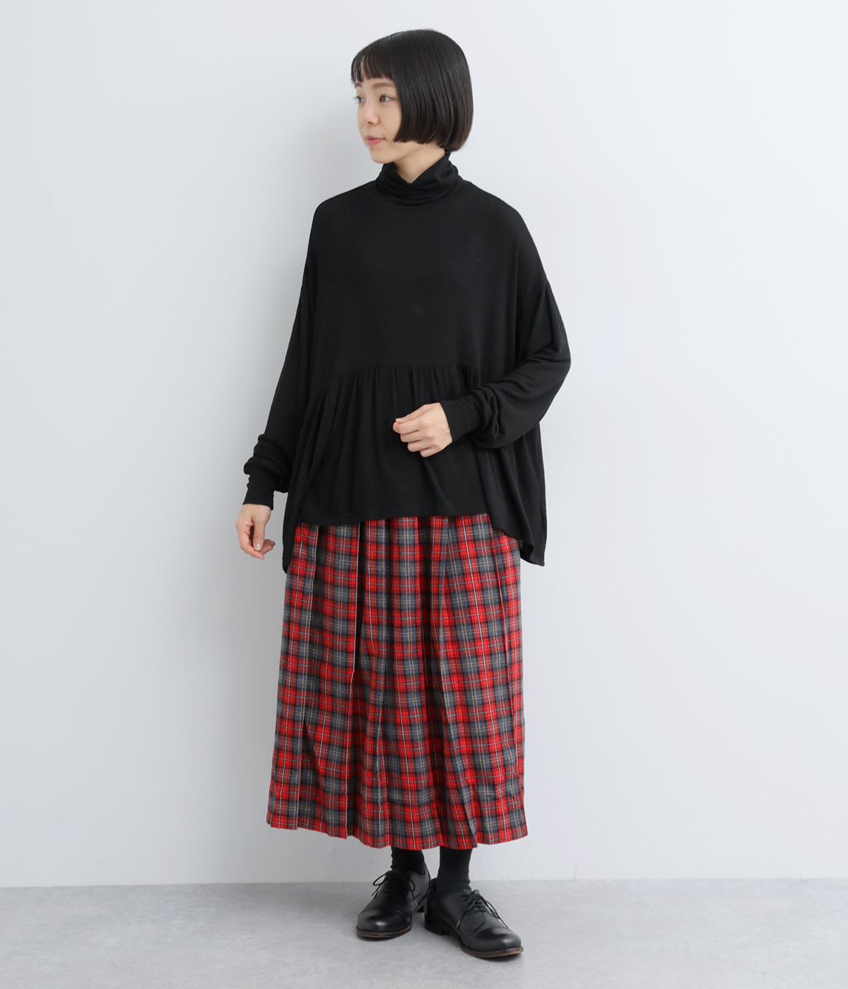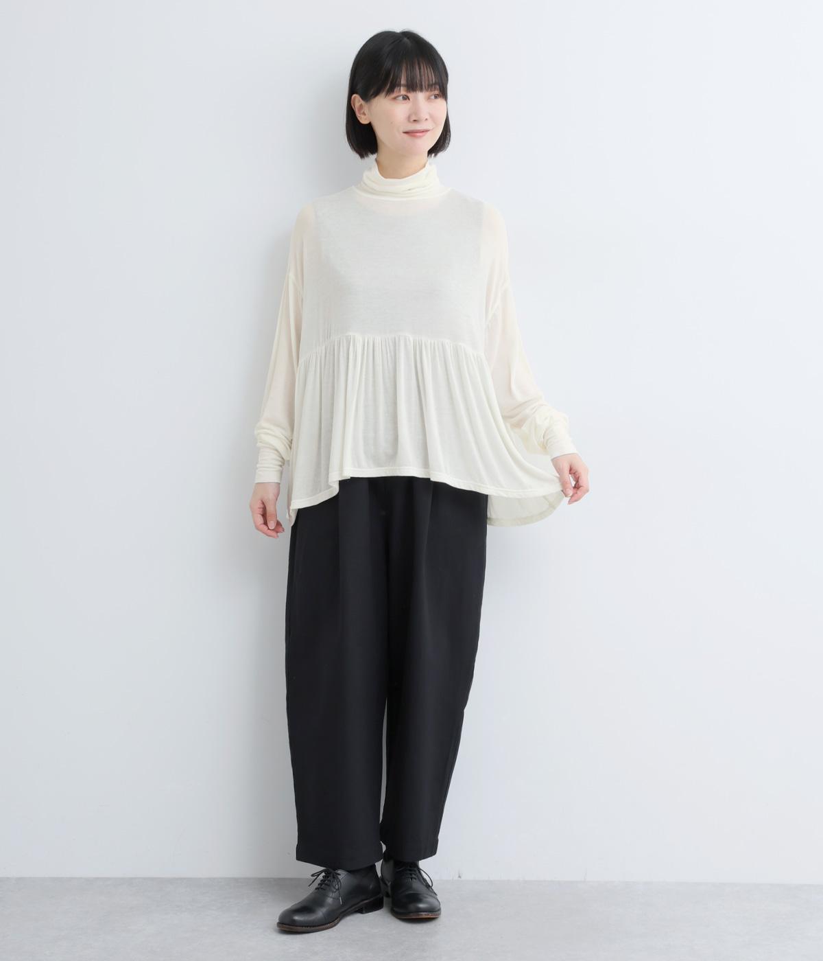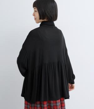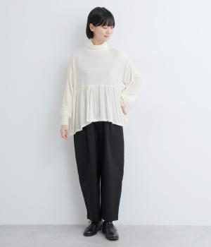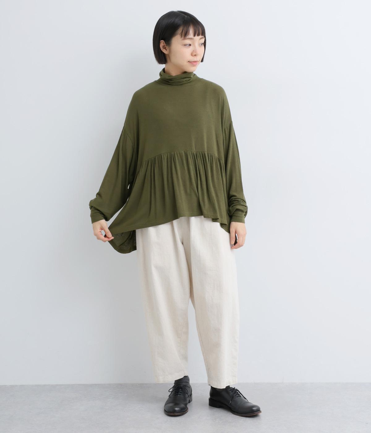 たっぷりとギャザーを入れたフェミニンなタートルネックトップス。ゆったりとした身幅と肌触りのよい生地で快適に着用できます。高めの位置で切り替えを入れることでスタイルアップの効果も。前後差をつけた着丈がお尻をカバーし、着こなしをバランスよく整えてくれます。