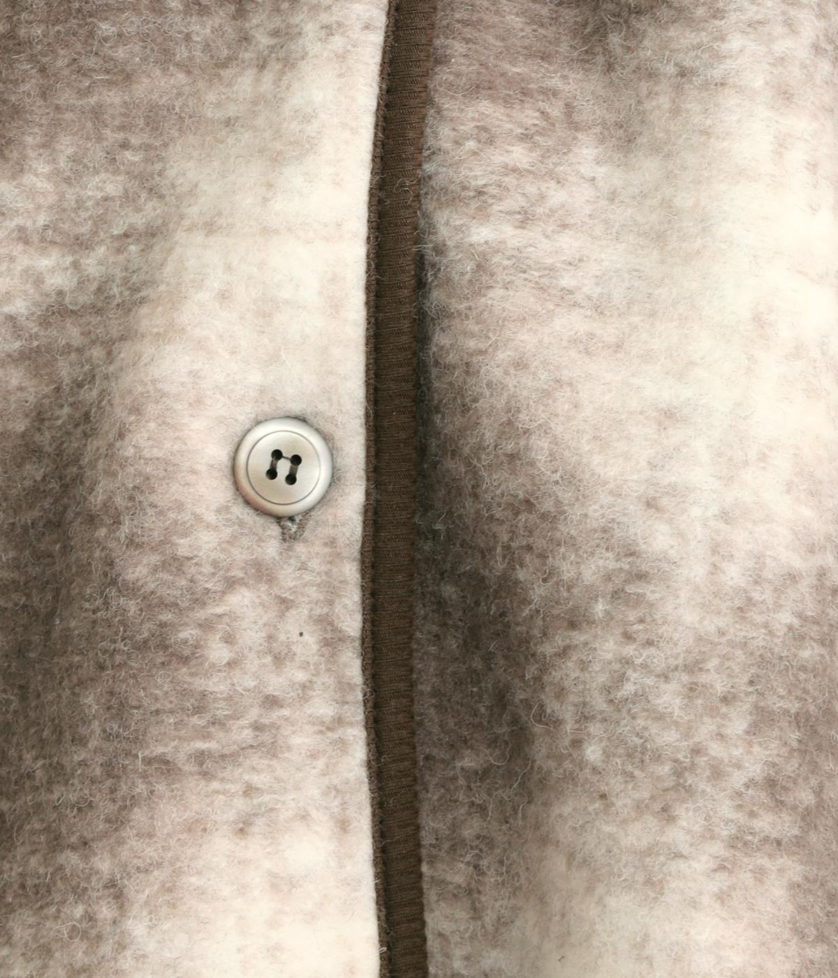 上品な起毛感でやさしい肌ざわりの生地を使用しました。あたたかさと軽やかさを両立したデイリーに取り入れやすい素材感です。パイピングはコットンでメリハリをつけました。
