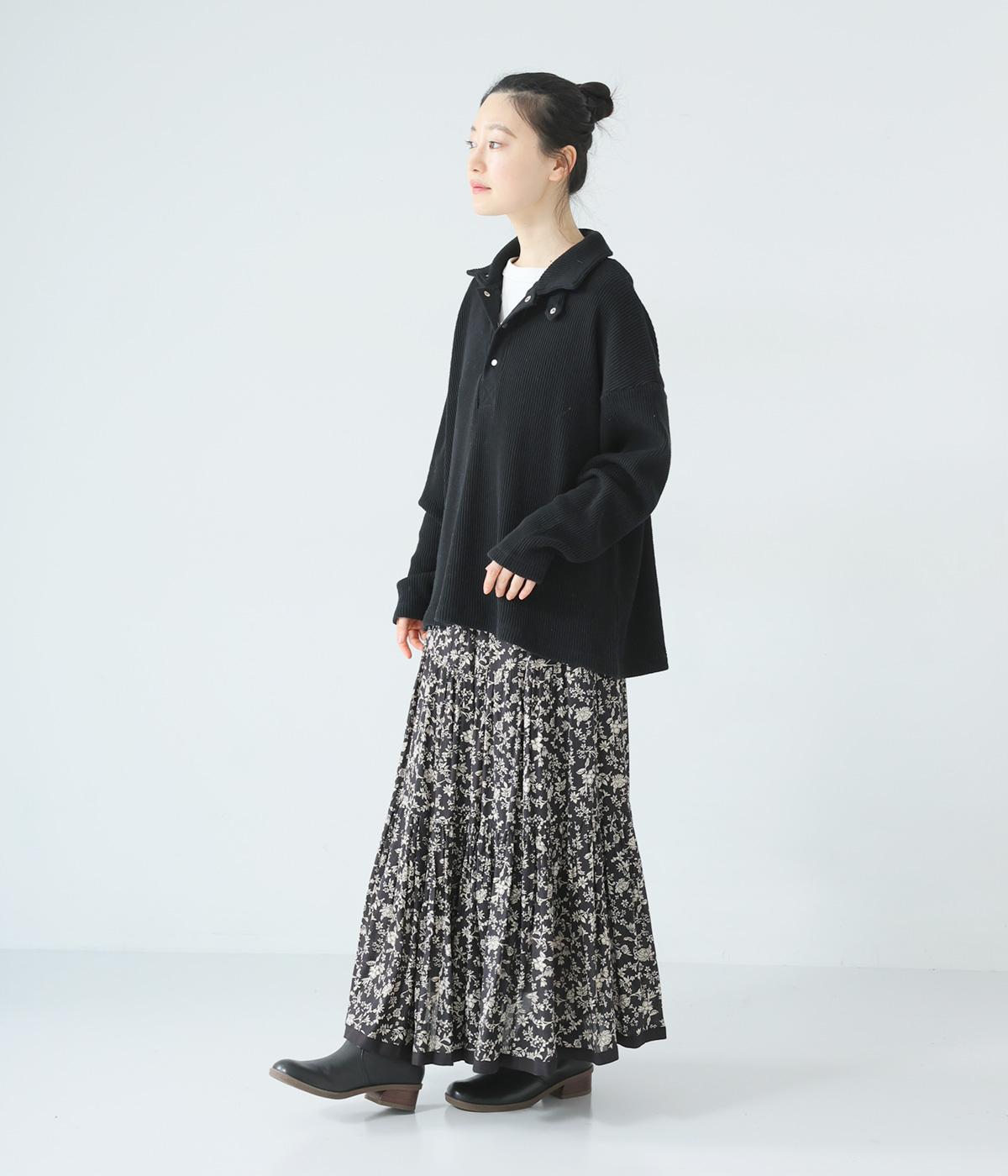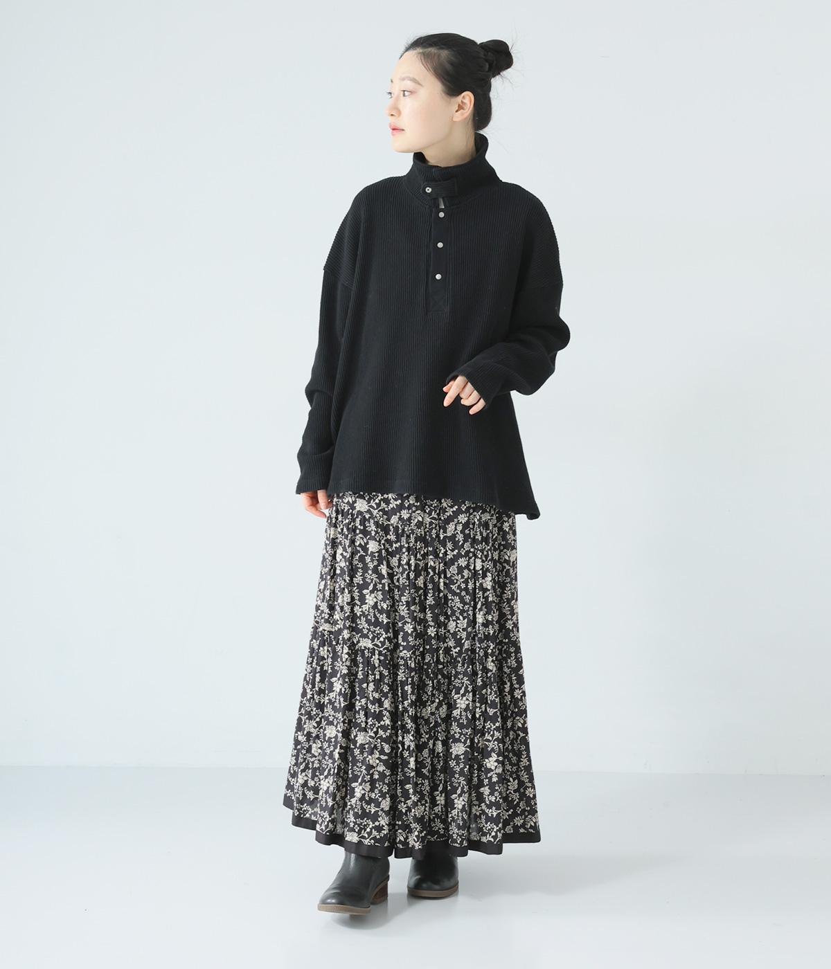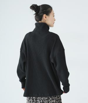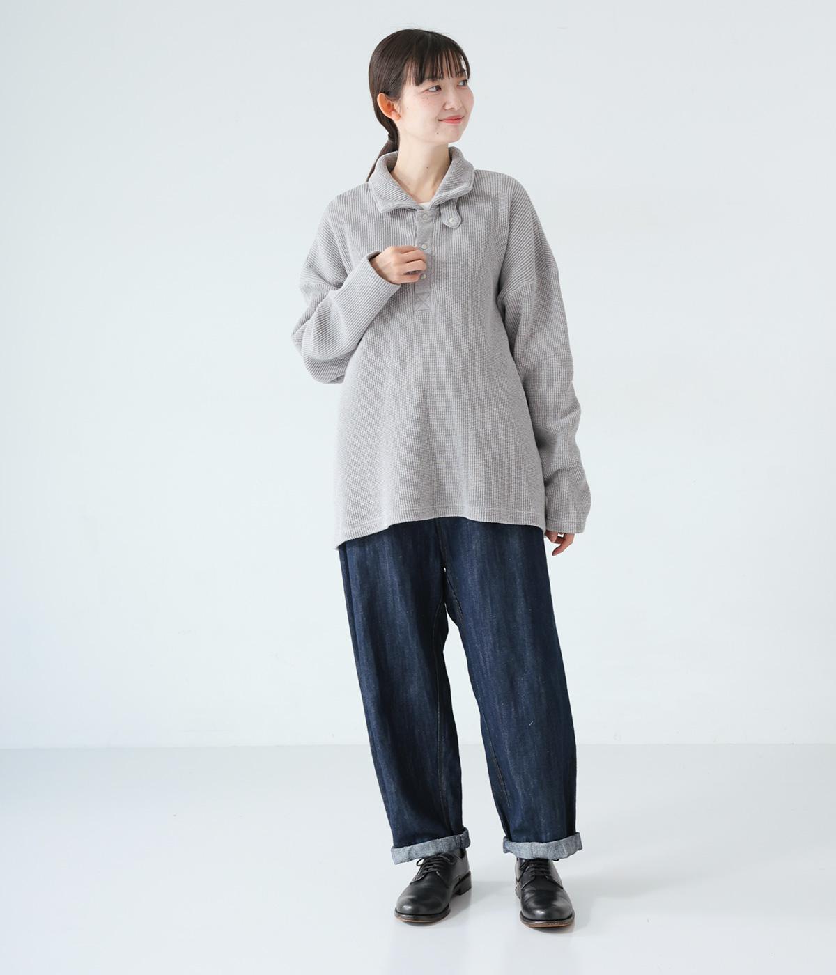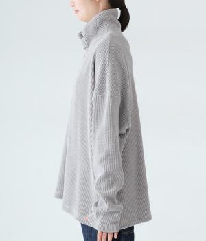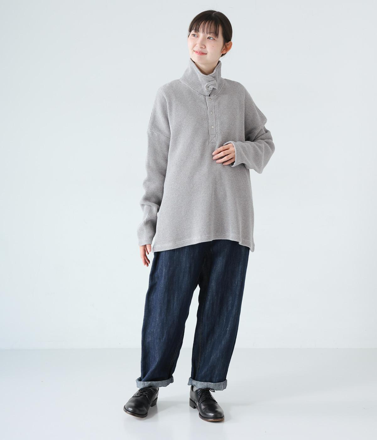 ドロップショルダーとゆとりのある身幅でこなれ感たっぷりに仕上げたプルオーバー。襟元はスナップボタン仕様になっており、留め具合で表情の変化をたのしめます。タブを留めれば、ハイネックにもアレンジ可能。シンプルながらも着こなしの幅が広がります。