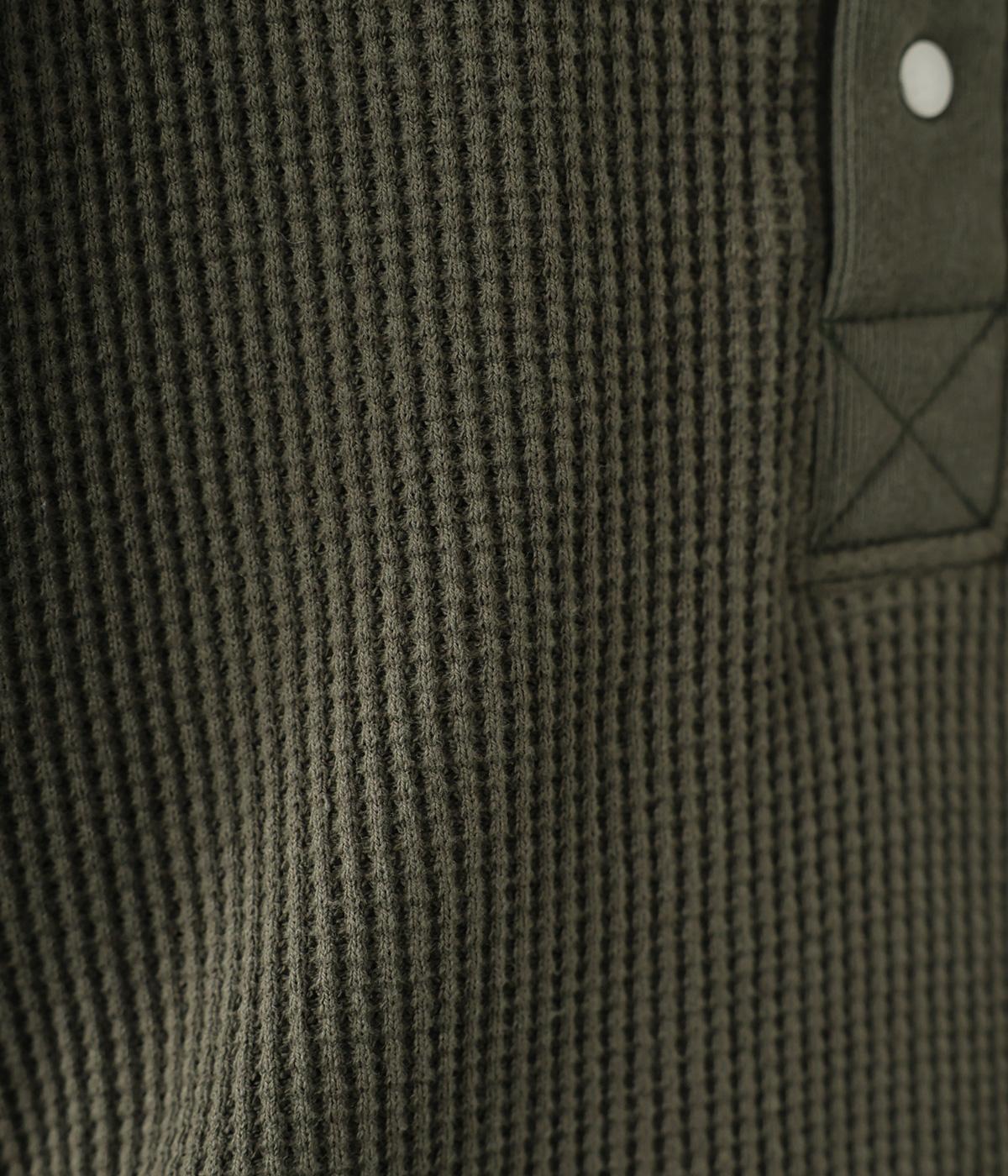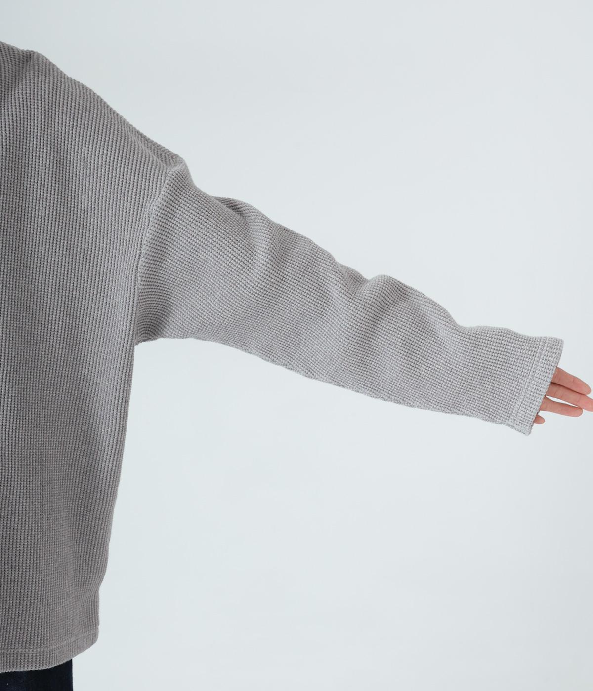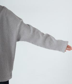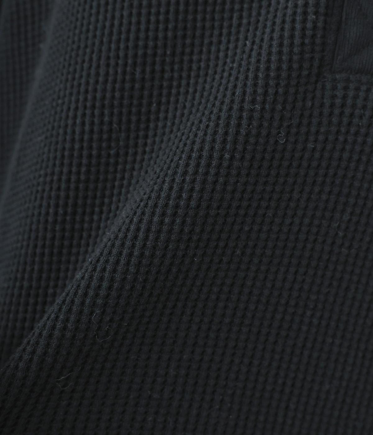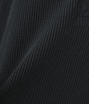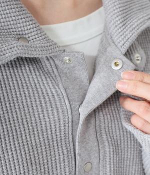 ふっくらとした軽い風合いのコットンワッフル生地を使用。凹凸のある表面が着こなしに表情をプラスします。シワになりにくく、デイリーに気兼ねなく着まわせるのも魅力です。