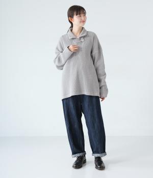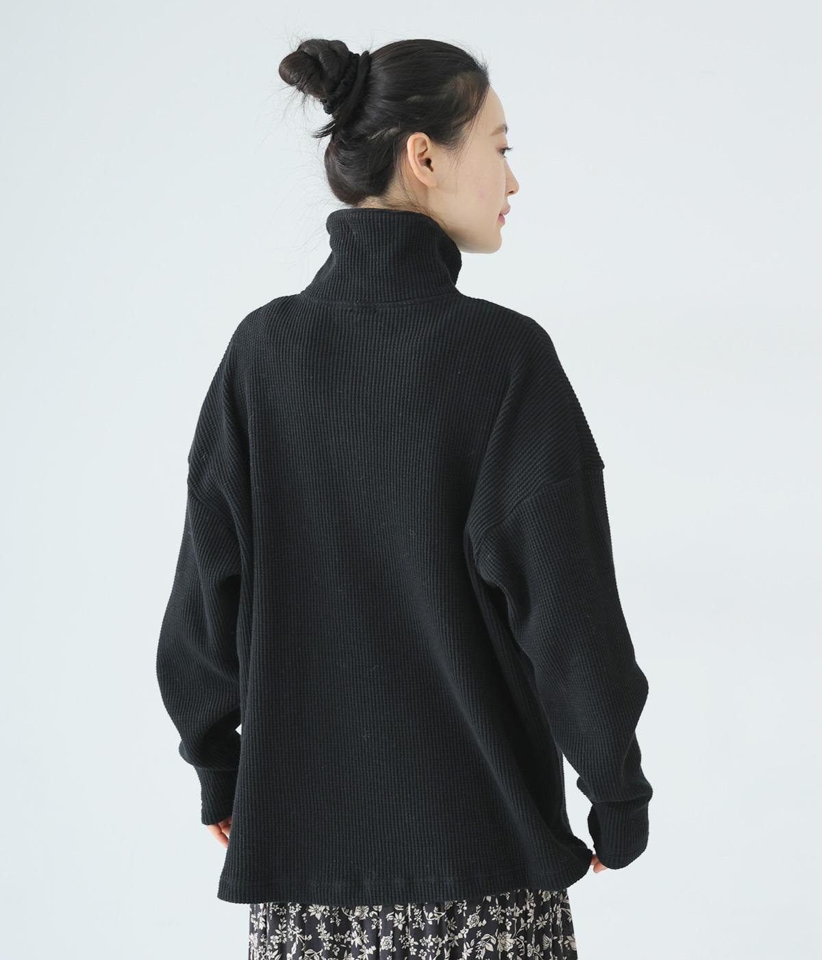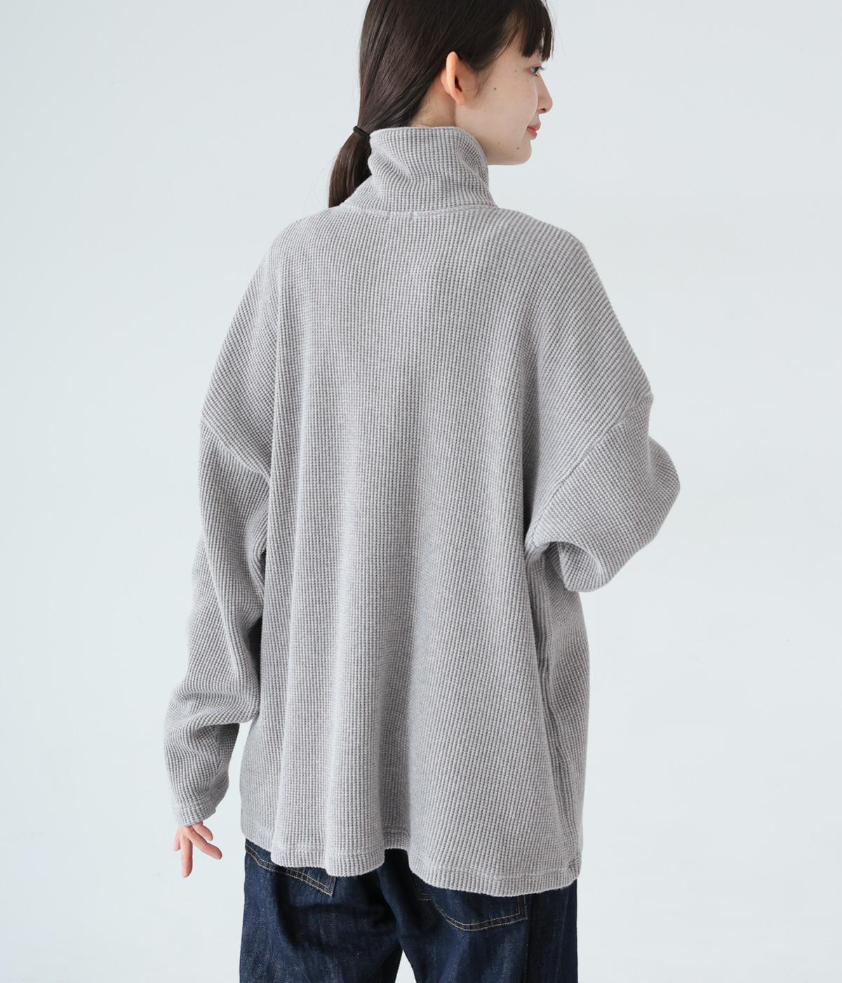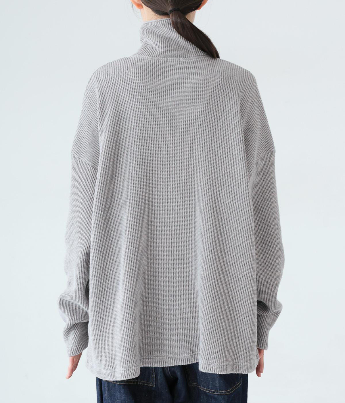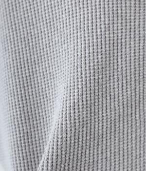 ふっくらとした軽い風合いのコットンワッフル生地を使用。凹凸のある表面が着こなしに表情をプラスします。シワになりにくく、デイリーに気兼ねなく着まわせるのも魅力です。