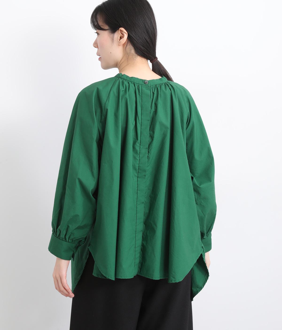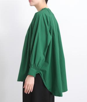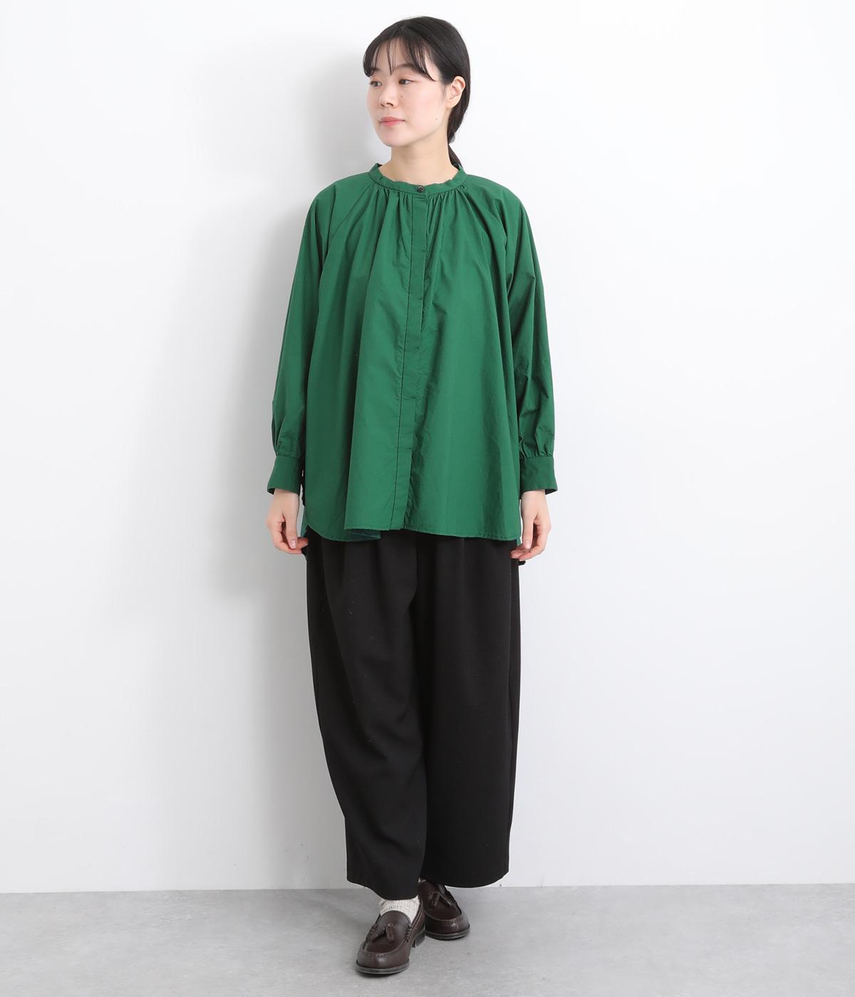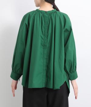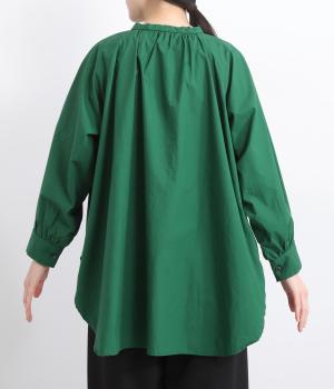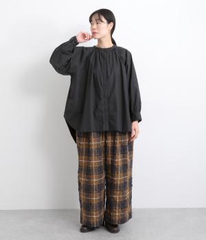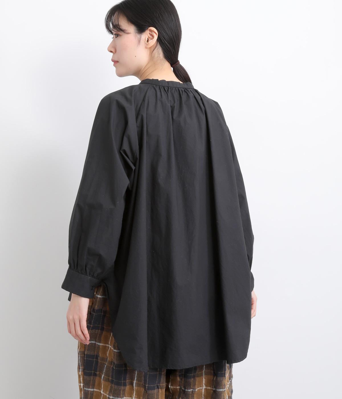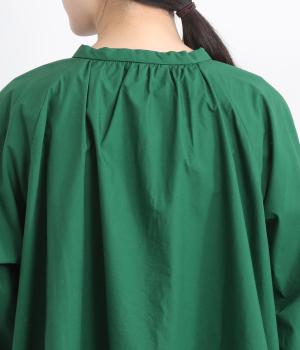 前後2way仕様のワイドシルエットシャツです。前後差のある裾で異なる表情を楽しめます。首元と袖口にほどこしたギャザーやラグラン袖がストンとした落ち感をつくります。カジュアルにもきれいめにも着まわせる一枚です。