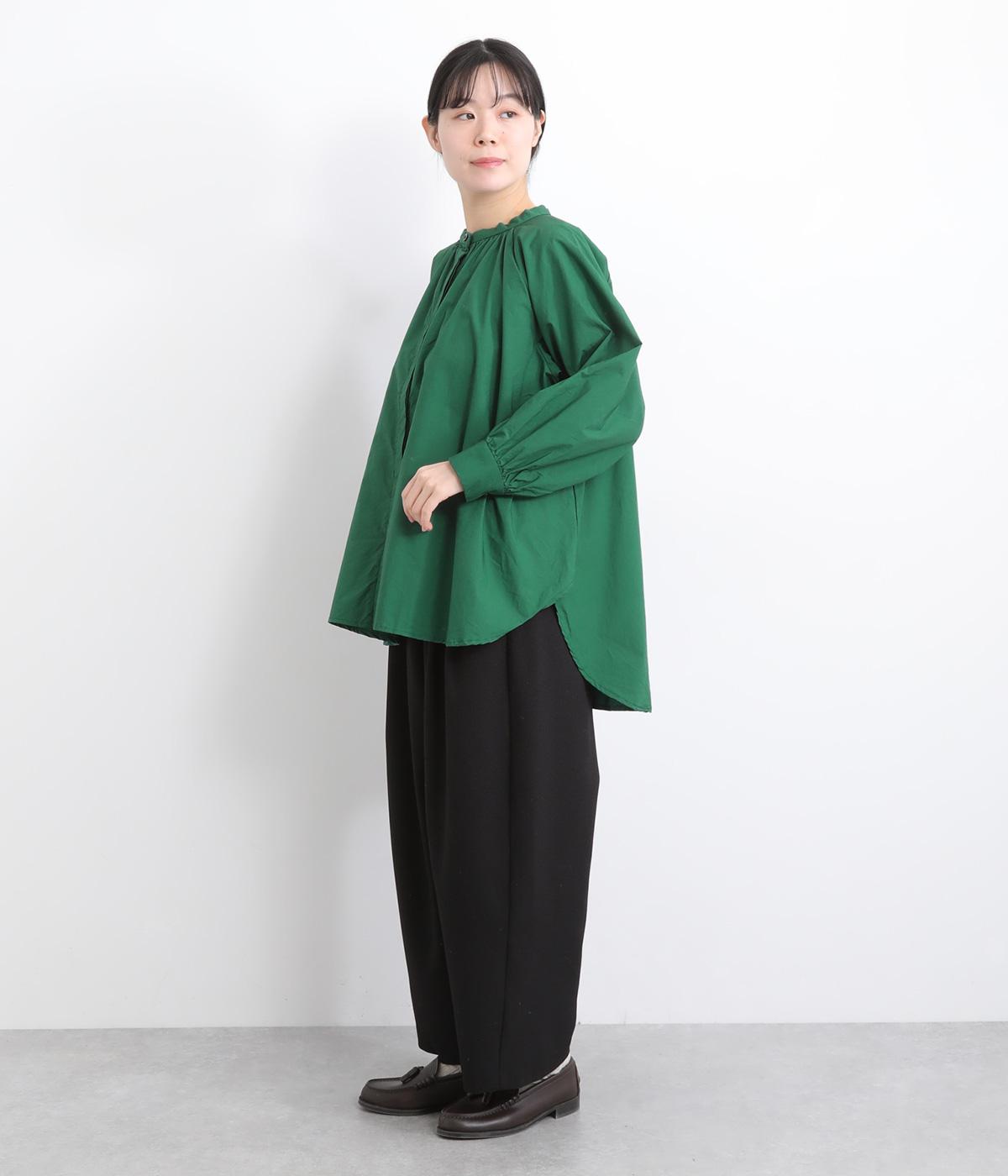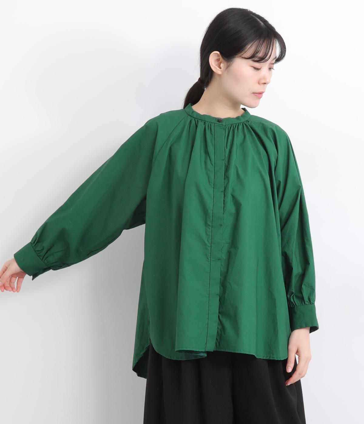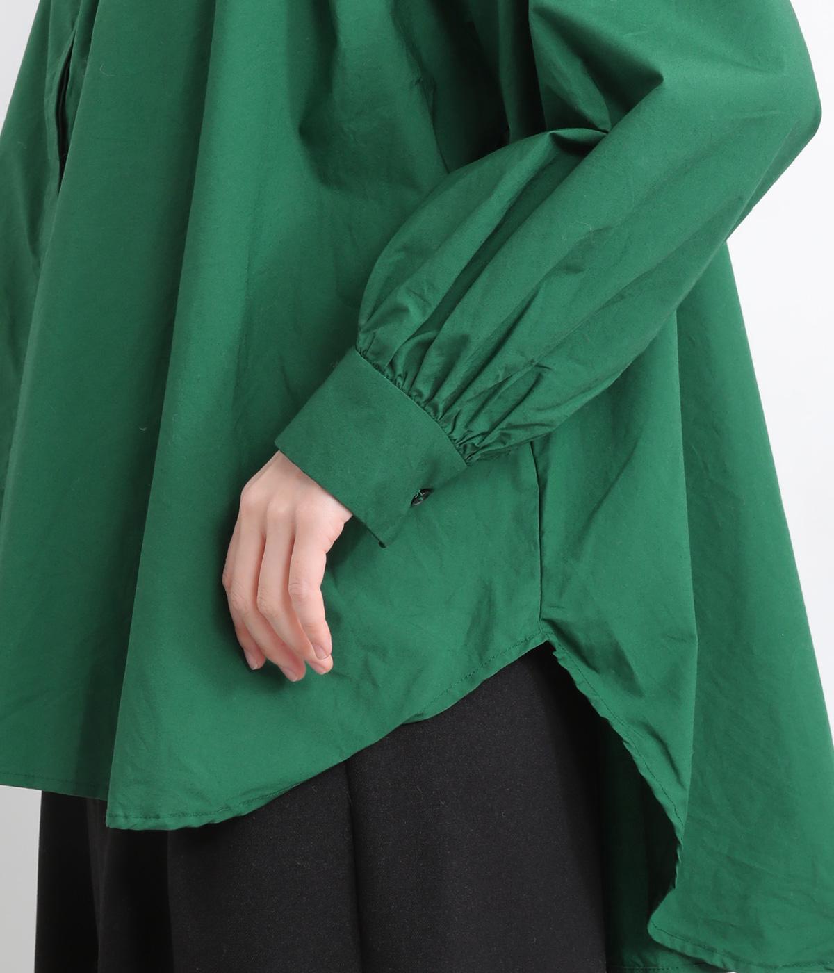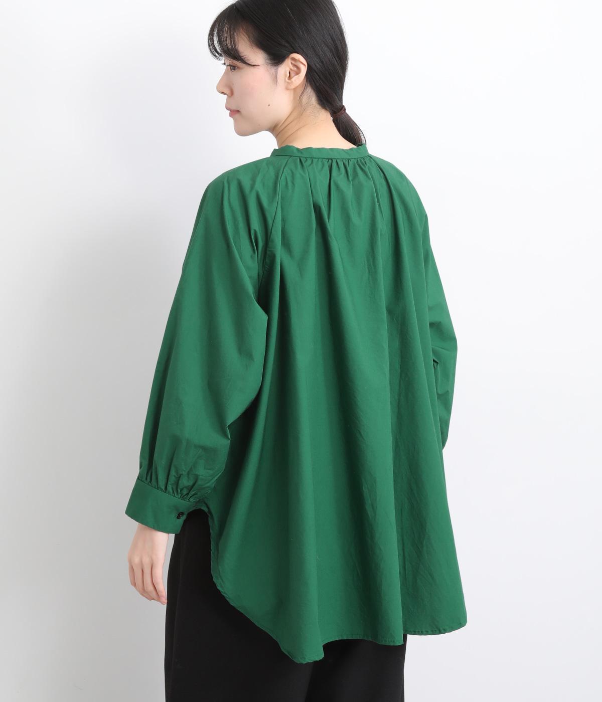 前後2way仕様のワイドシルエットシャツです。前後差のある裾で異なる表情を楽しめます。首元と袖口にほどこしたギャザーやラグラン袖がストンとした落ち感をつくります。カジュアルにもきれいめにも着まわせる一枚です。