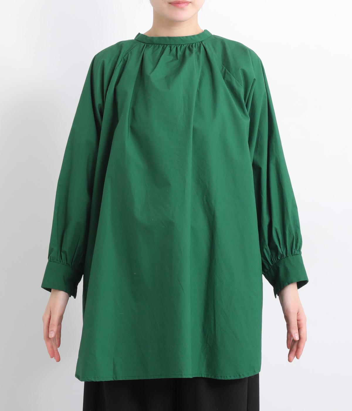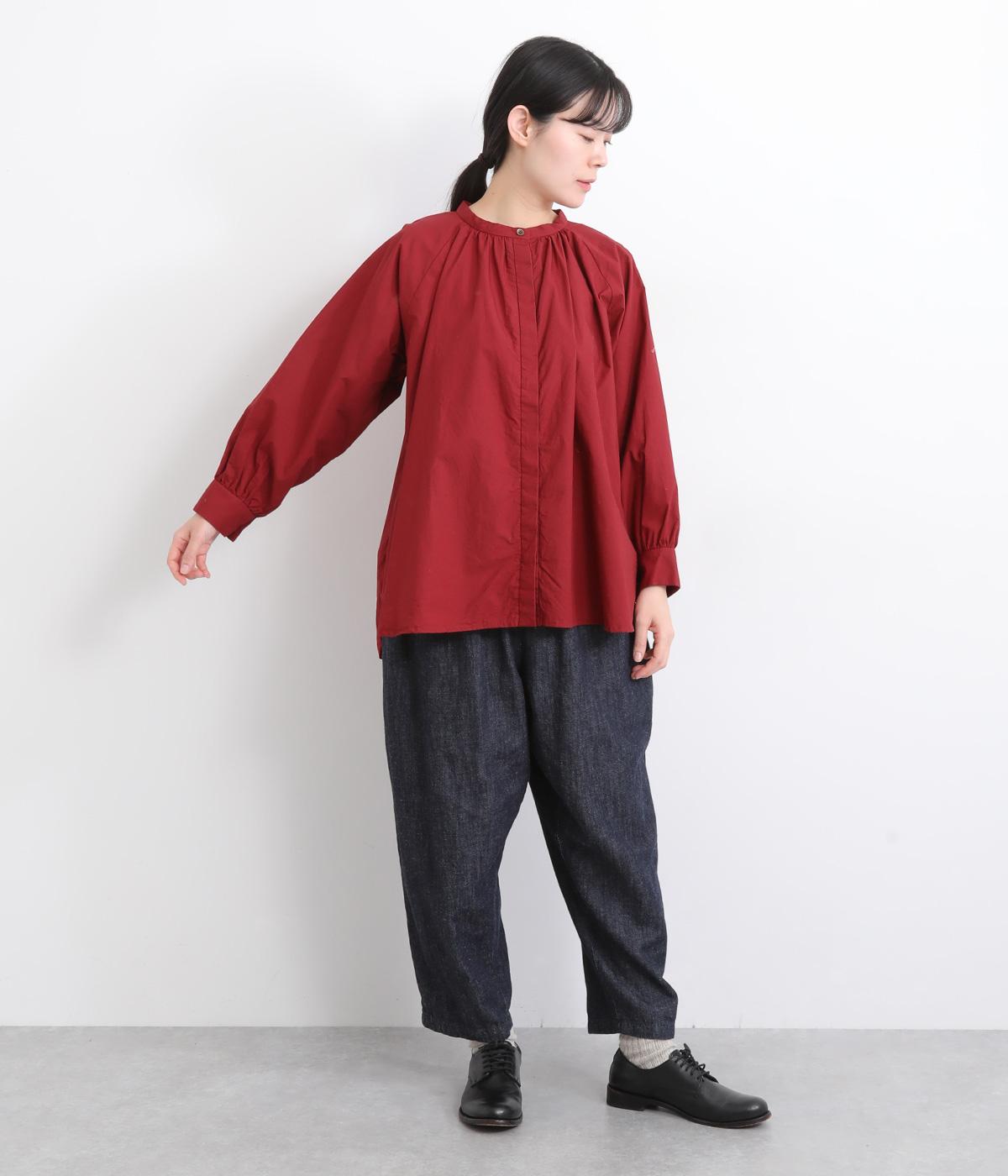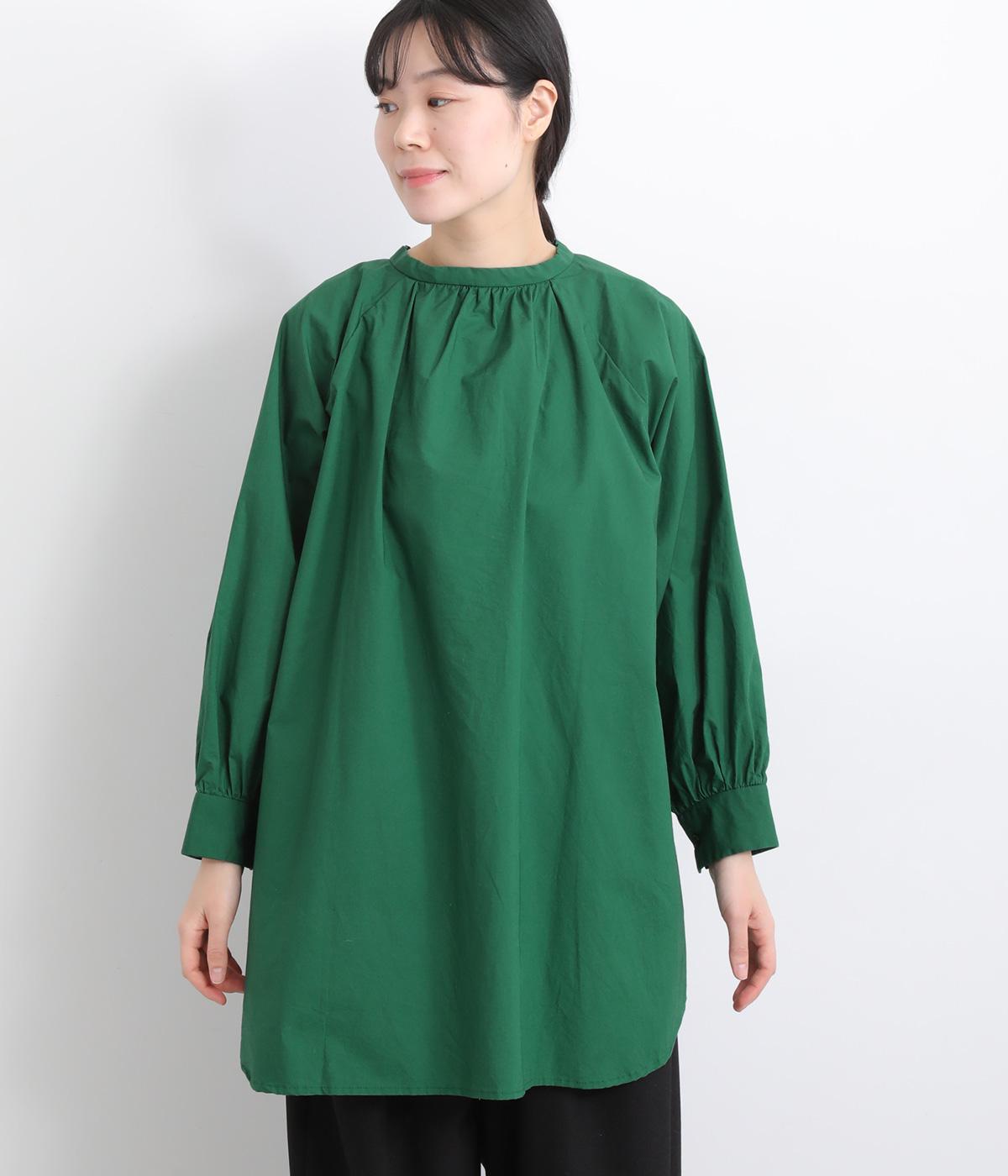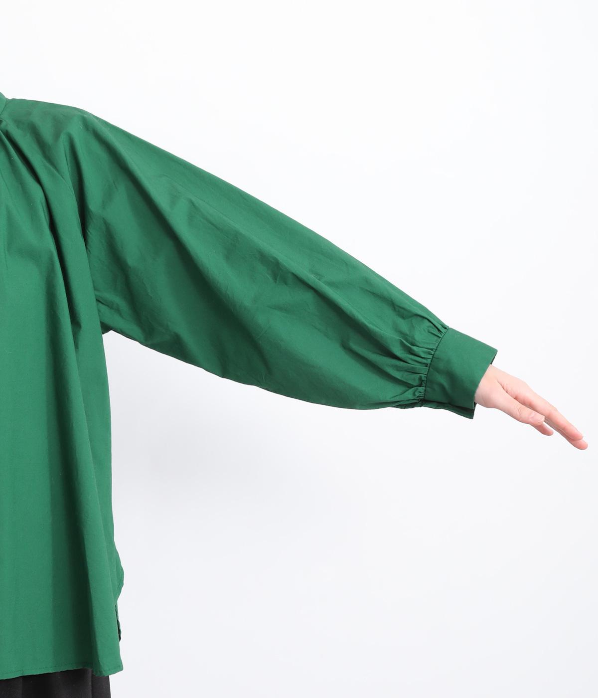前後2way仕様のワイドシルエットシャツです。前後差のある裾で異なる表情を楽しめます。首元と袖口にほどこしたギャザーやラグラン袖がストンとした落ち感をつくります。カジュアルにもきれいめにも着まわせる一枚です。