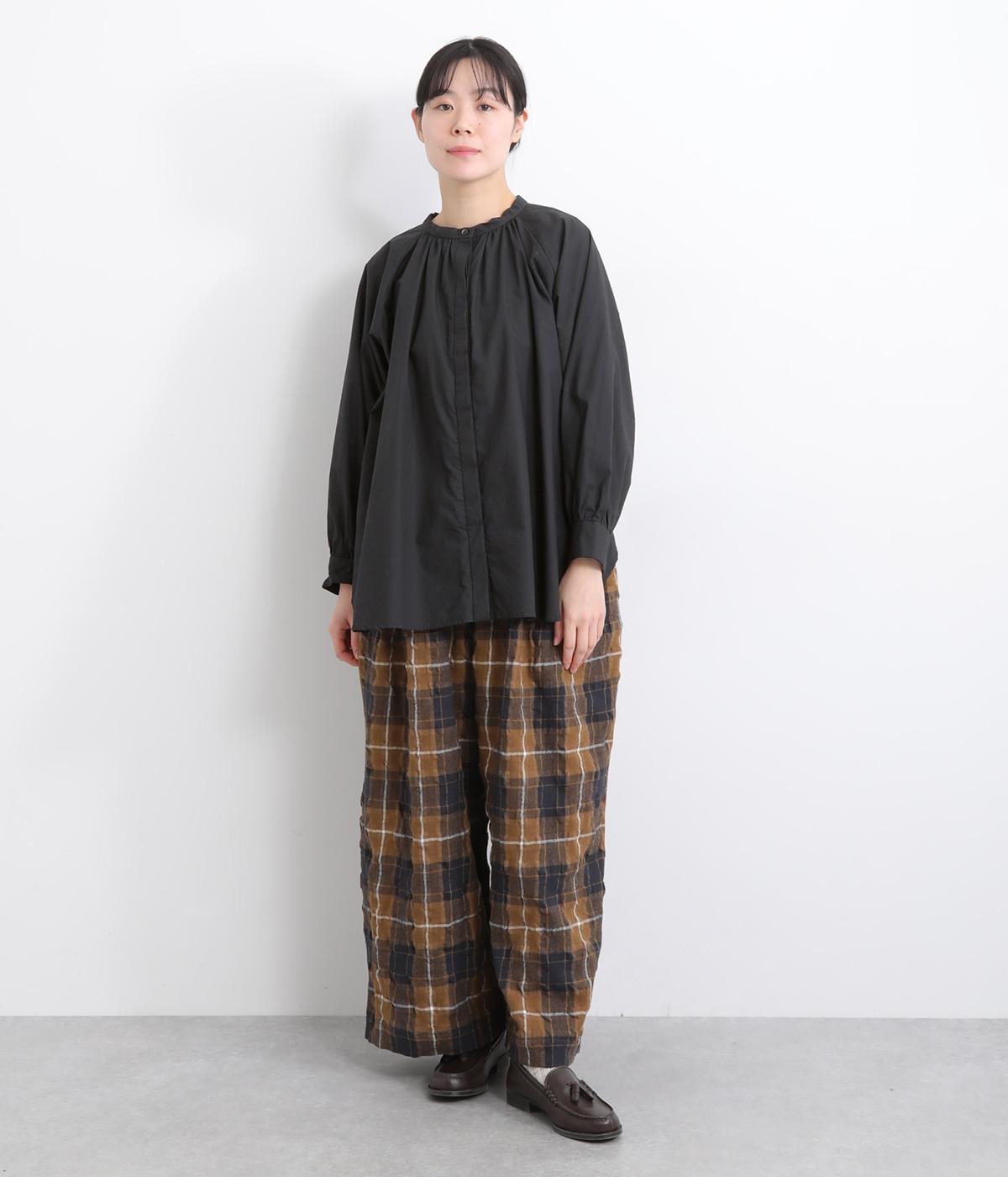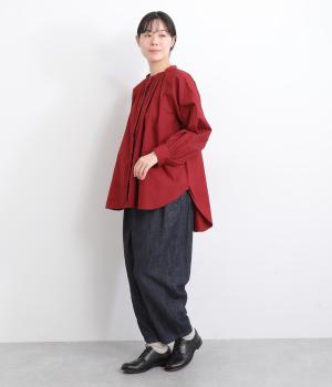 ほどよいハリが上品な印象を与えるコットンタイプライターを使用しました。さらりとして肌ばなれよく、快適な着心地です。季節を問わず着用できる素材感です。