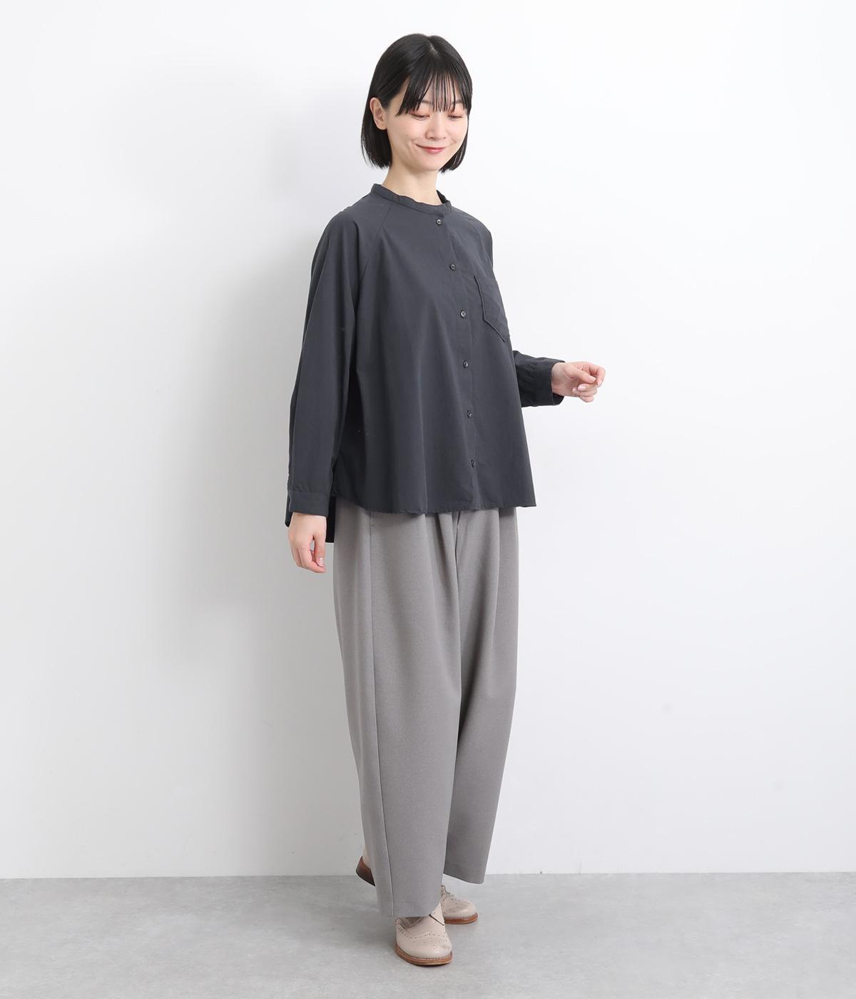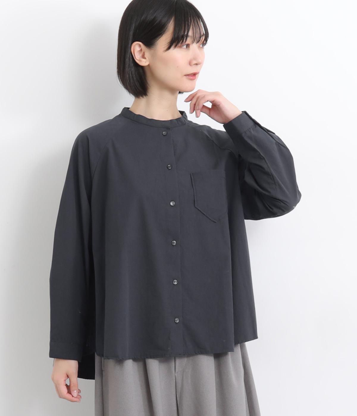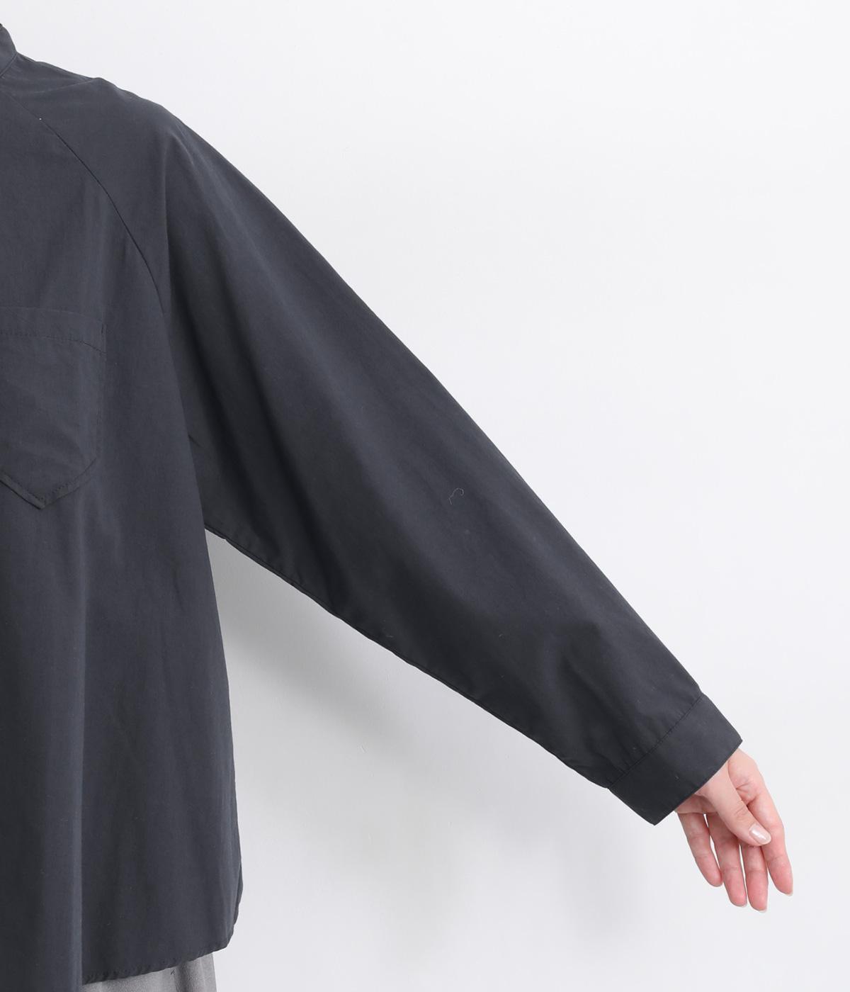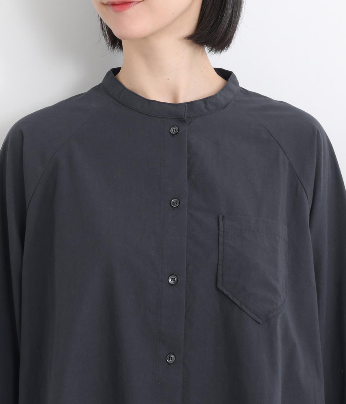 ハリのある素材感できちんと感のあるシャツ。胸に配したポケットやラグラン袖がカジュアル感を添えています。ゆったりしたシルエットでリラクシーな着心地。ボタンを開けて羽織としてスタイリングしても◎。