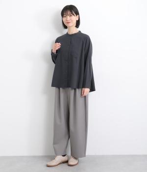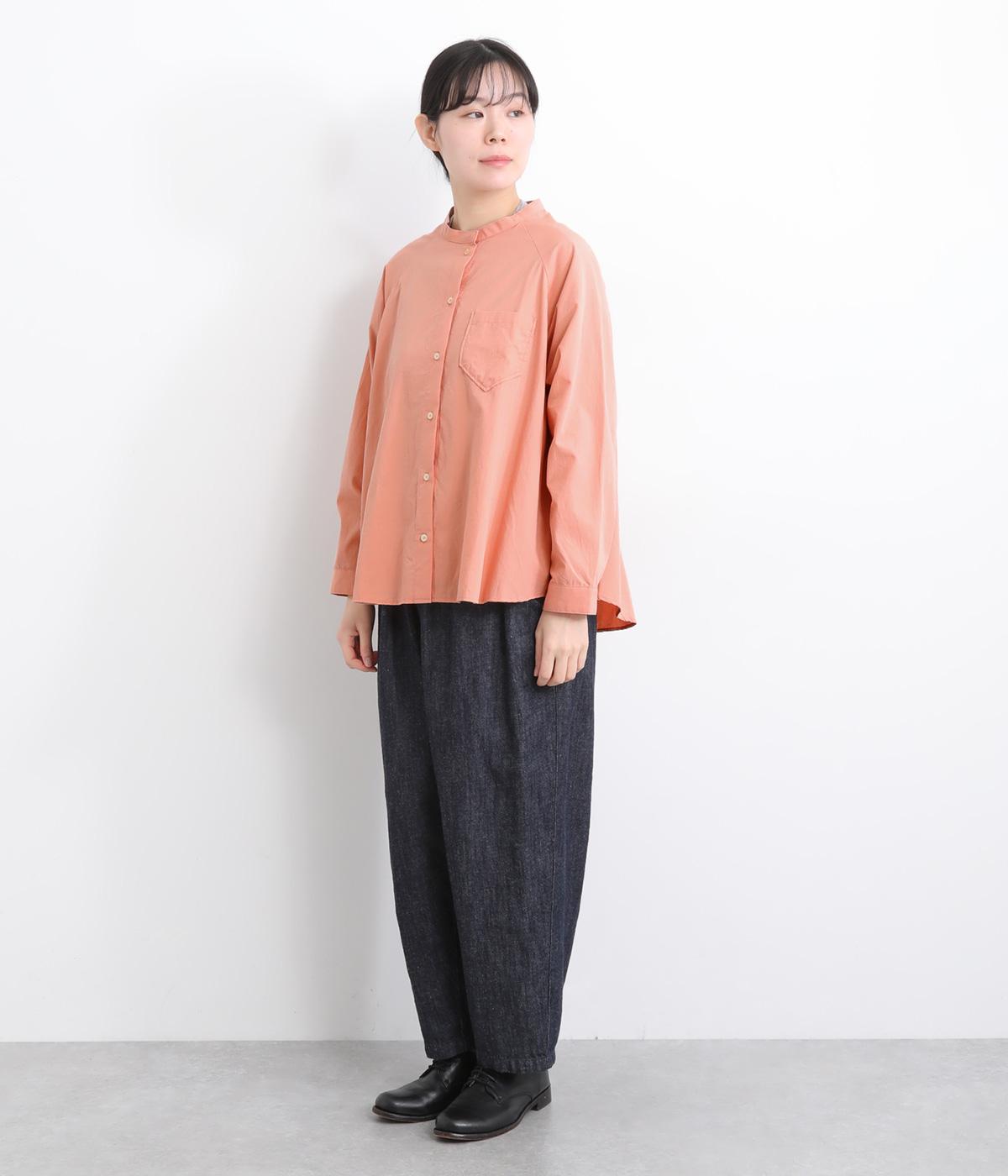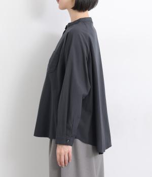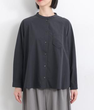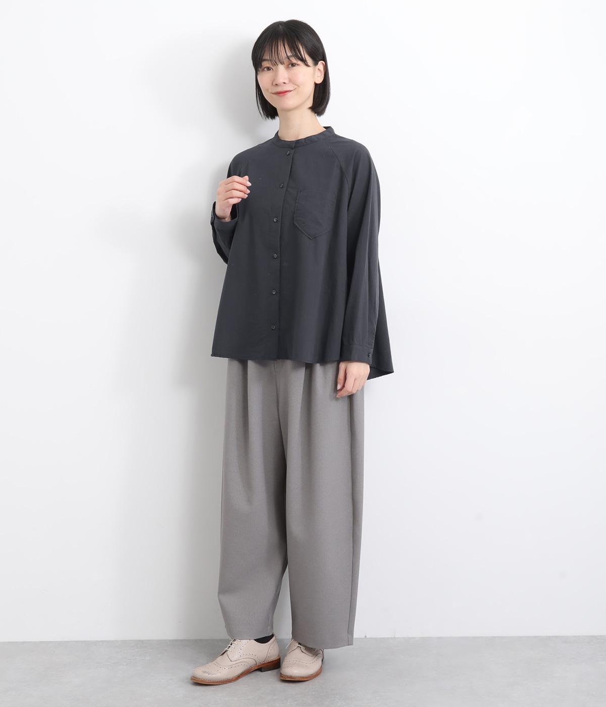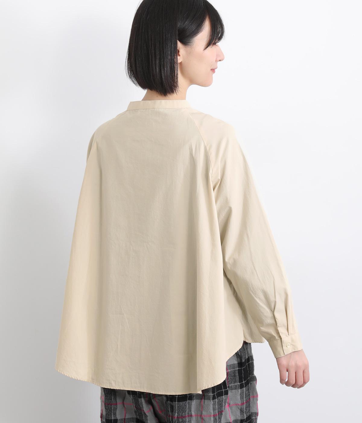 ハリのある素材感できちんと感のあるシャツ。胸に配したポケットやラグラン袖がカジュアル感を添えています。ゆったりしたシルエットでリラクシーな着心地。ボタンを開けて羽織としてスタイリングしても◎。