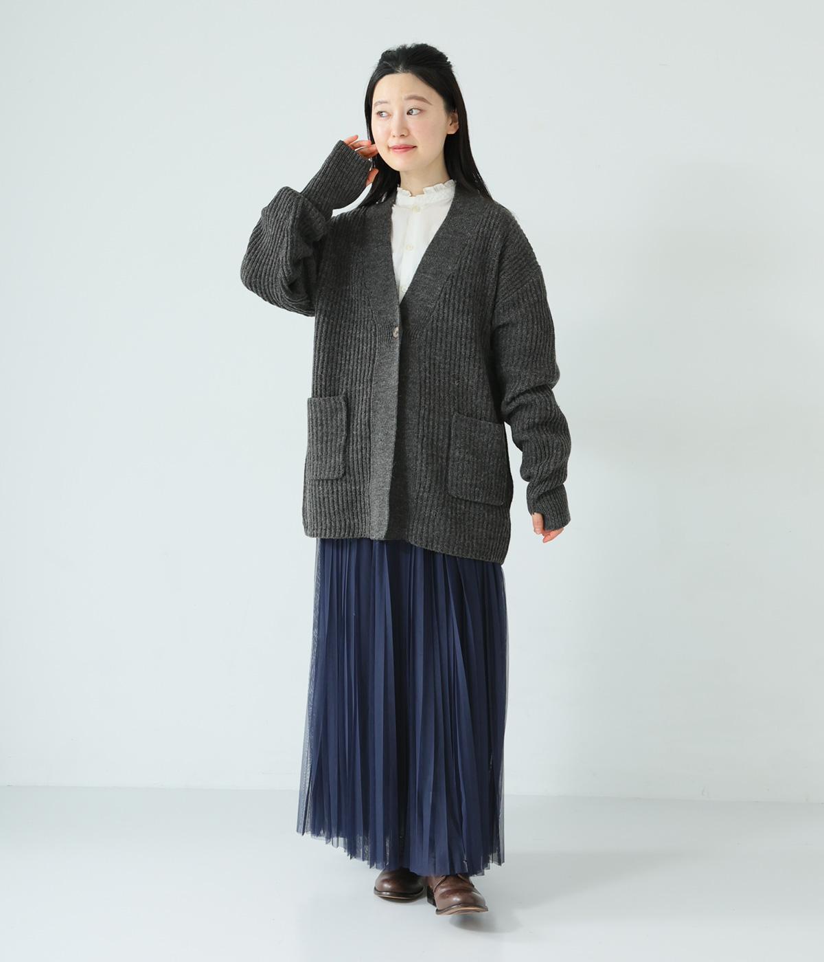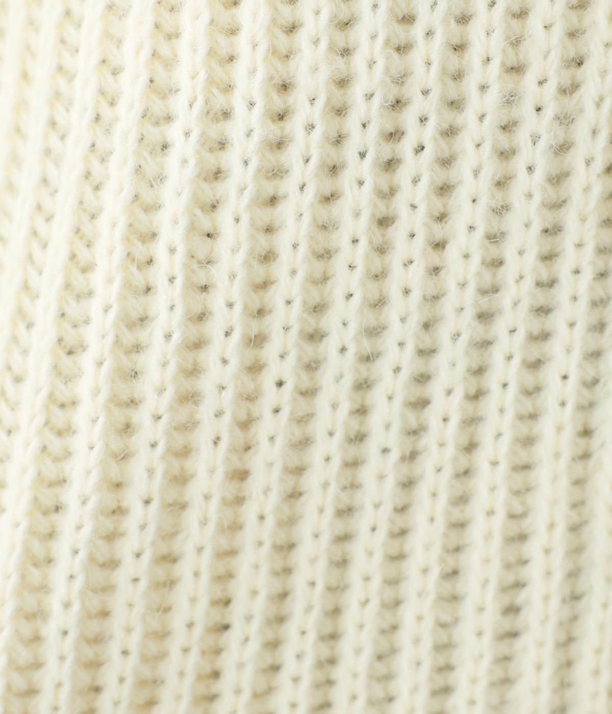 ふっくらとしたやわらかな質感がたのしめるアルパカ混ニットです。ほどよい厚みがあり、寒い時期に頼れるとてもあたたかな着用感。立体的なリブ編みもポイントです。