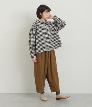 自然なシワ感がナチュラルな風合いをより惹き立てるコットンリネン生地を採用。ほのかに起毛させることで、カジュアルながらもやさしい雰囲気に。