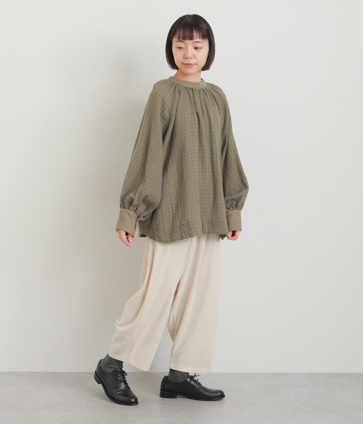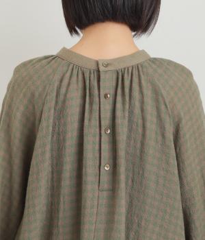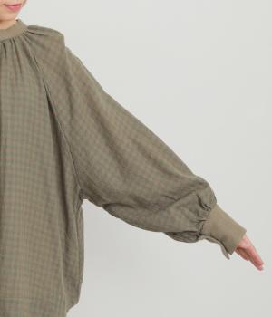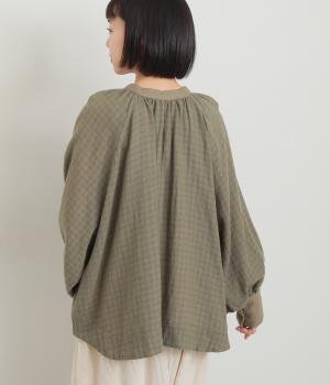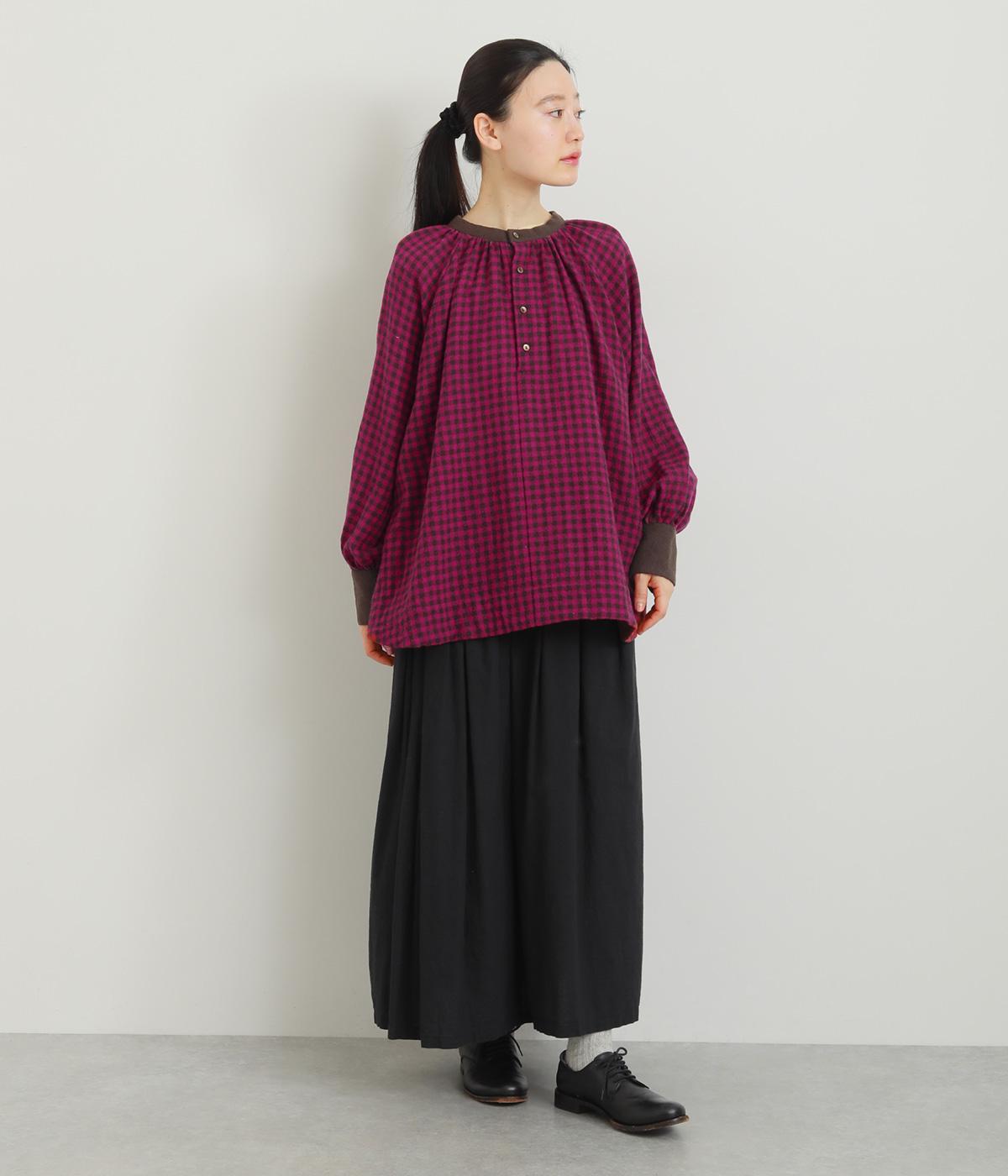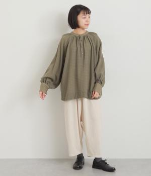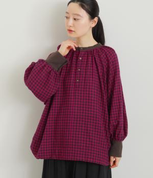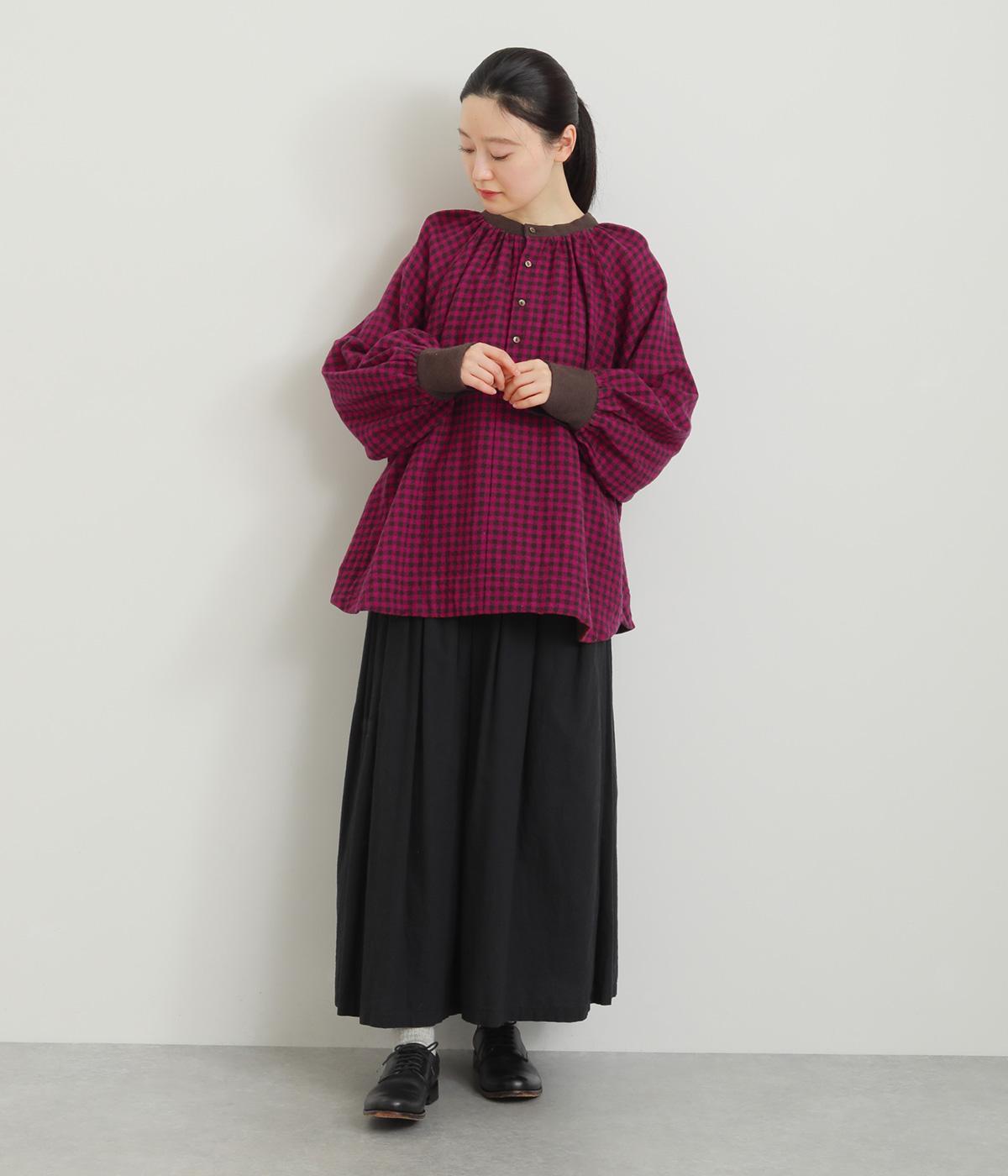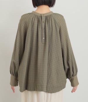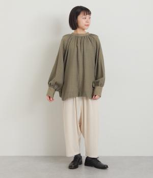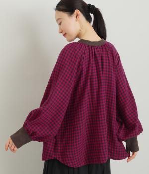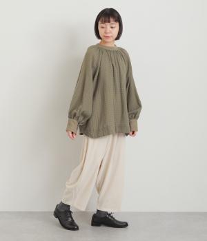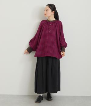 たっぷりとボリュームを持たせたラグラン袖に太めのカフスや襟ぐりの配色が着映え力の高いブラウス。ヘンリーネックと後ろあき、どちらもたのしめる2way仕様で着こなしの幅も広がります。ギャザーを寄せたフレアシルエットも◎。