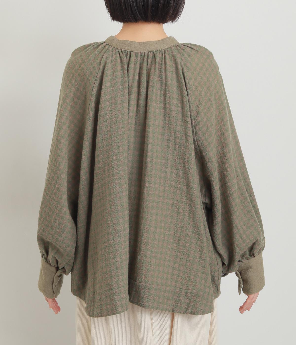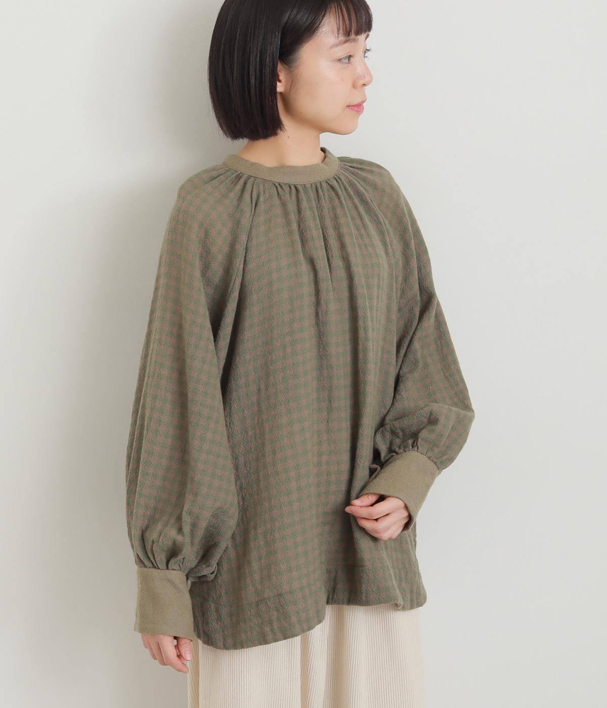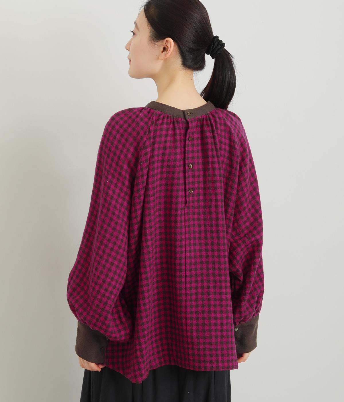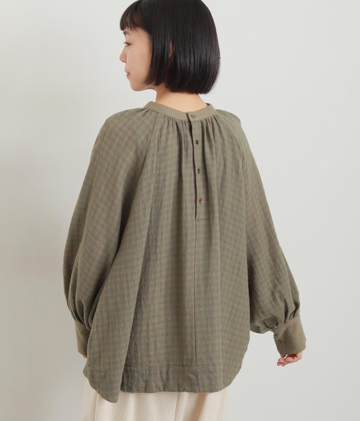 たっぷりとボリュームを持たせたラグラン袖に太めのカフスや襟ぐりの配色が着映え力の高いブラウス。ヘンリーネックと後ろあき、どちらもたのしめる2way仕様で着こなしの幅も広がります。ギャザーを寄せたフレアシルエットも◎。