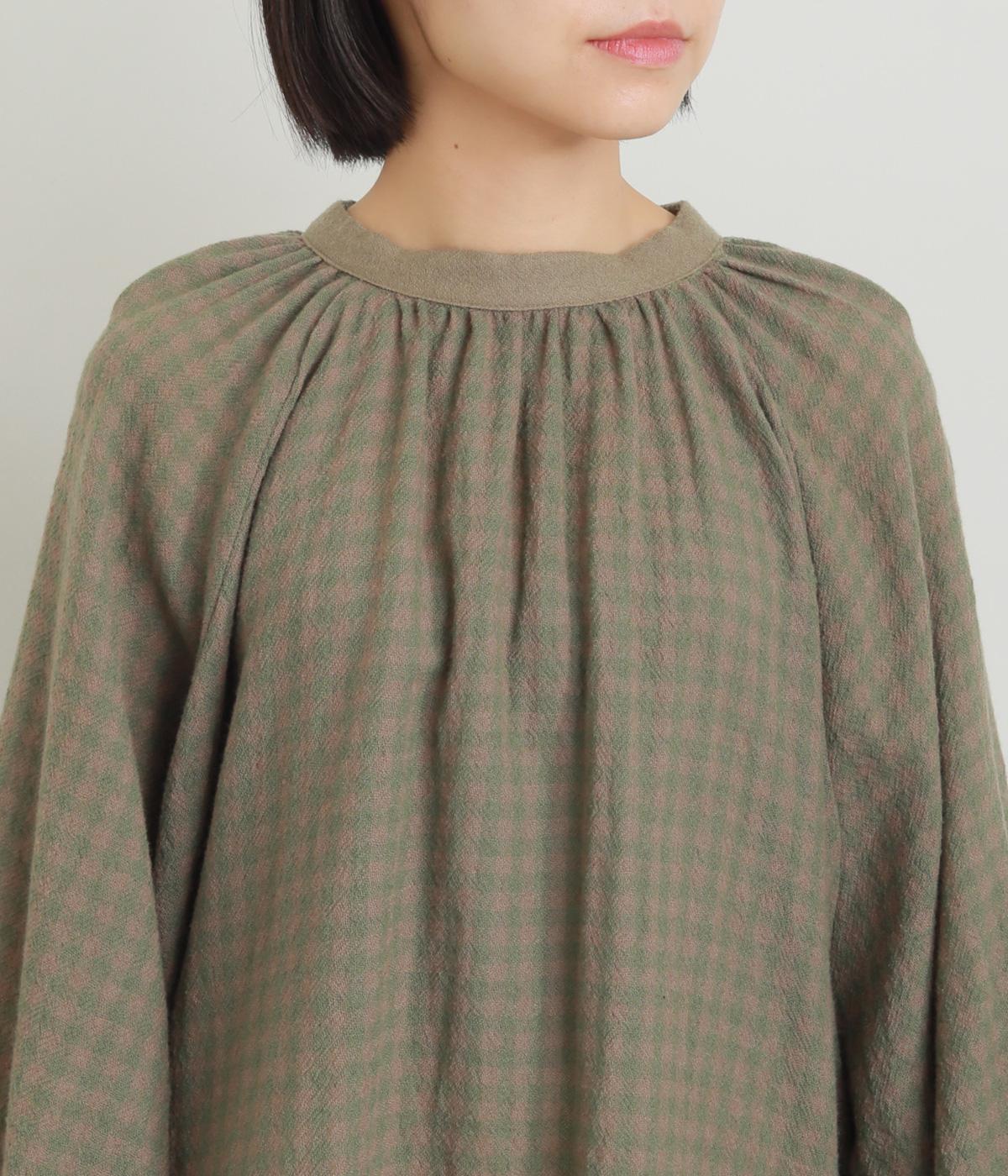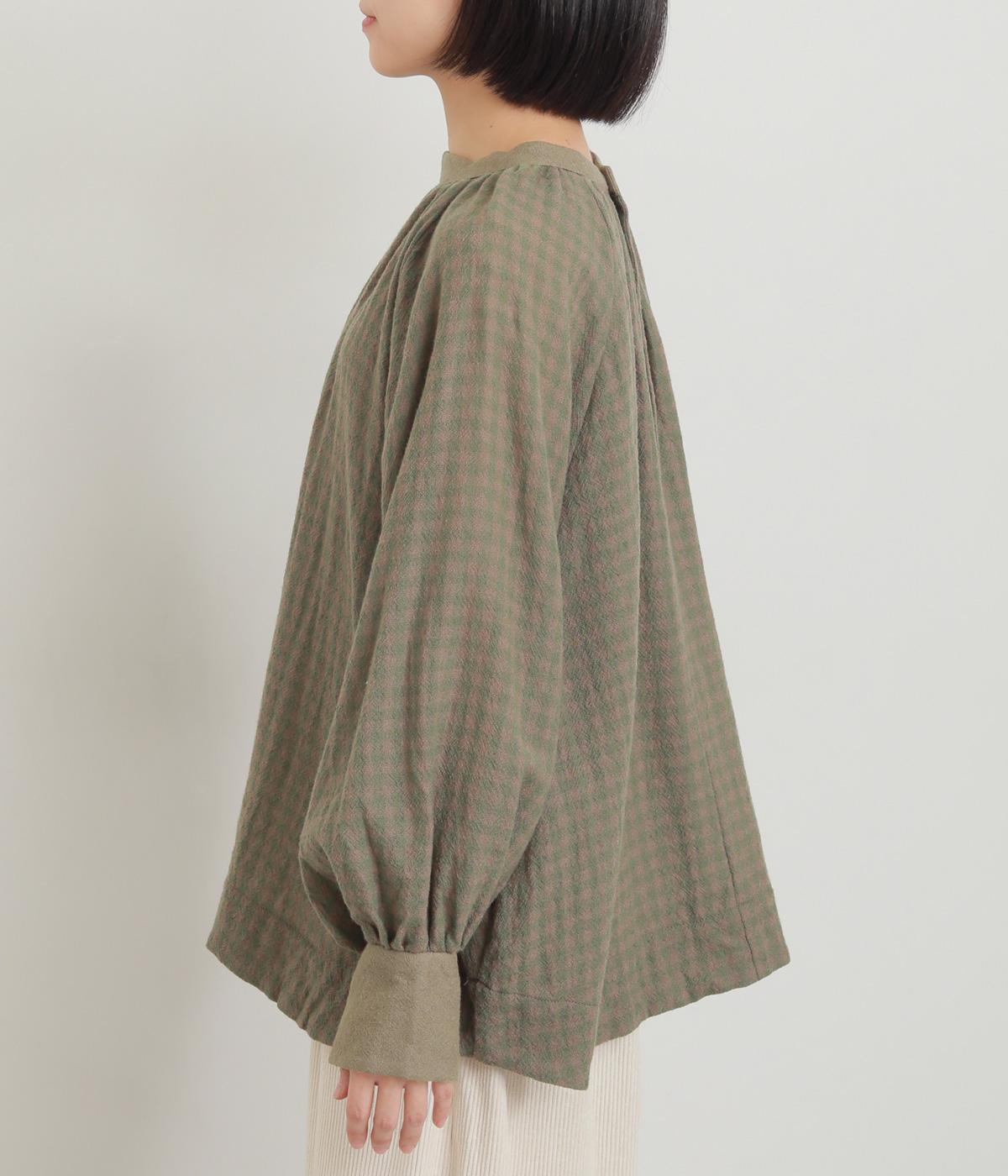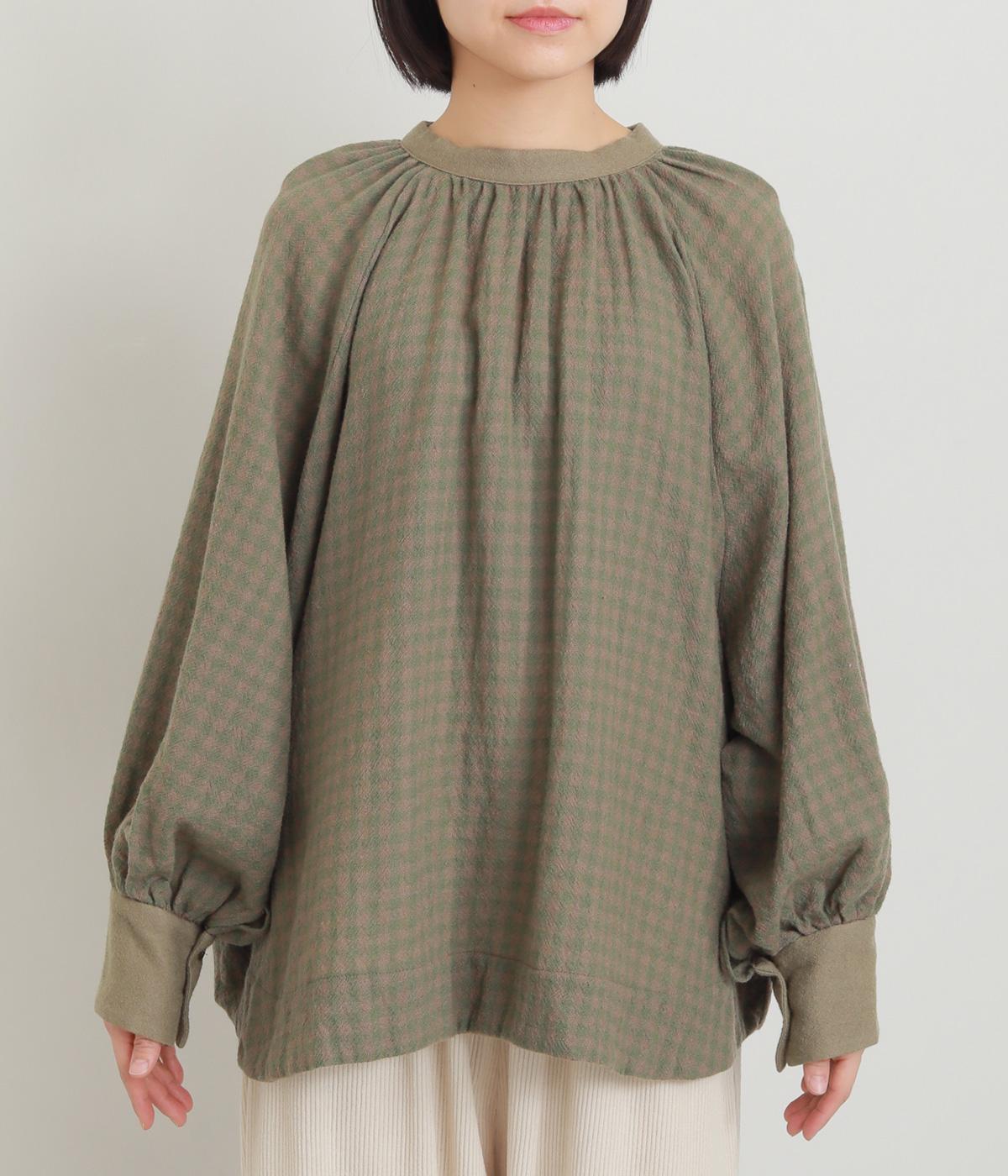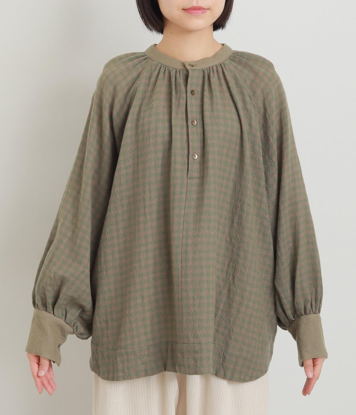 たっぷりとボリュームを持たせたラグラン袖に太めのカフスや襟ぐりの配色が着映え力の高いブラウス。ヘンリーネックと後ろあき、どちらもたのしめる2way仕様で着こなしの幅も広がります。ギャザーを寄せたフレアシルエットも◎。