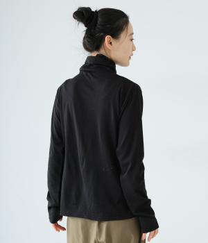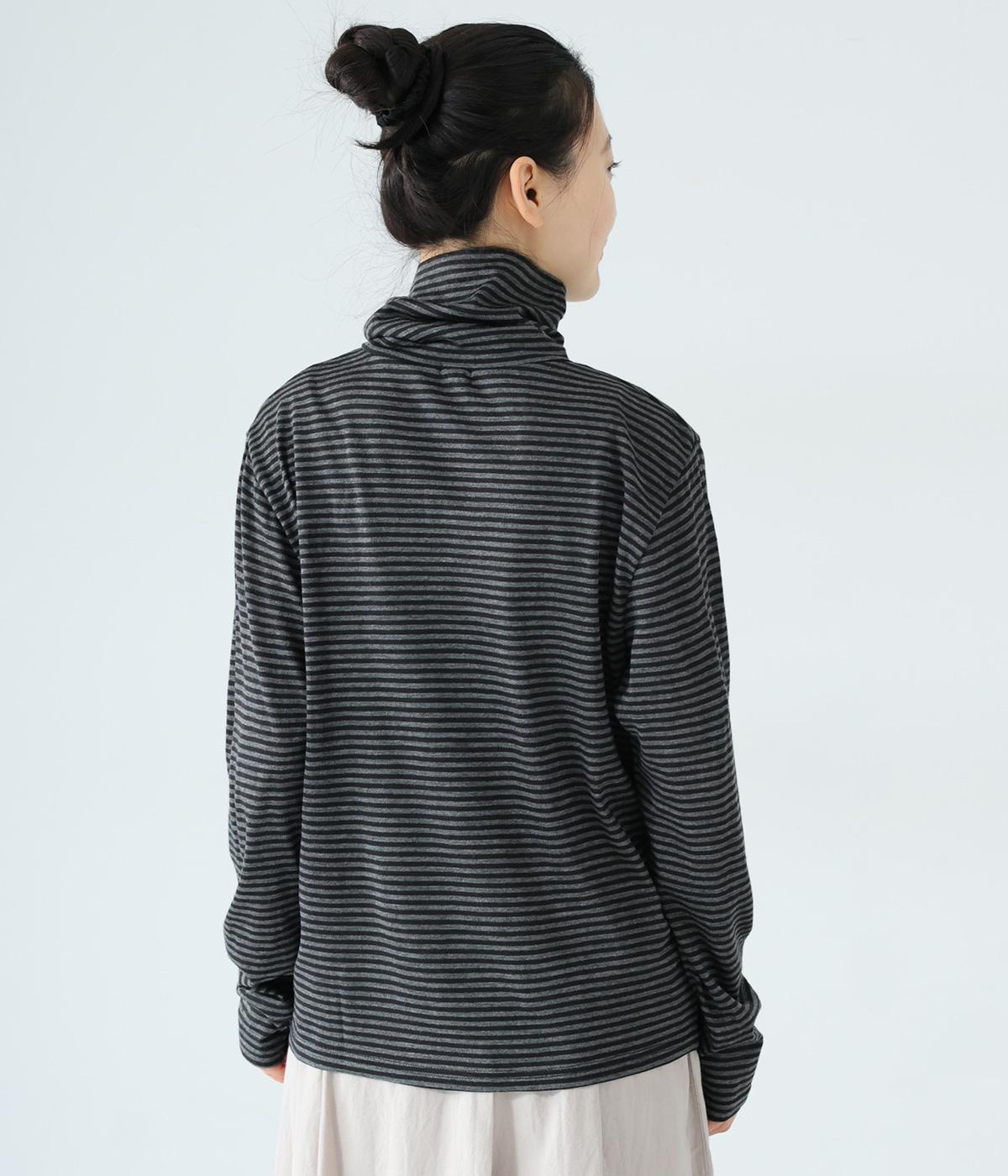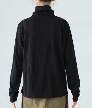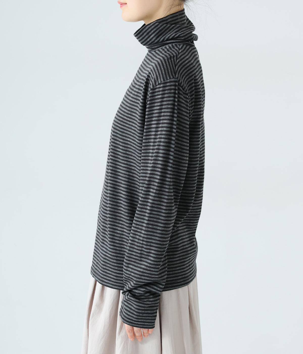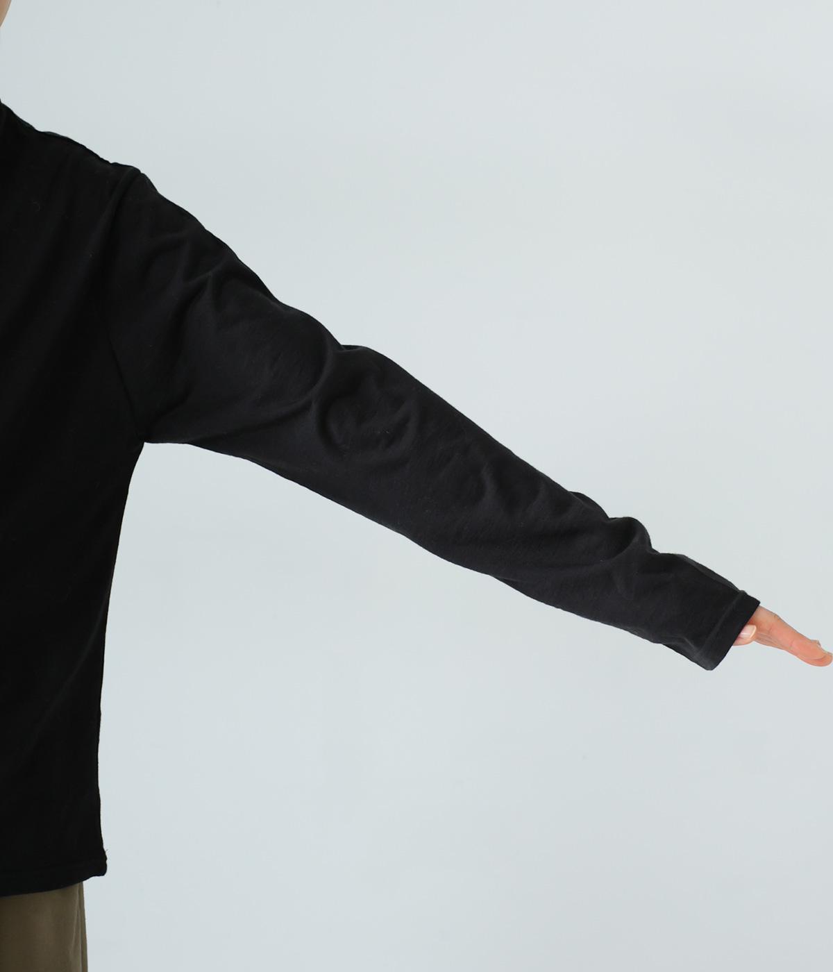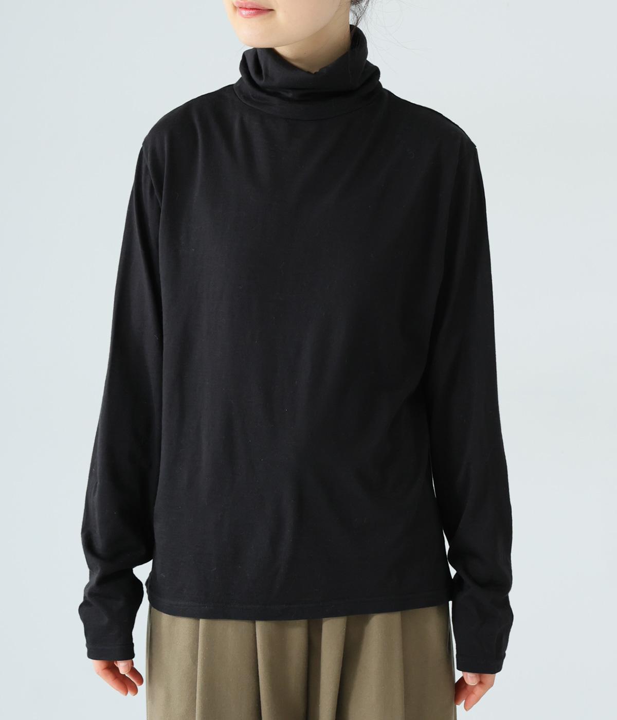 薄手ながらもしっかりと保温性を備えたウール混のカットソー生地です。とても軽くて肌ざわりはやわらか。一枚ではもちろん、インナーとしても使い勝手のよい生地感です。