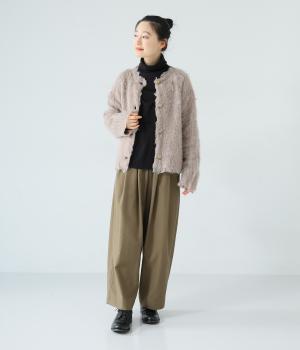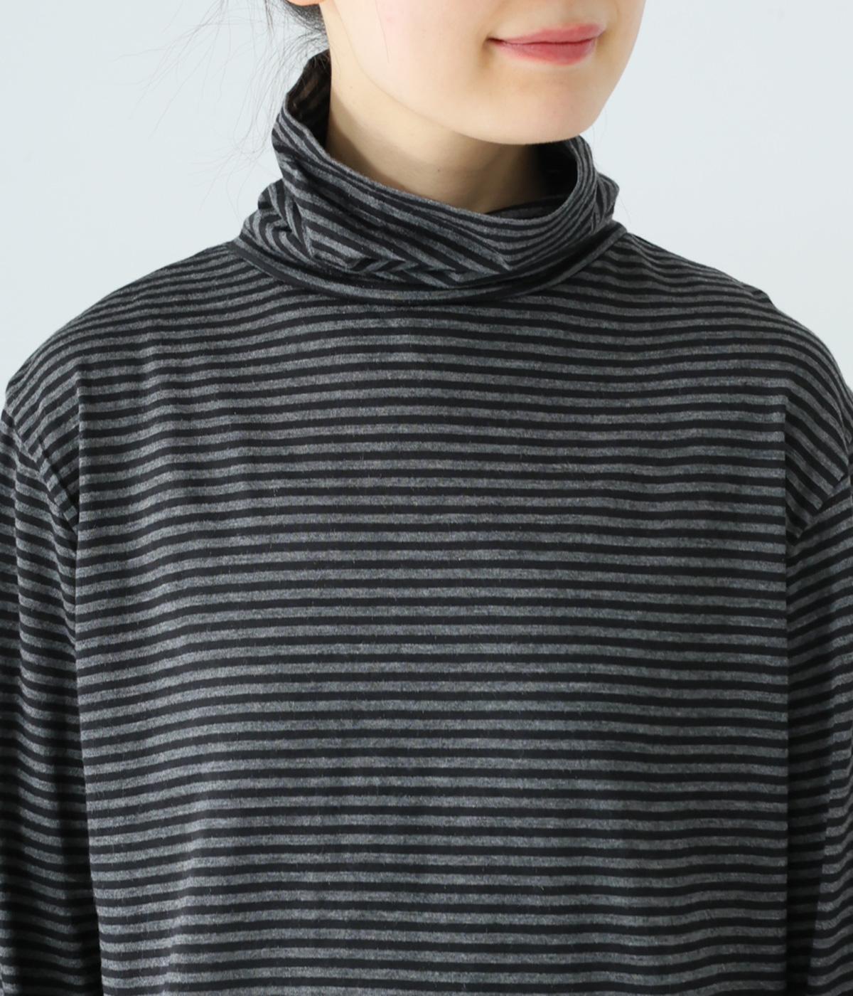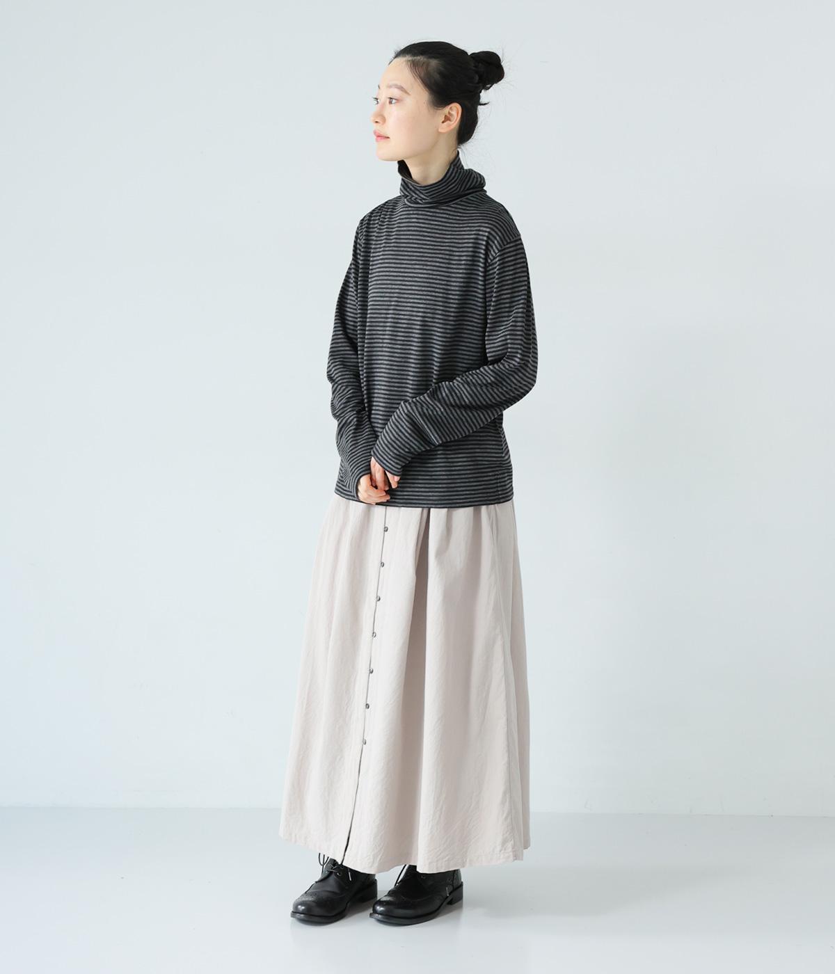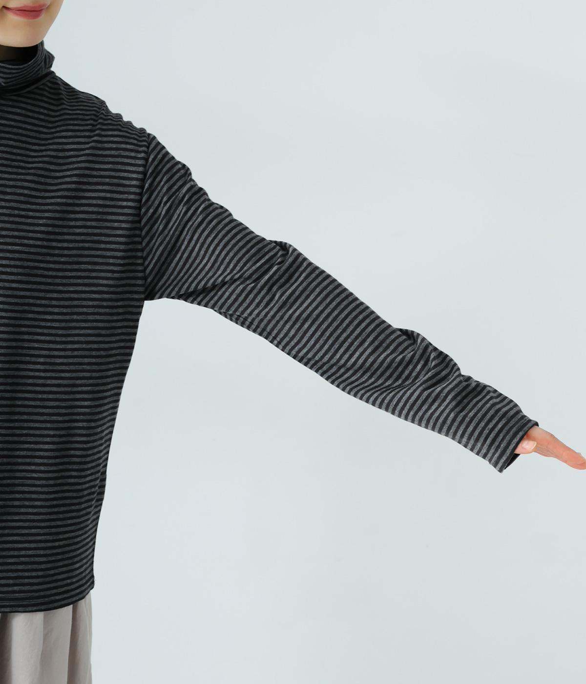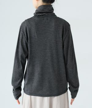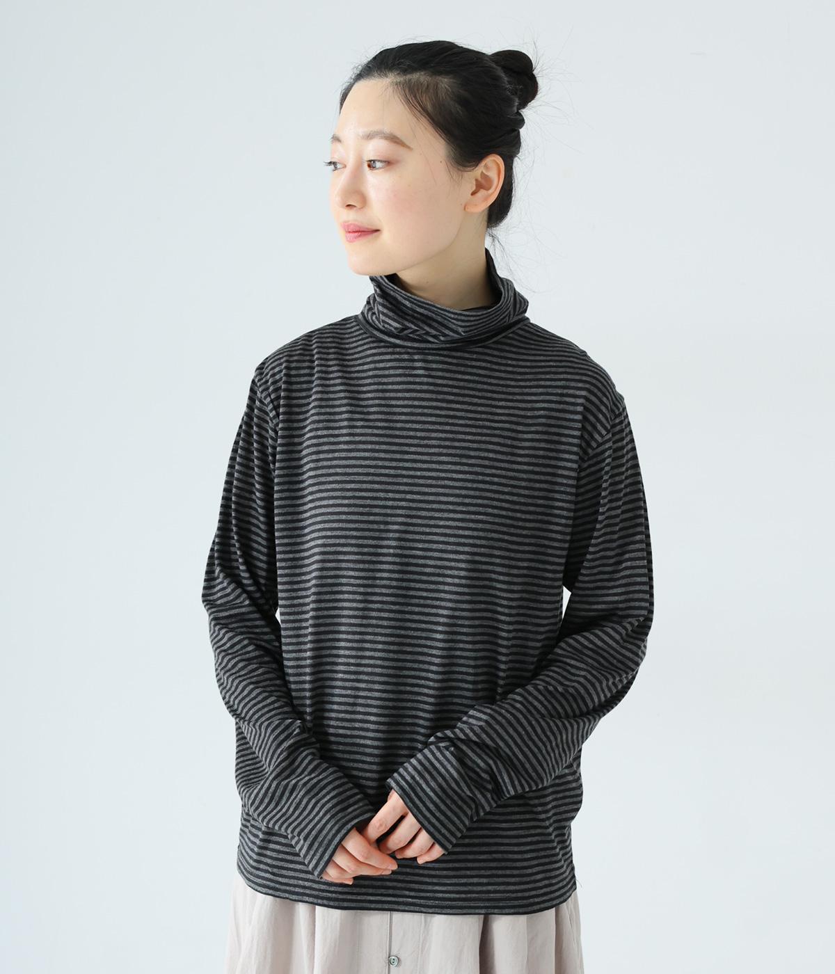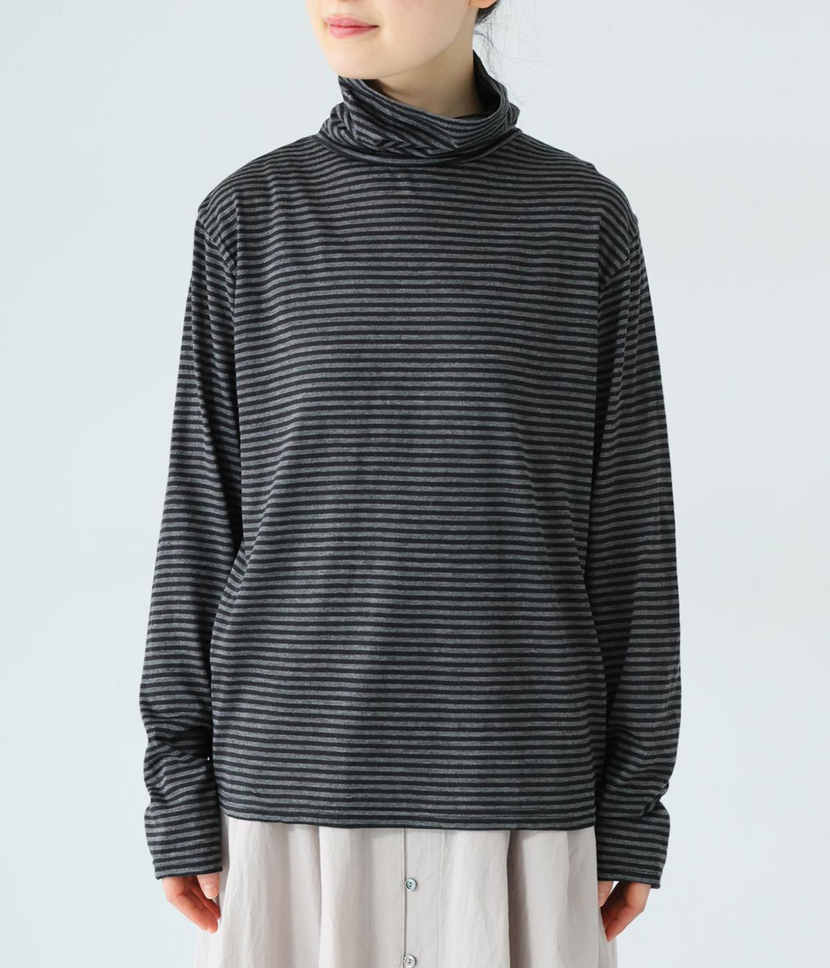 薄手ながらもしっかりと保温性を備えたウール混のカットソー生地です。とても軽くて肌ざわりはやわらか。一枚ではもちろん、インナーとしても使い勝手のよい生地感です。
