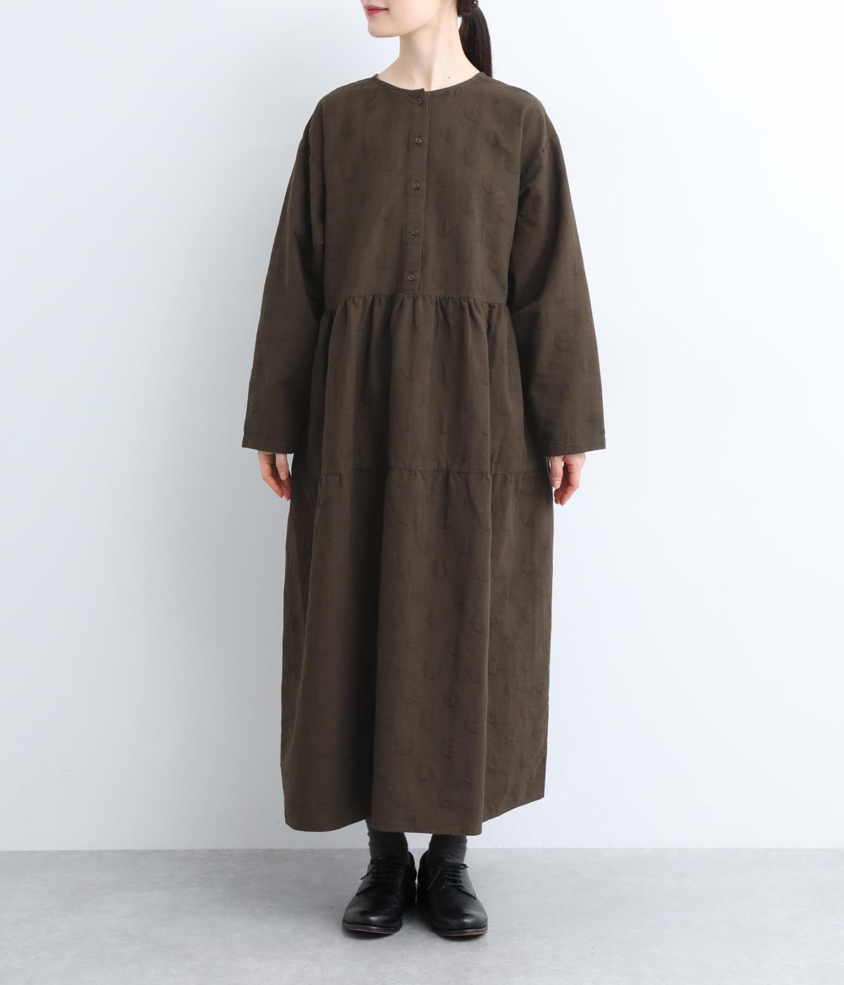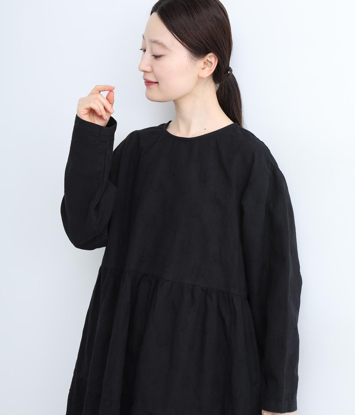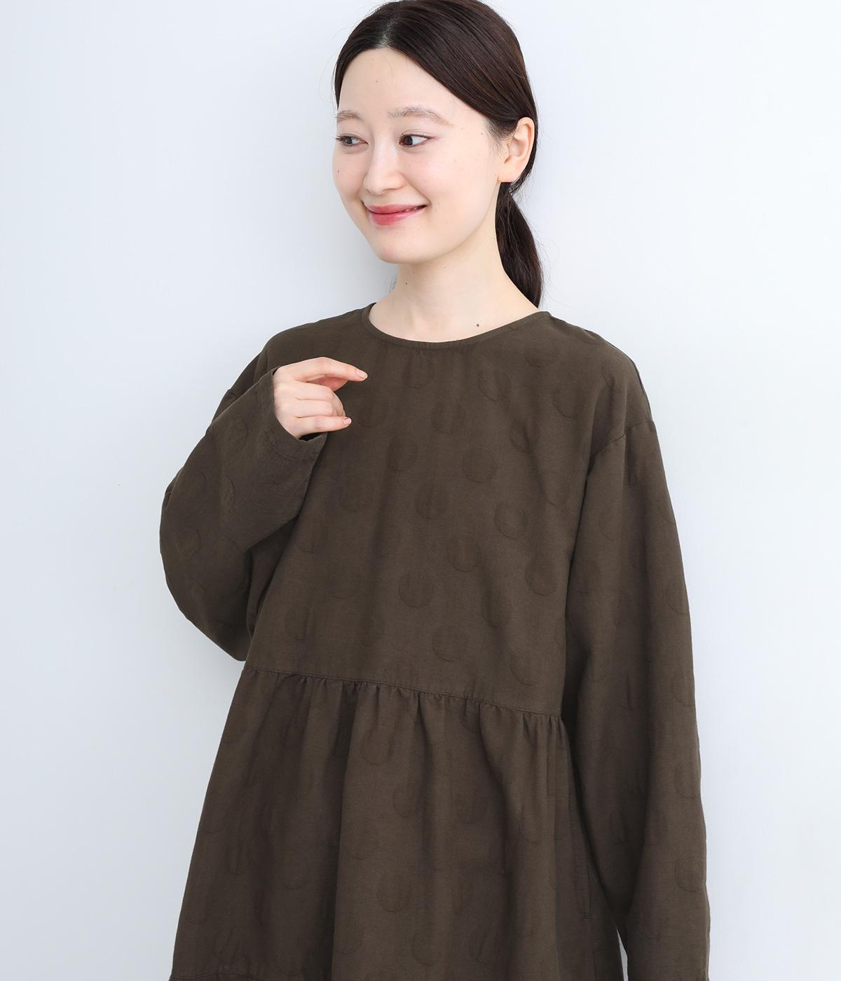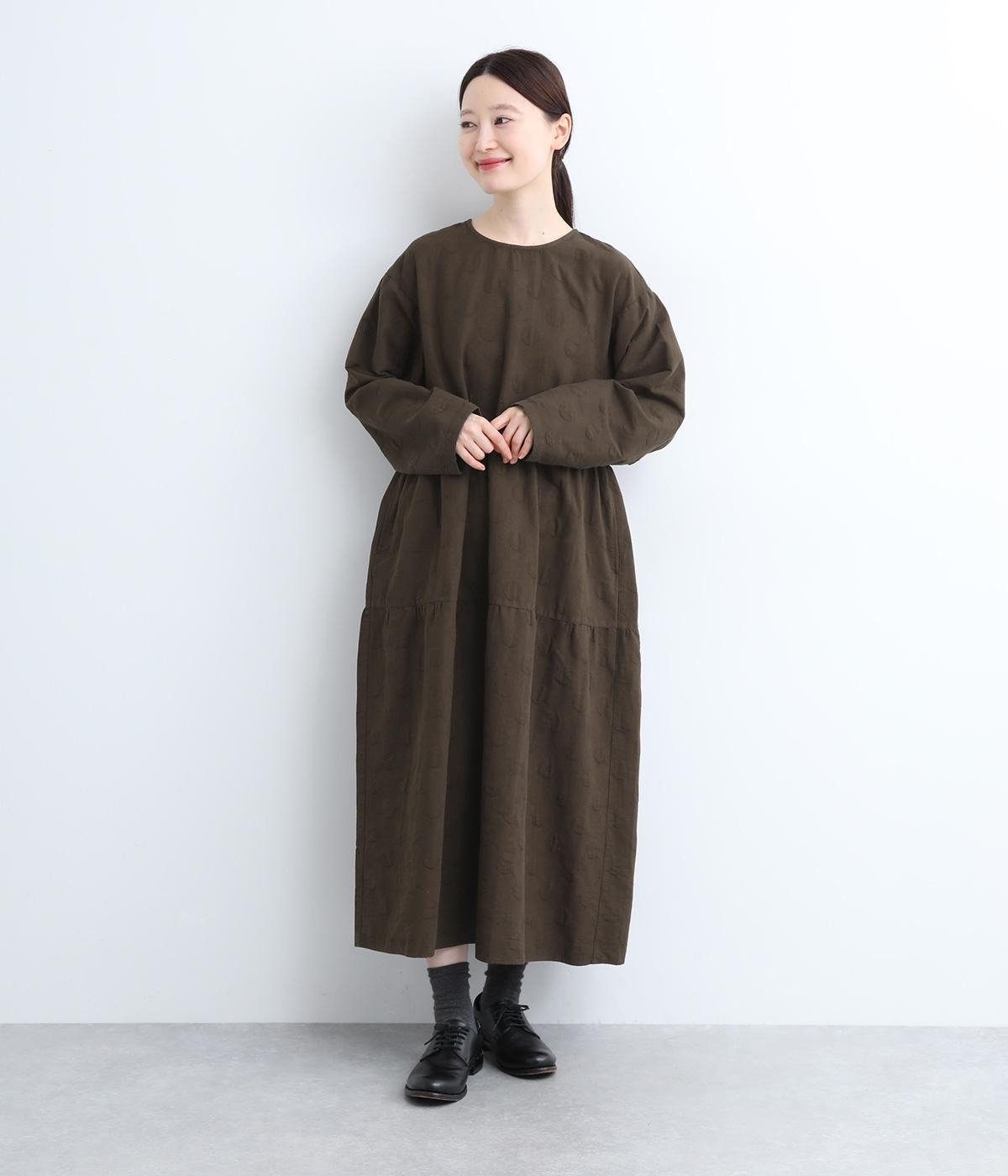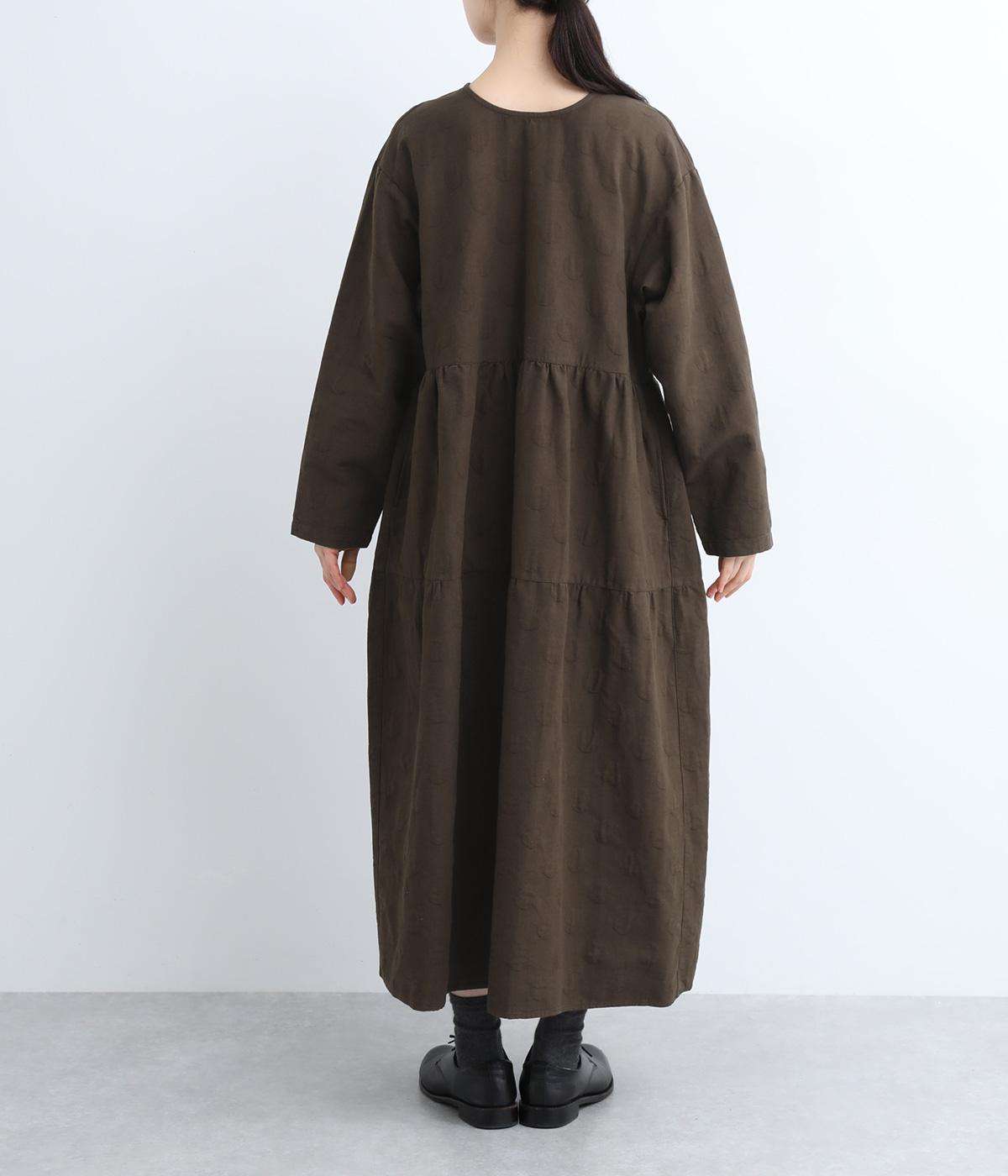 さり気なく表情をつけてくれるドットジャカードのコットン生地を使用。使い勝手のいい薄め中厚手のしっかりとした生地感で、縫製後の製品染めによるヴィンテージ感のある風合いがたのしめます。