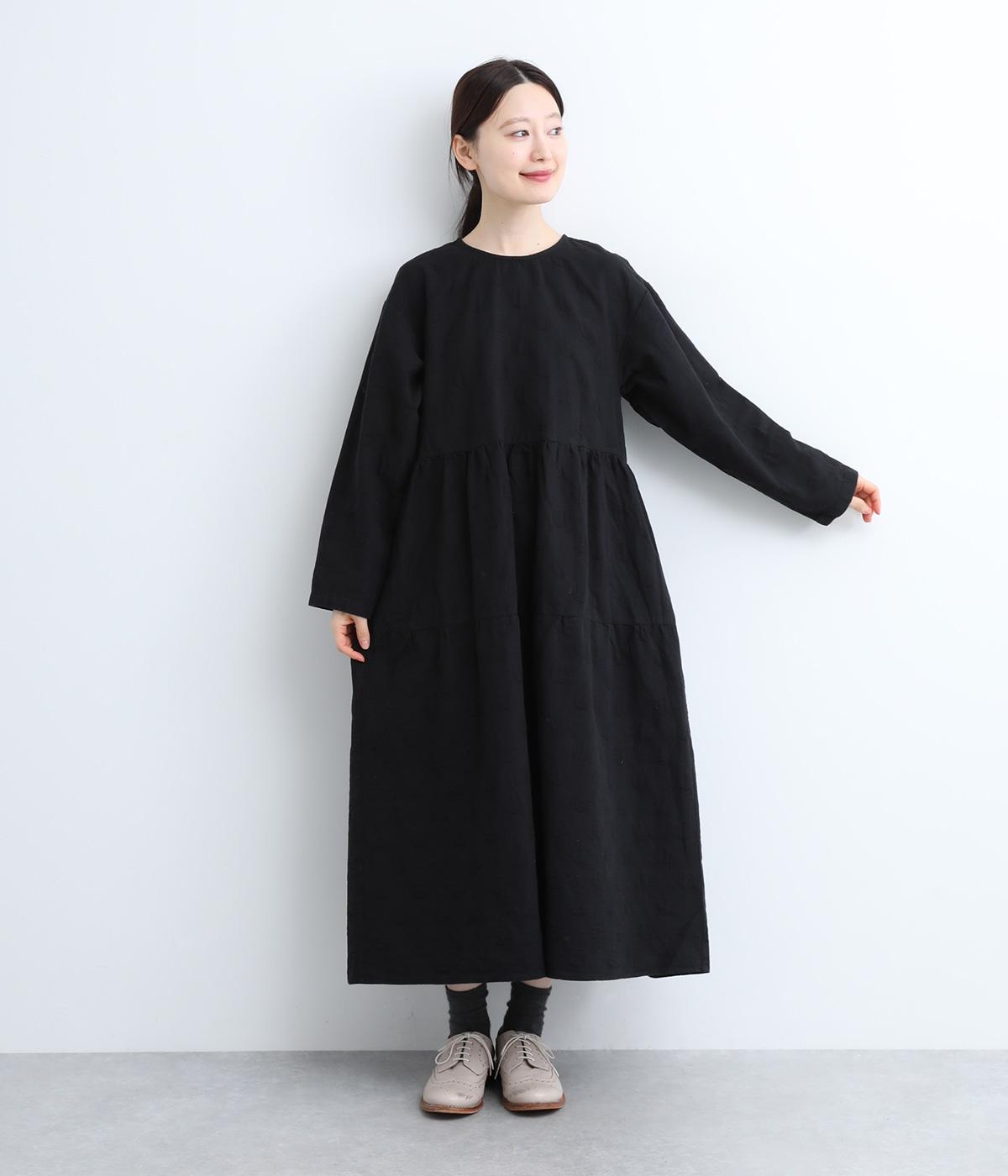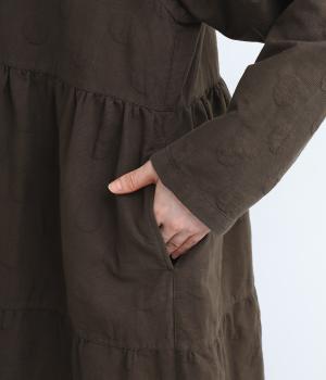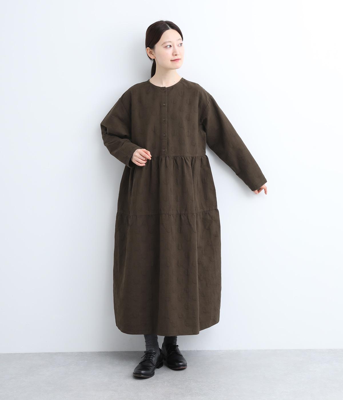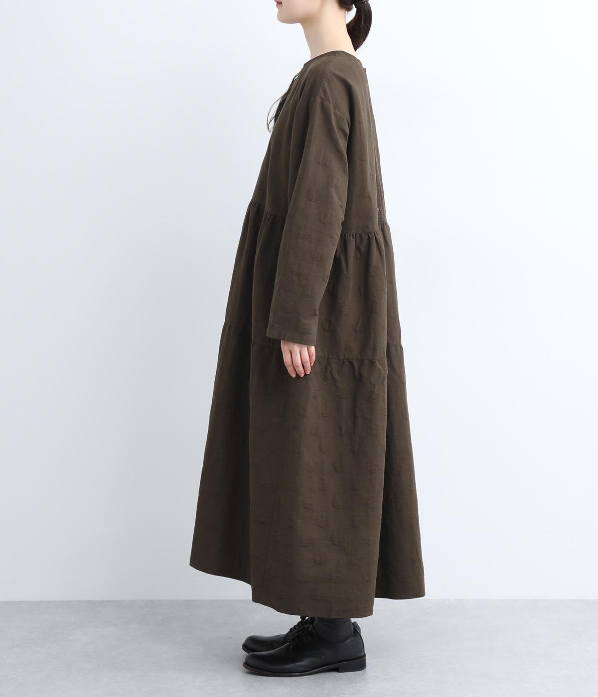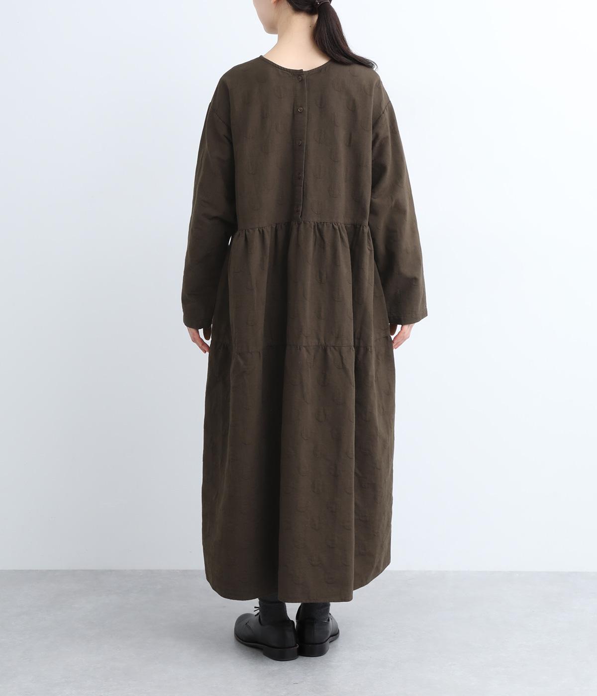 さり気なく表情をつけてくれるドットジャカードのコットン生地を使用。使い勝手のいい薄め中厚手のしっかりとした生地感で、縫製後の製品染めによるヴィンテージ感のある風合いがたのしめます。