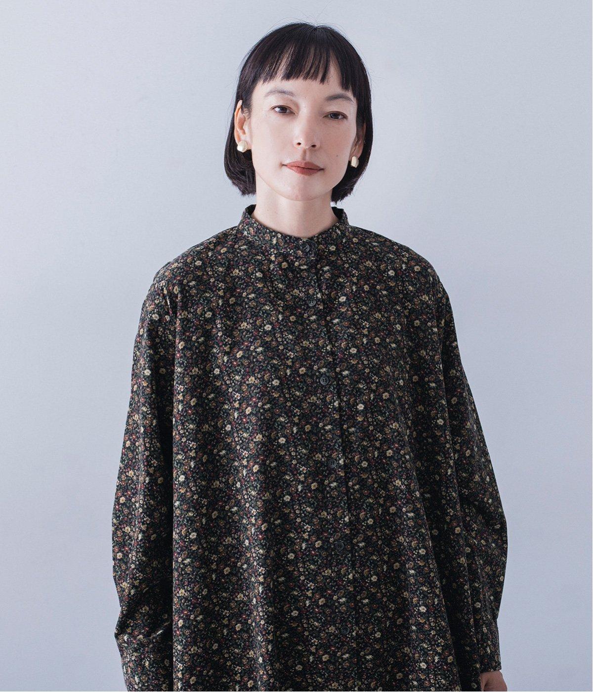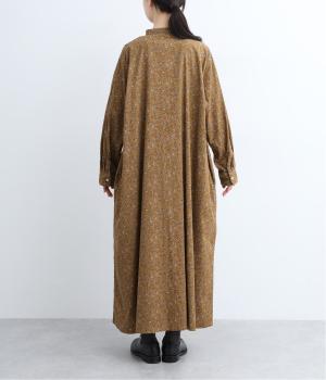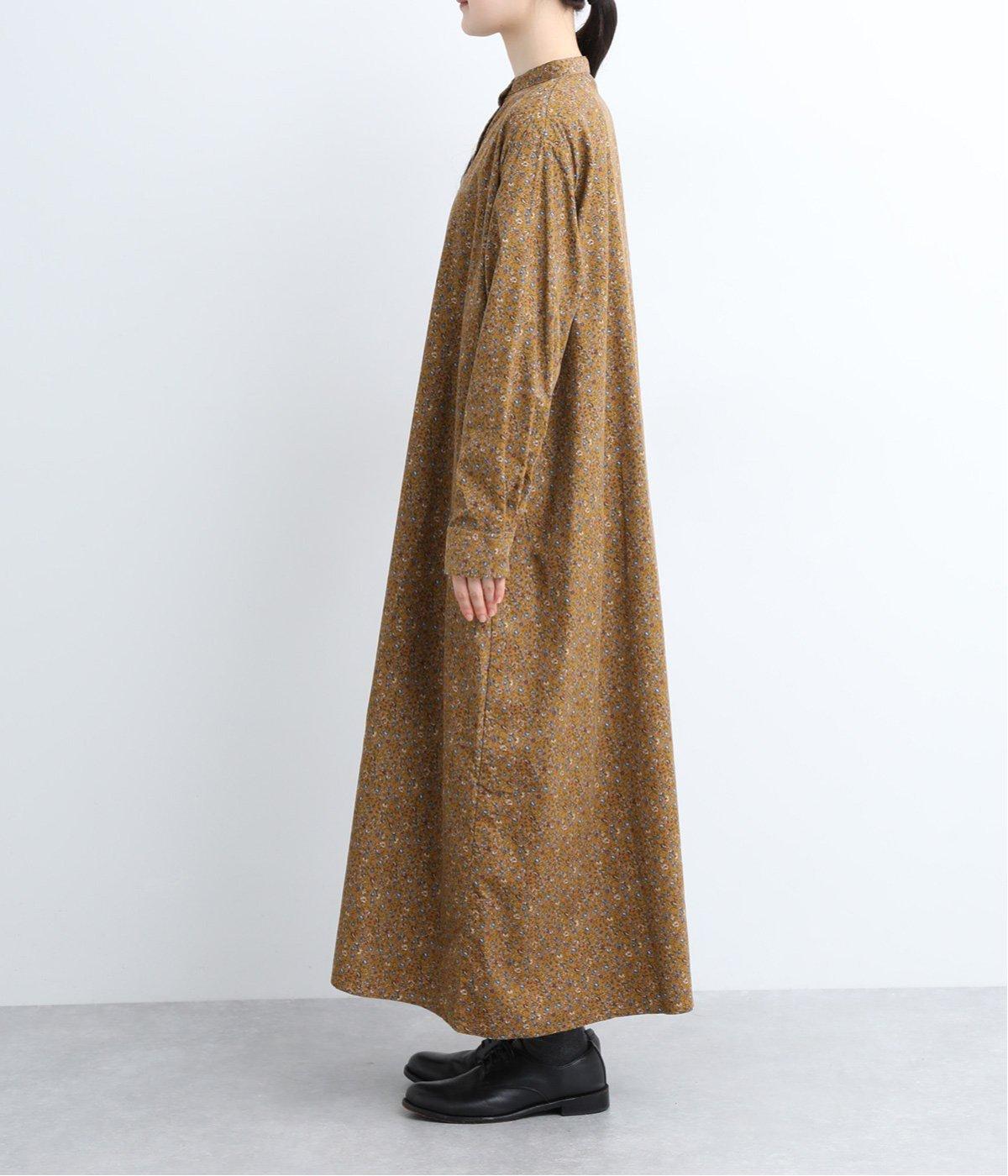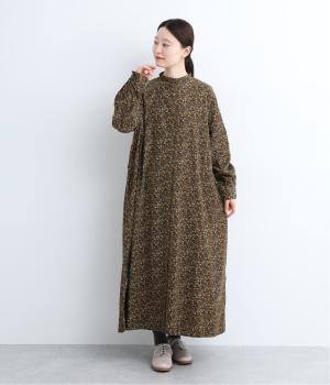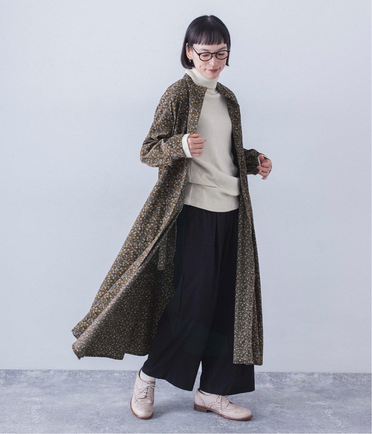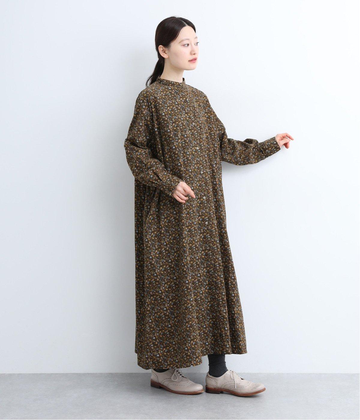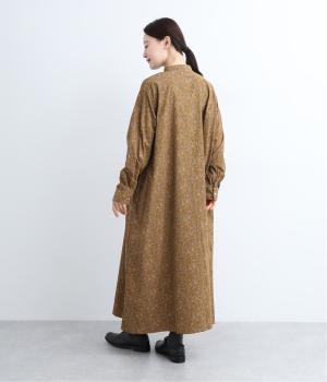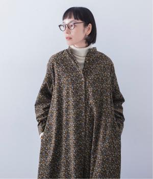 レトロさのあるクラシカルな総花柄で着映え力のあるワンピース。ゆるやかに広がるシンプルなAラインシルエットも雰囲気を盛り上げ、顔まわりはバンドカラーですっきりバランスよく。前あきの羽織りスタイルもお洒落度アップ。