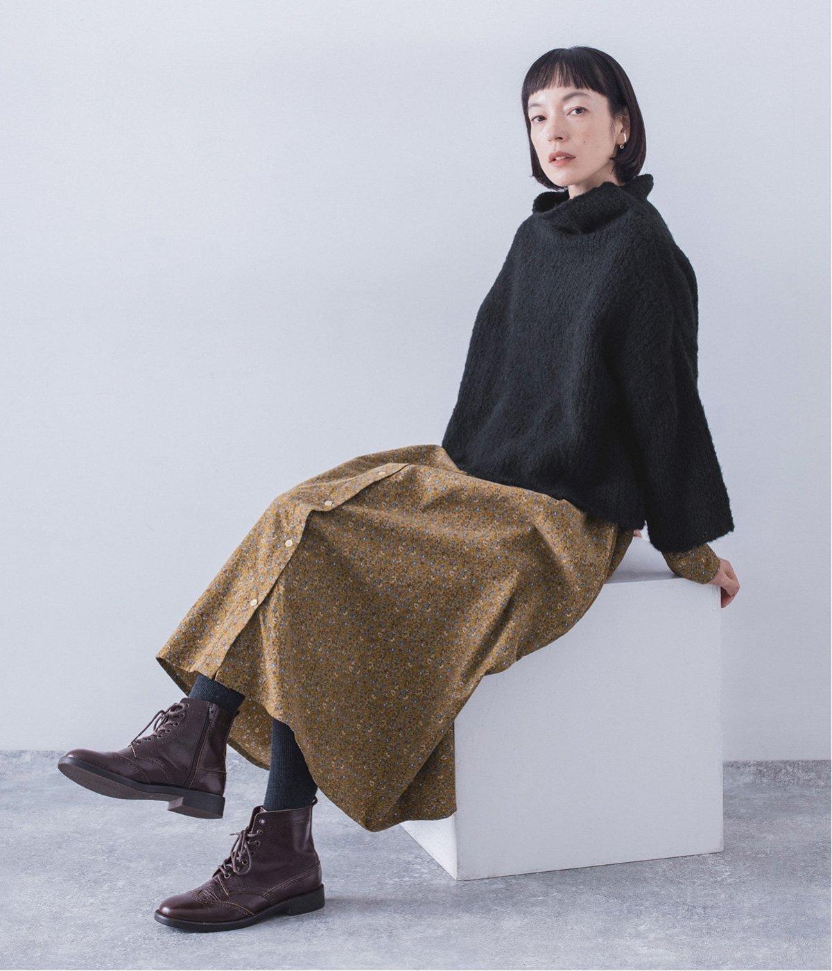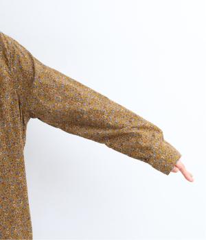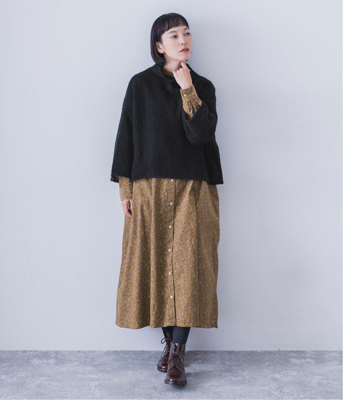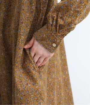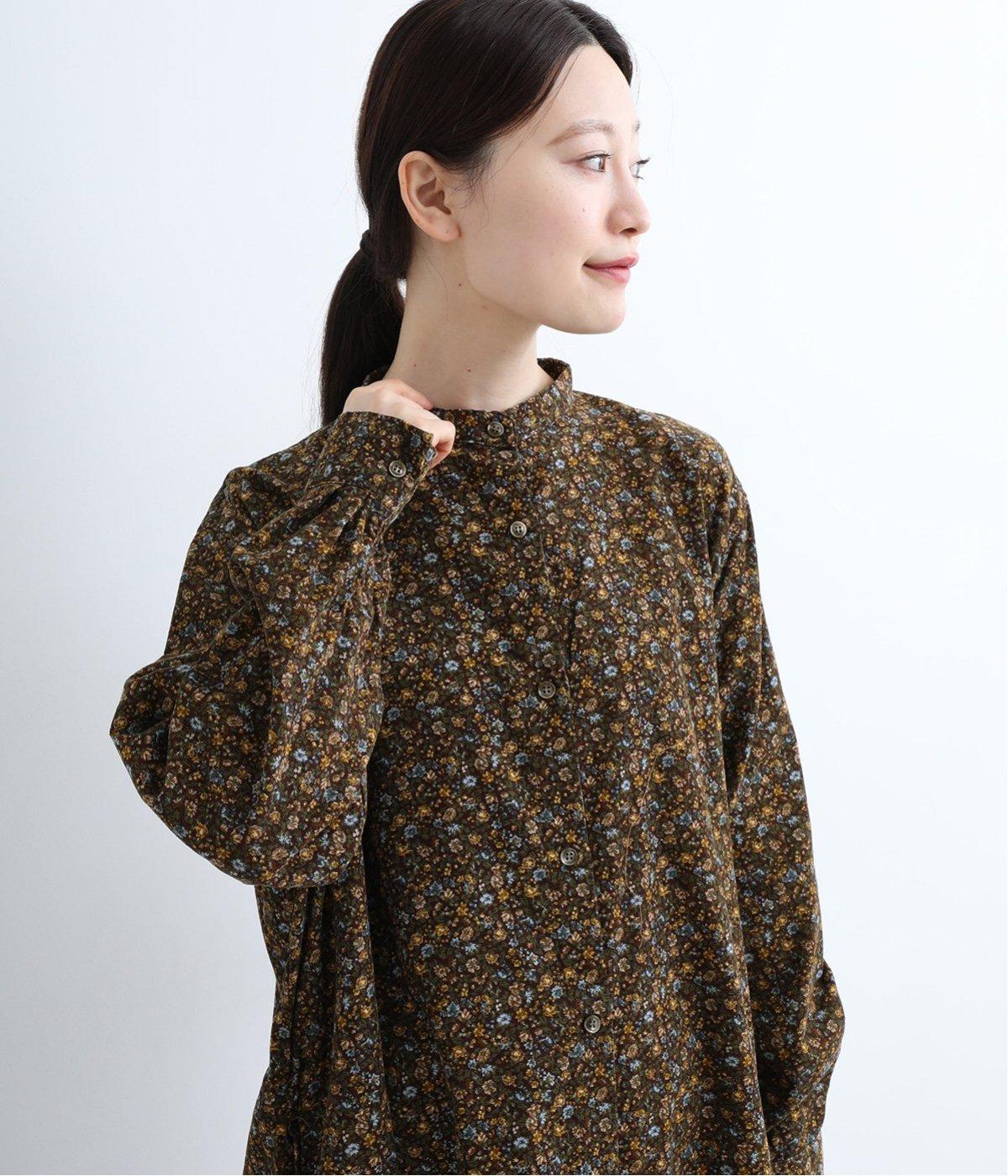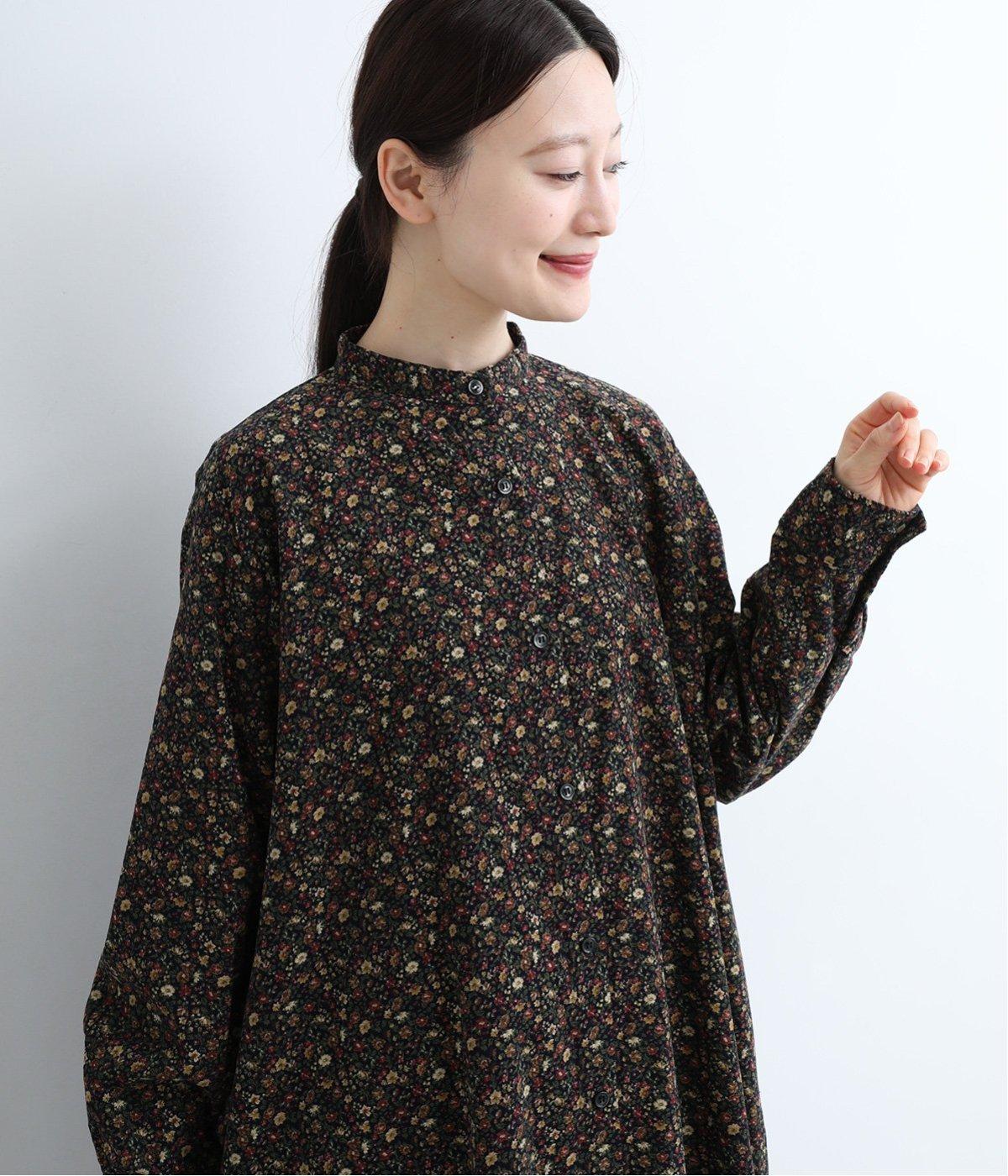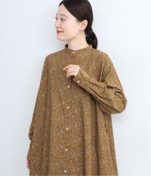レトロさのあるクラシカルな総花柄で着映え力のあるワンピース。ゆるやかに広がるシンプルなAラインシルエットも雰囲気を盛り上げ、顔まわりはバンドカラーですっきりバランスよく。前あきの羽織りスタイルもお洒落度アップ。