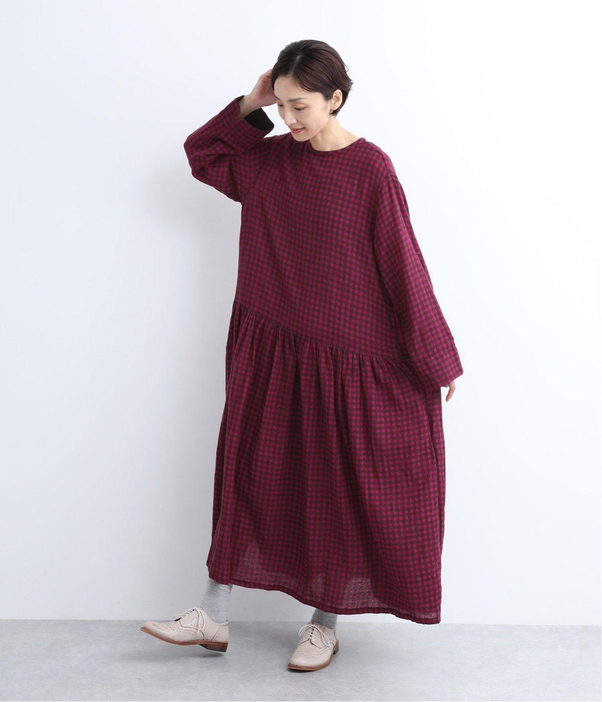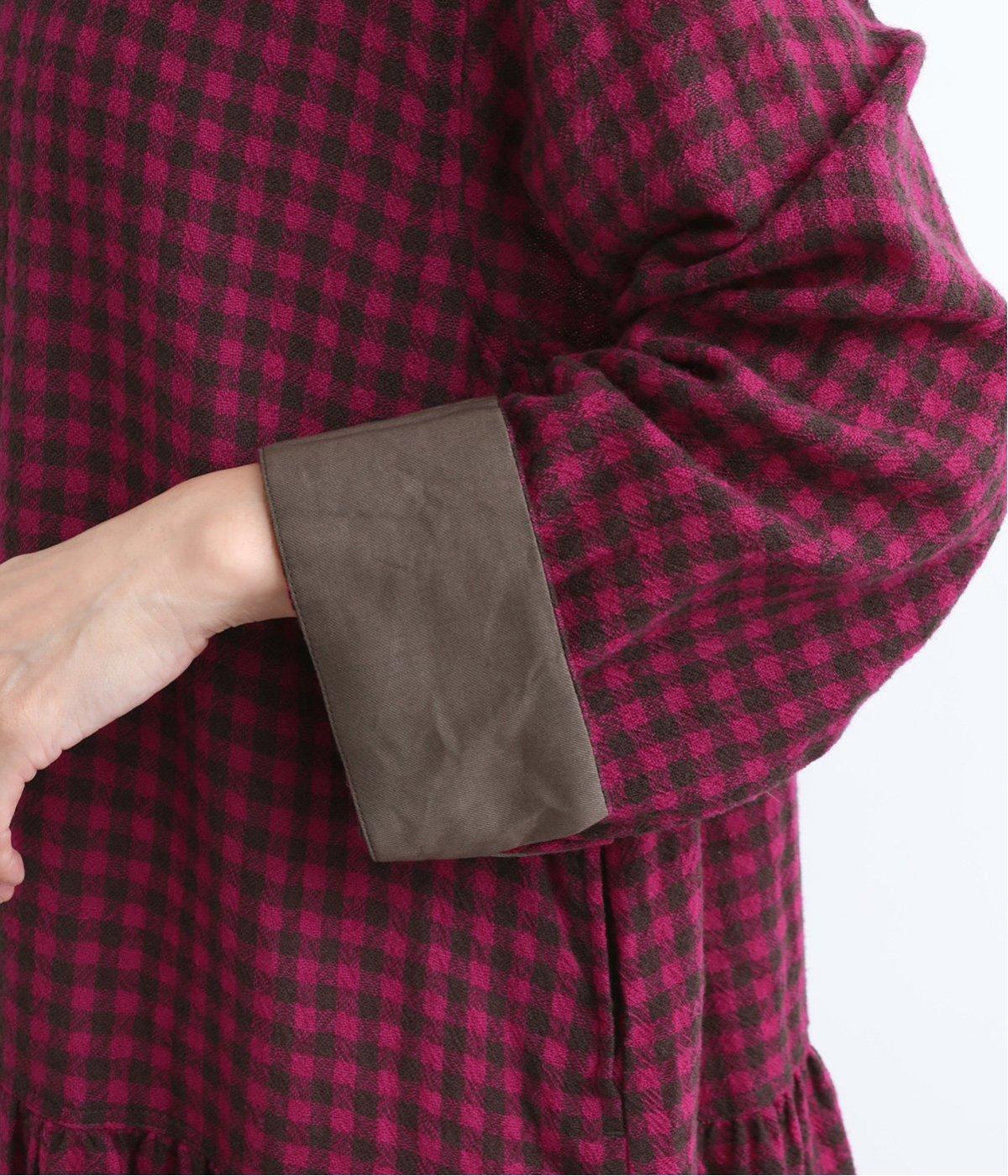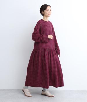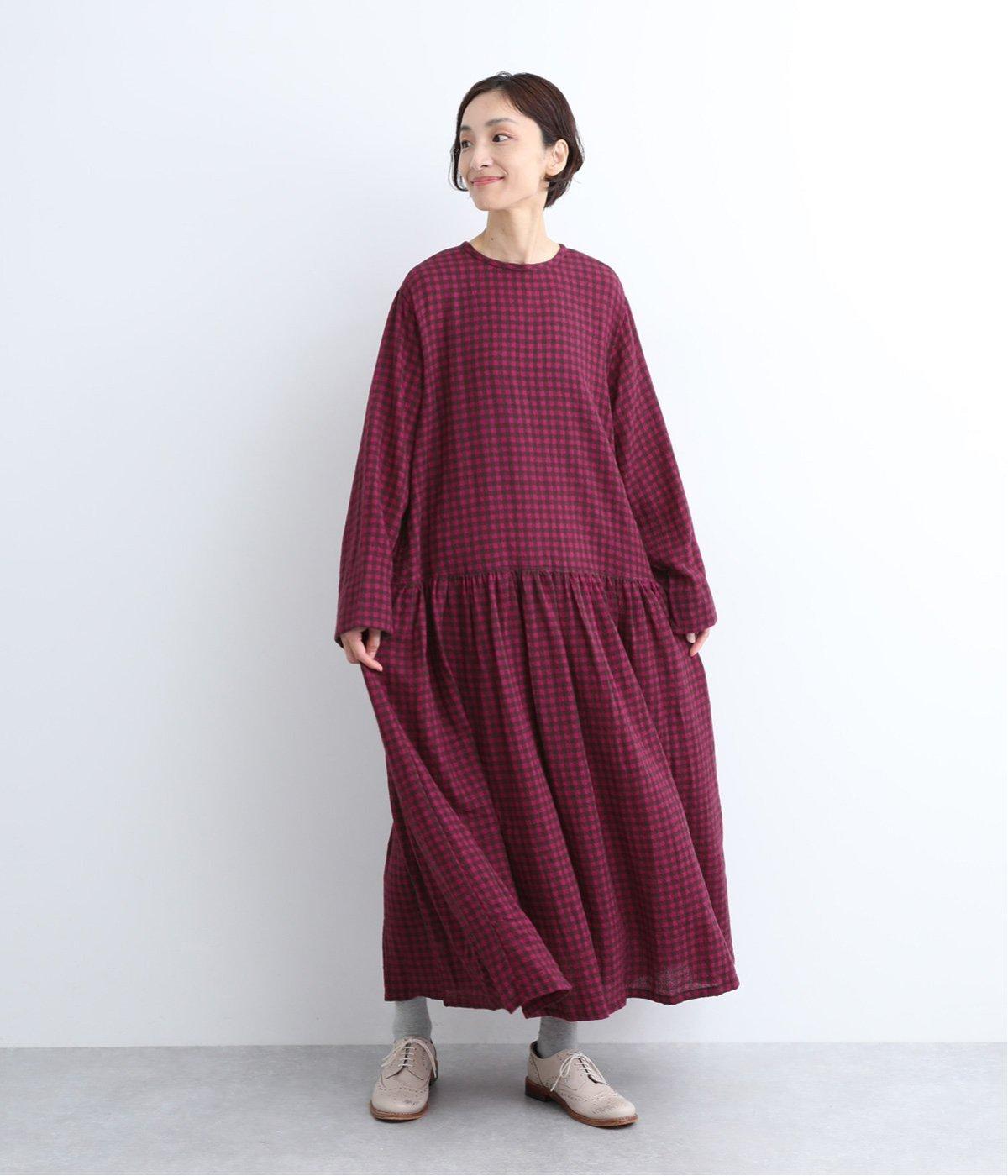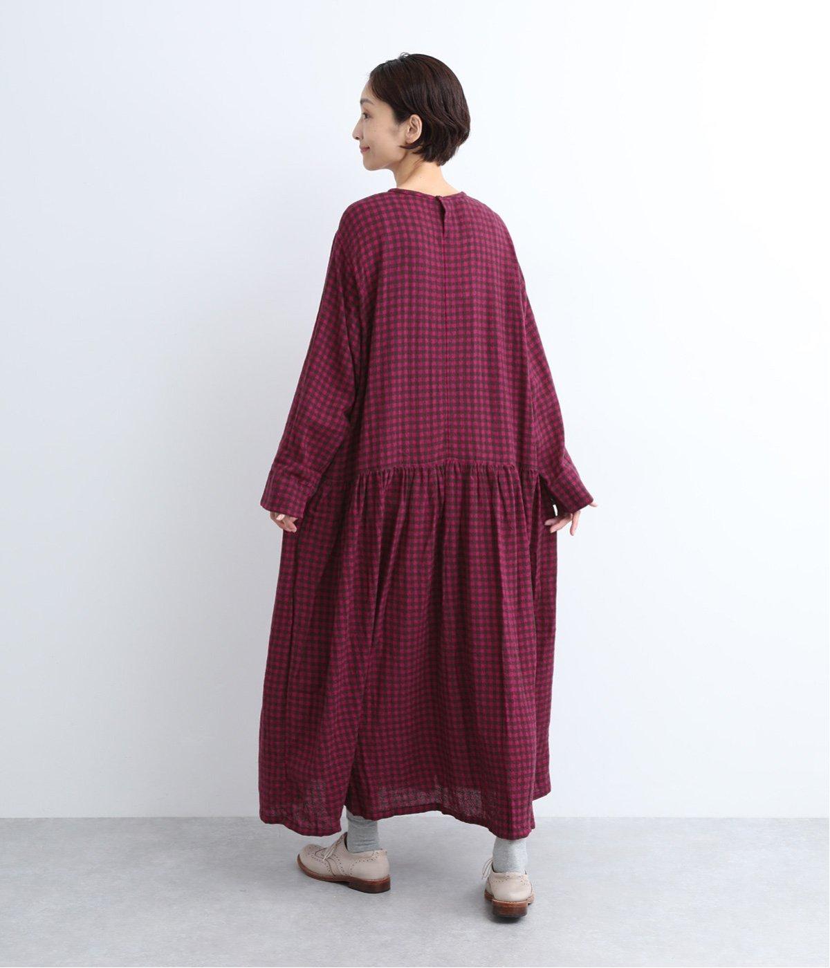 起毛感とチェック柄が表情豊かで、一枚着でスタイリングが完成する着映え力のあるワンピース。ギャザーでフレア感を出し、低めの位置で切り替えてリラックス感を演出。袖裏は無地の綿生地で、折り返してチラ見せするとちょうどいいアクセントに。