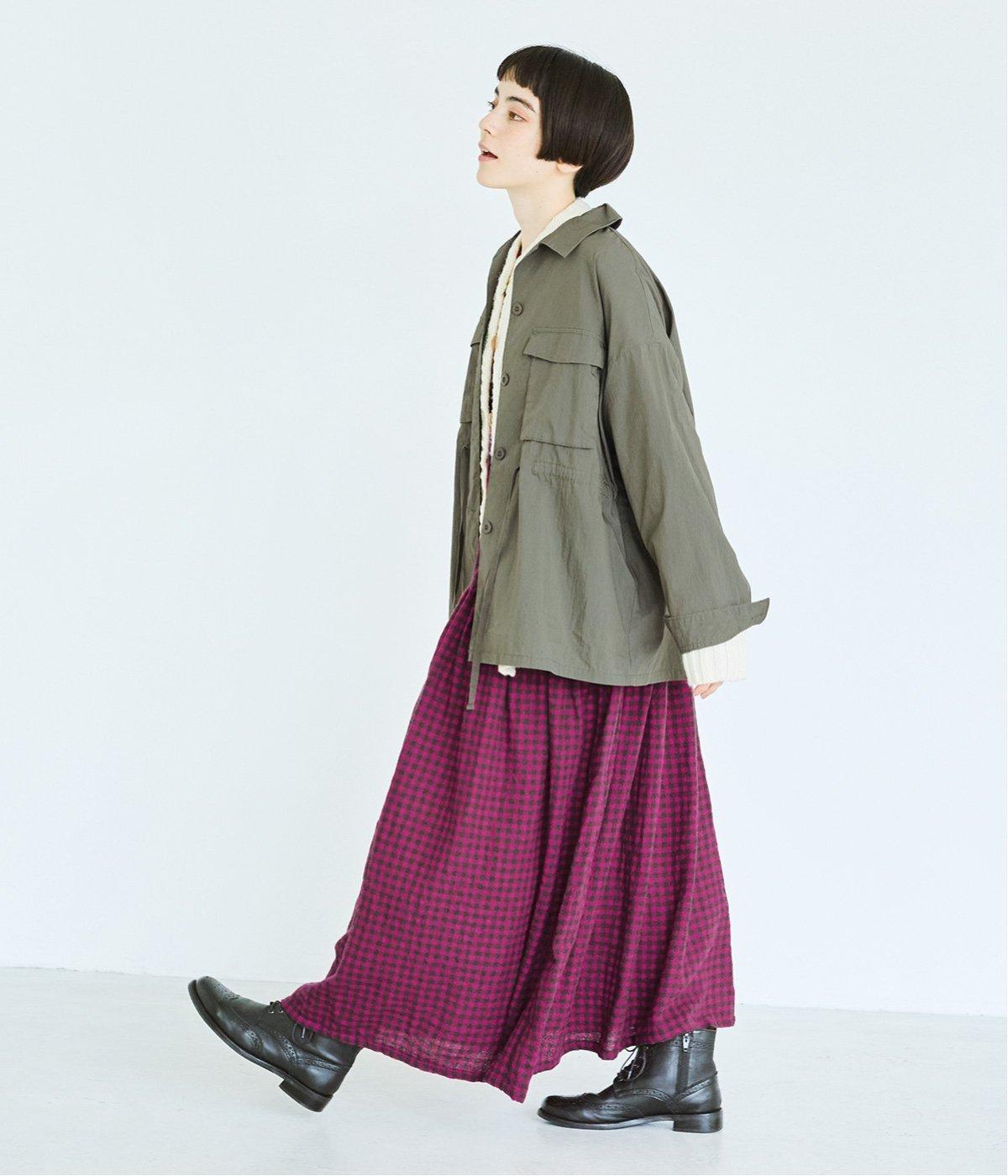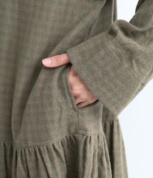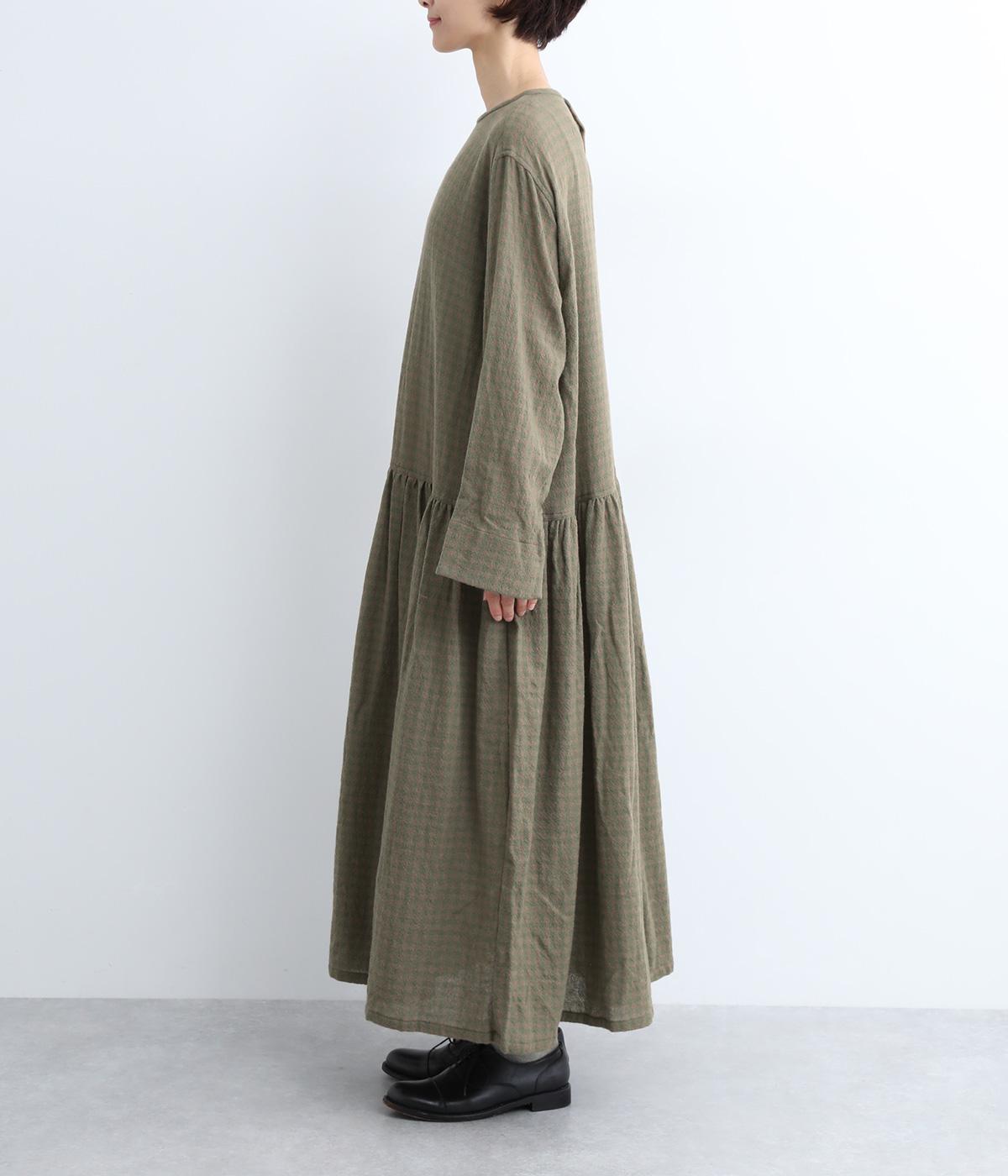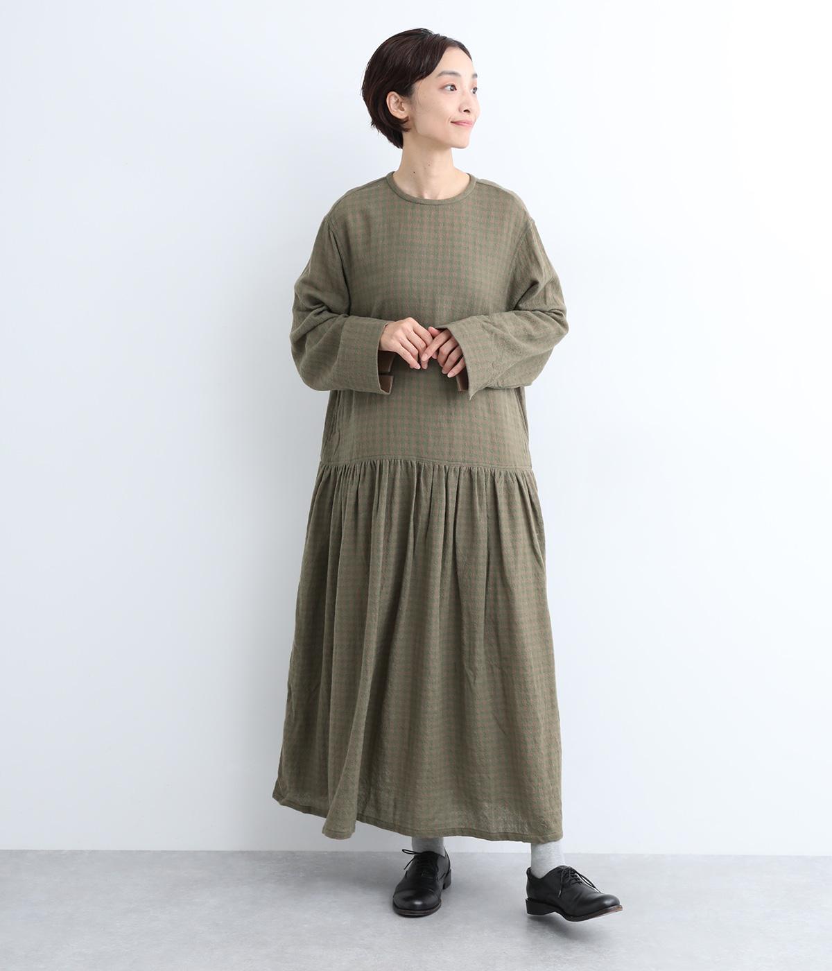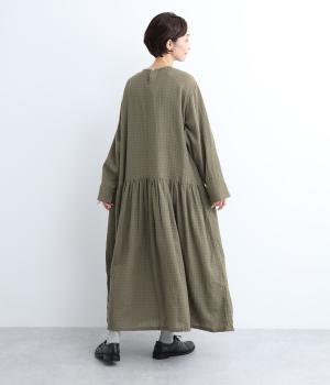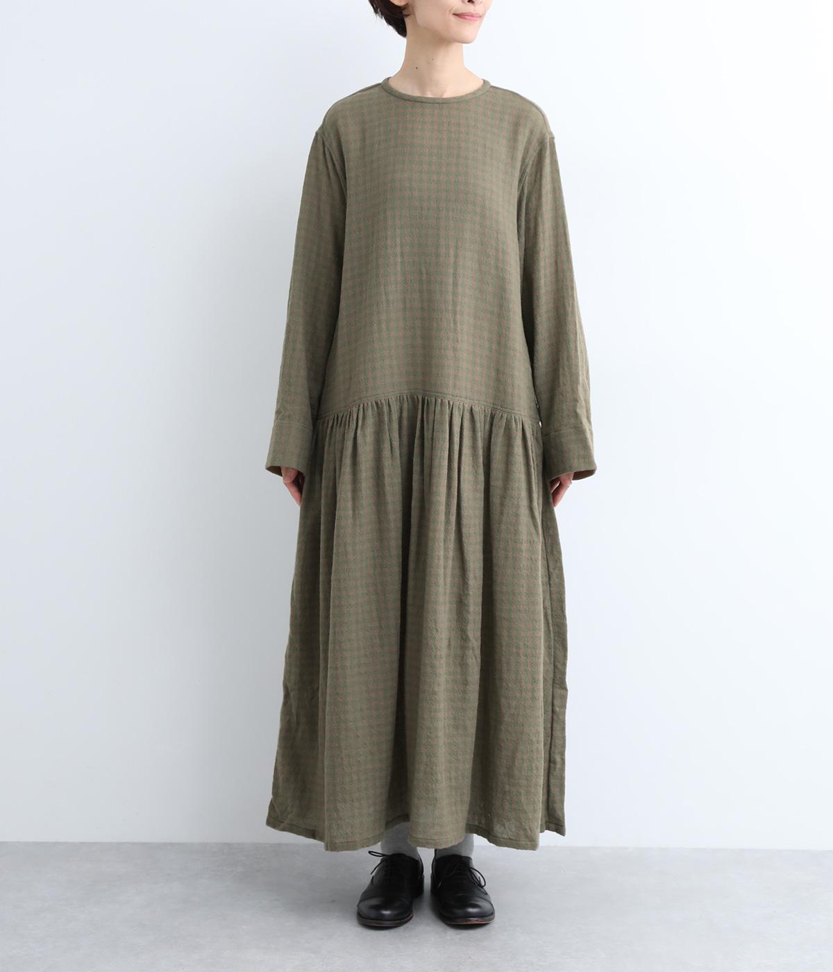 起毛感とチェック柄が表情豊かで、一枚着でスタイリングが完成する着映え力のあるワンピース。ギャザーでフレア感を出し、低めの位置で切り替えてリラックス感を演出。袖裏は無地の綿生地で、折り返してチラ見せするとちょうどいいアクセントに。