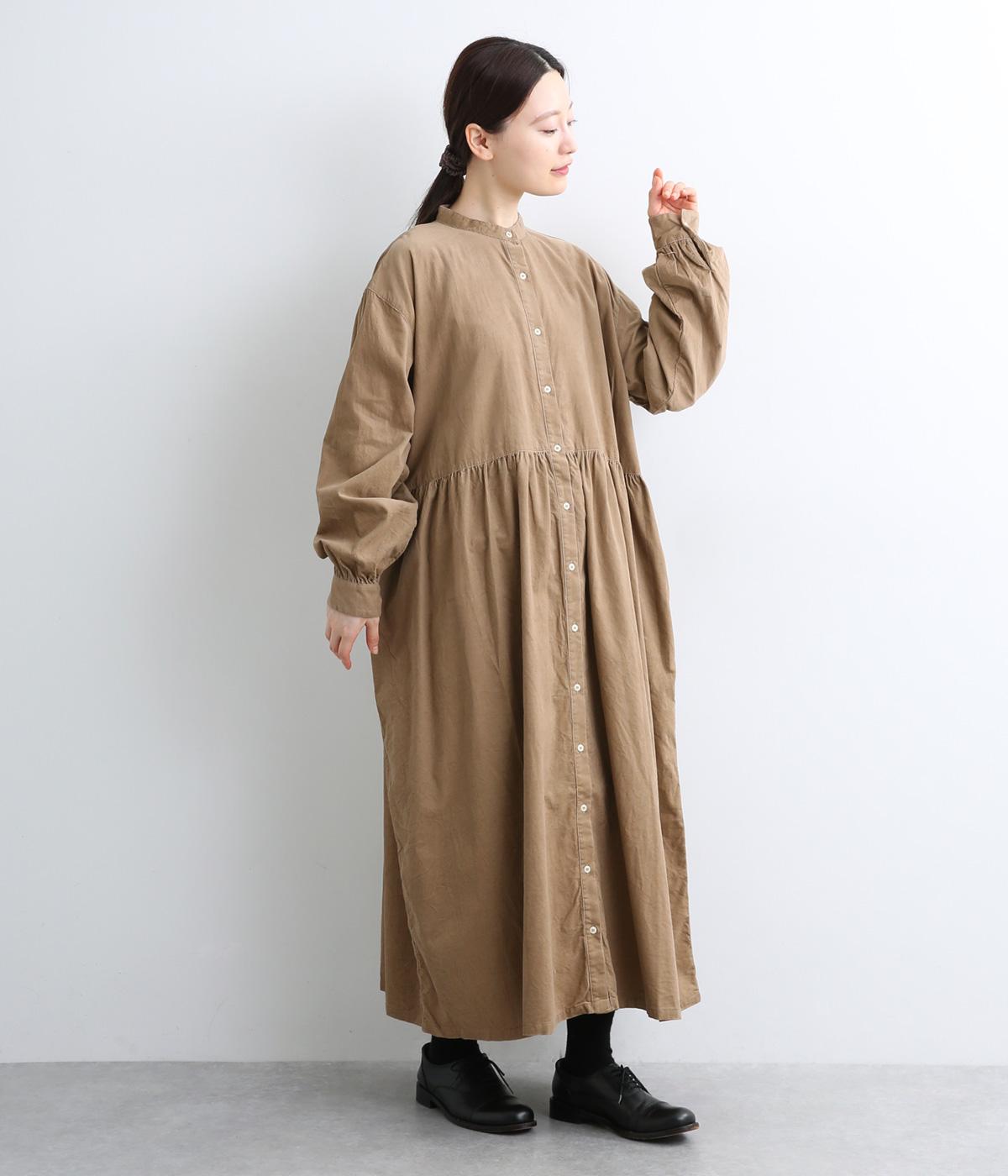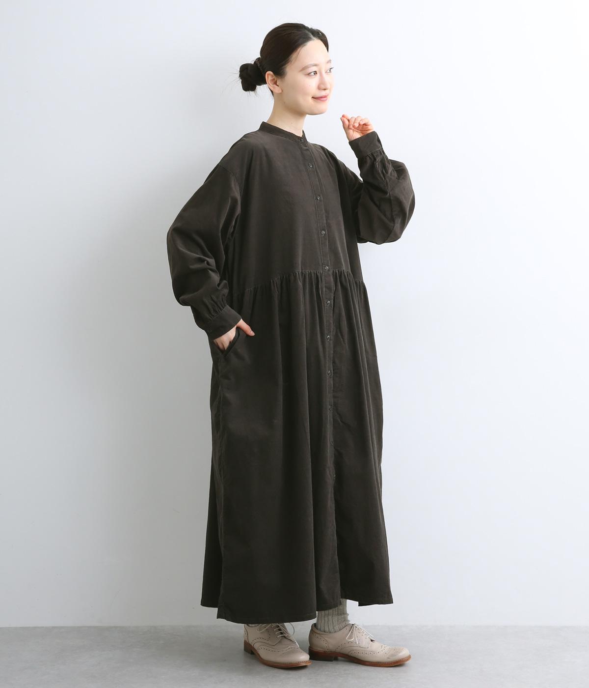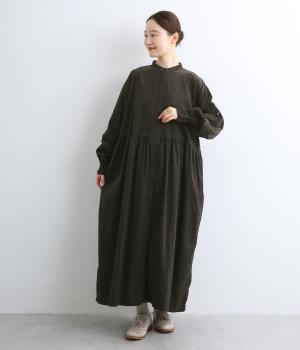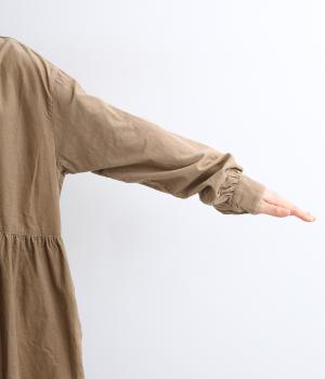 自然とくしゅっとたるむ、ボリューム袖がワンポイントになったワンピースです。切り替えにたっぷりギャザーを入れたゆとりのあるシルエットが着心地よく、羽織りにしたり着まわし力も◎。ロング丈で存在感もあり、シンプルながらも着映え力のある一着。