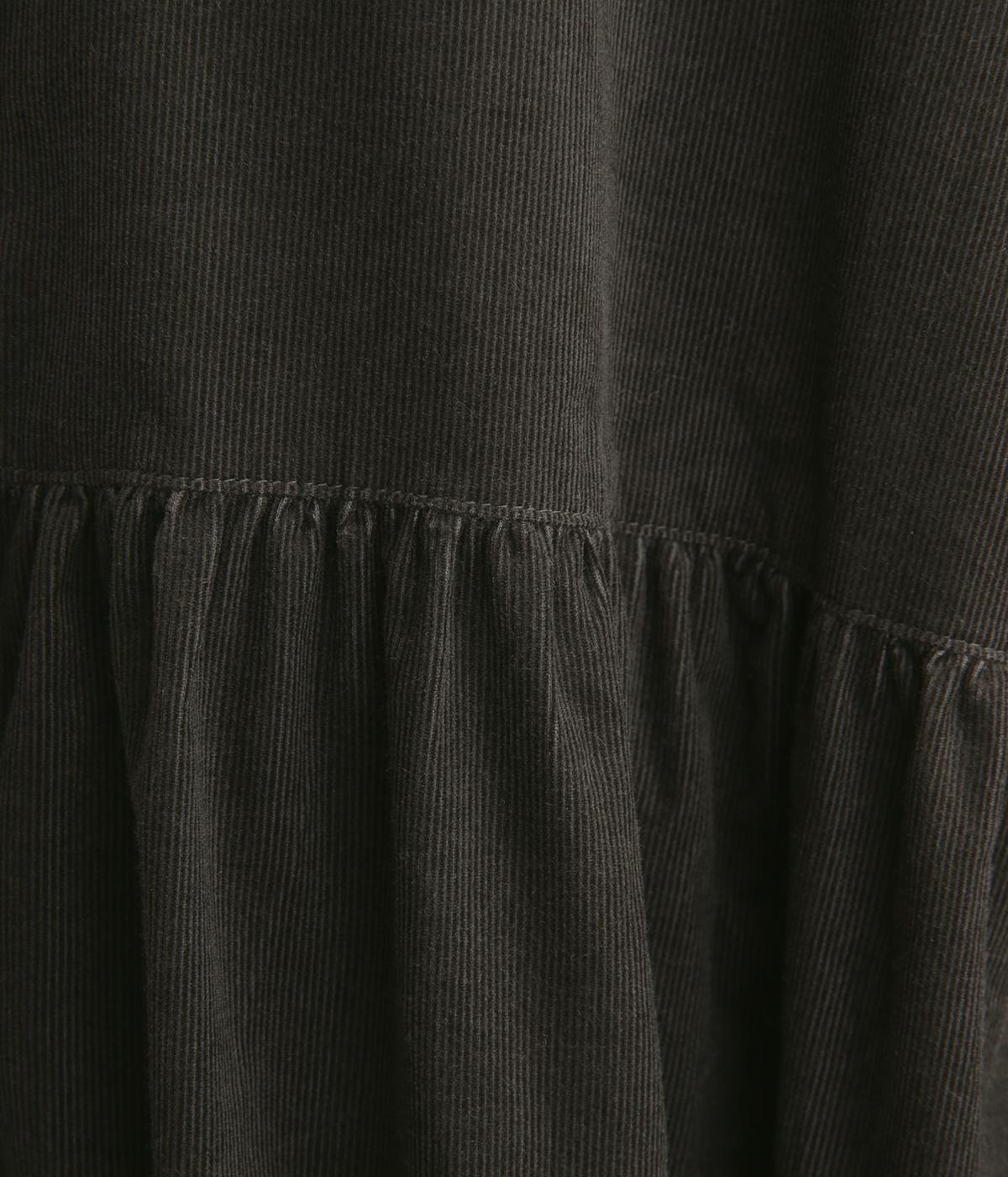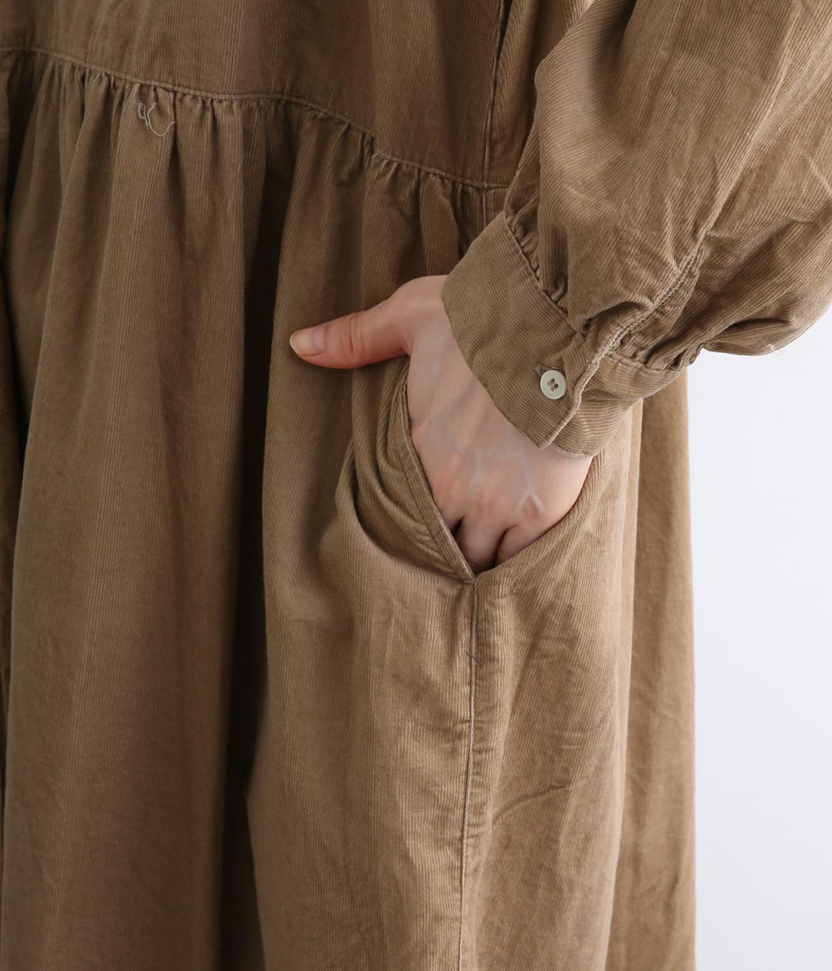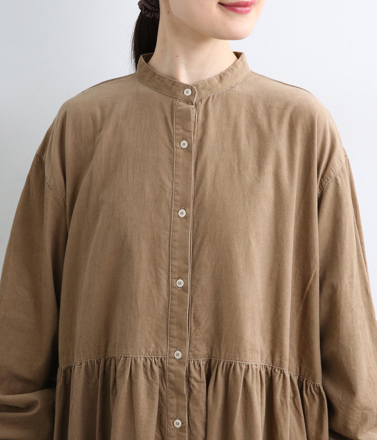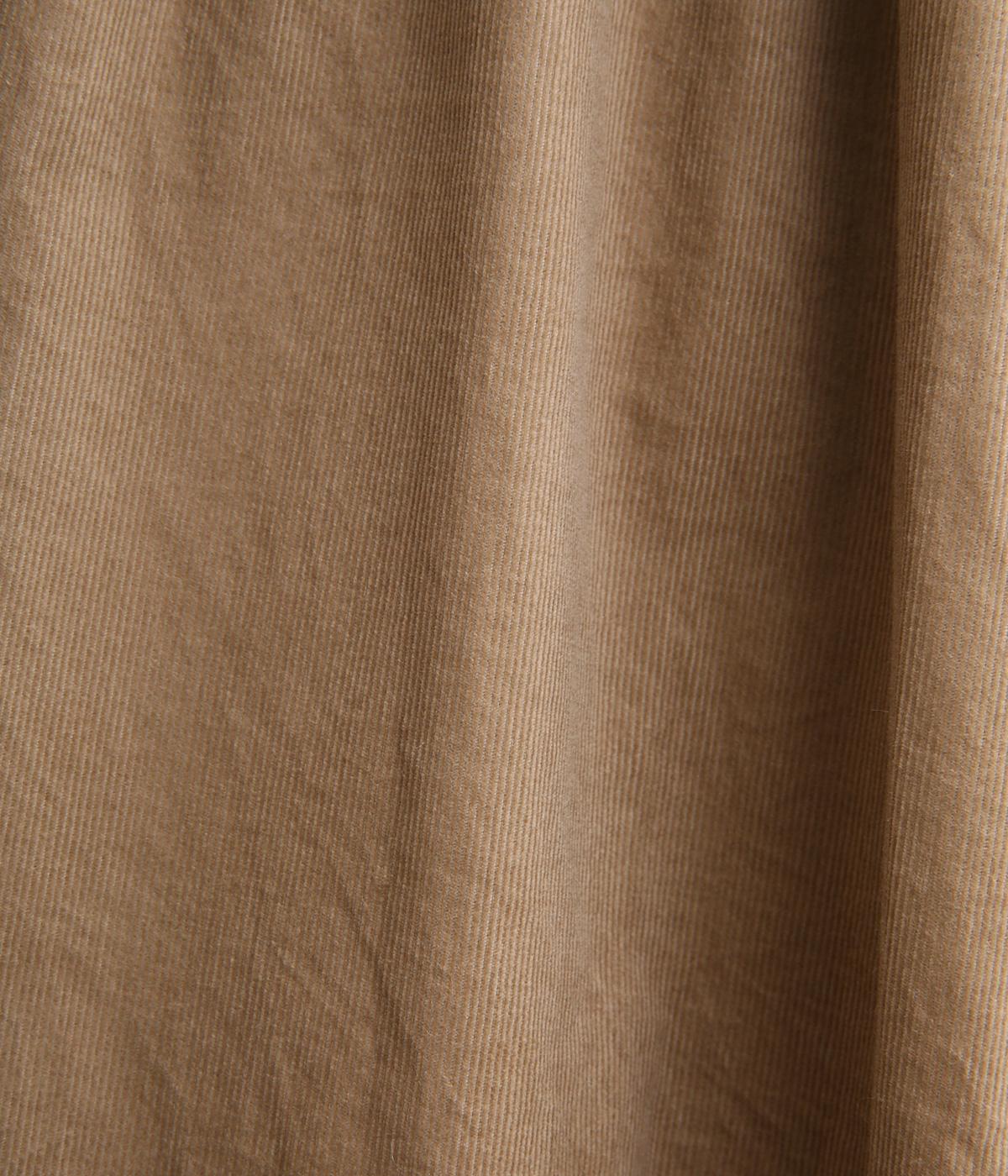 タテ方向に畝のあるコール天生地を使用しています。独特のあたたかみや光沢感のある表情が特徴で存在感があります。生地自体は薄めの中厚手なのでデイリーに着こなしやすい生地感です。