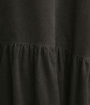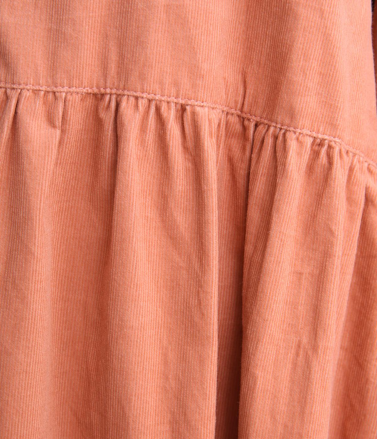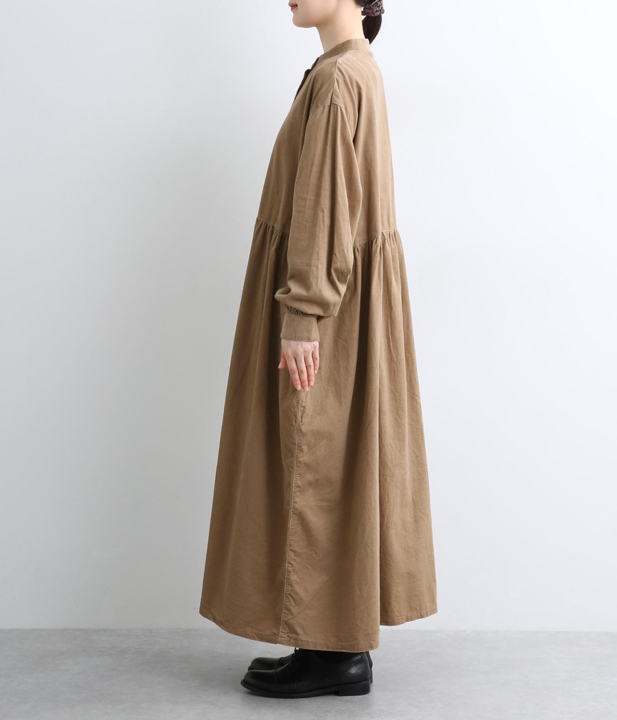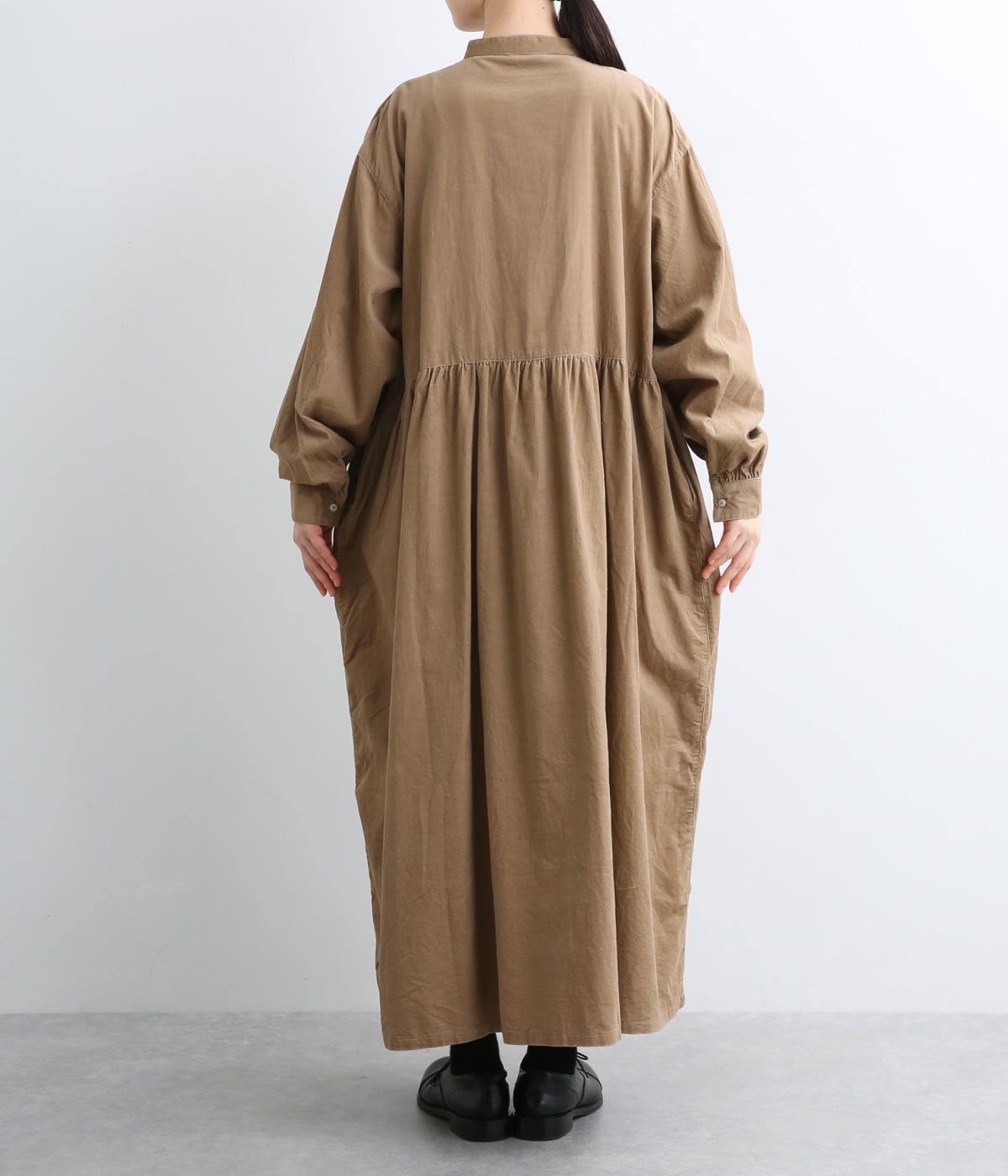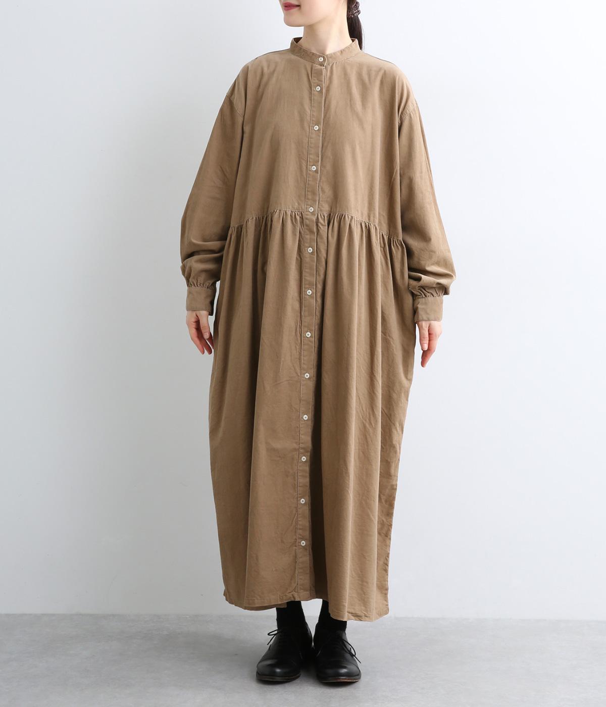 タテ方向に畝のあるコール天生地を使用しています。独特のあたたかみや光沢感のある表情が特徴で存在感があります。生地自体は薄めの中厚手なのでデイリーに着こなしやすい生地感です。