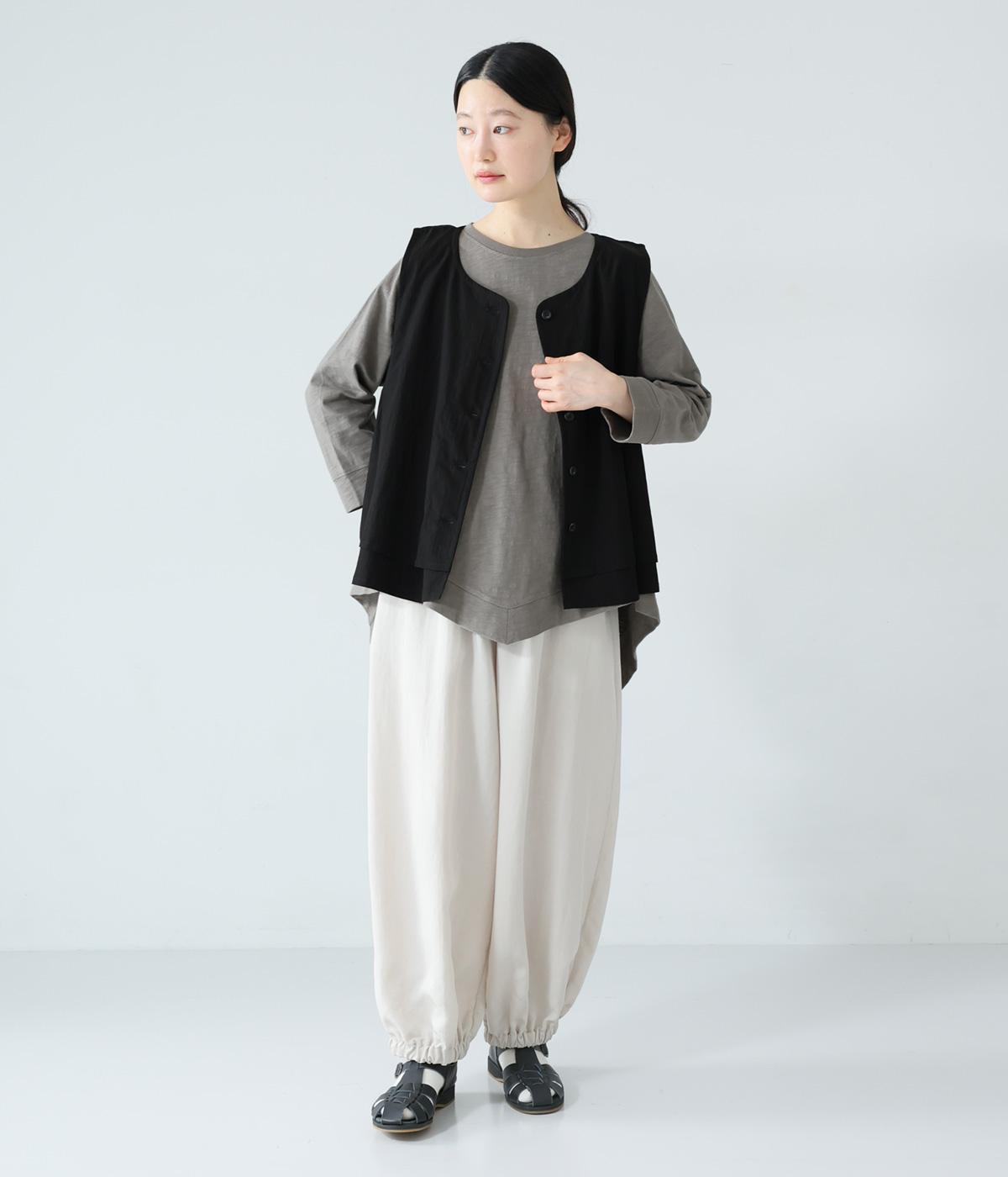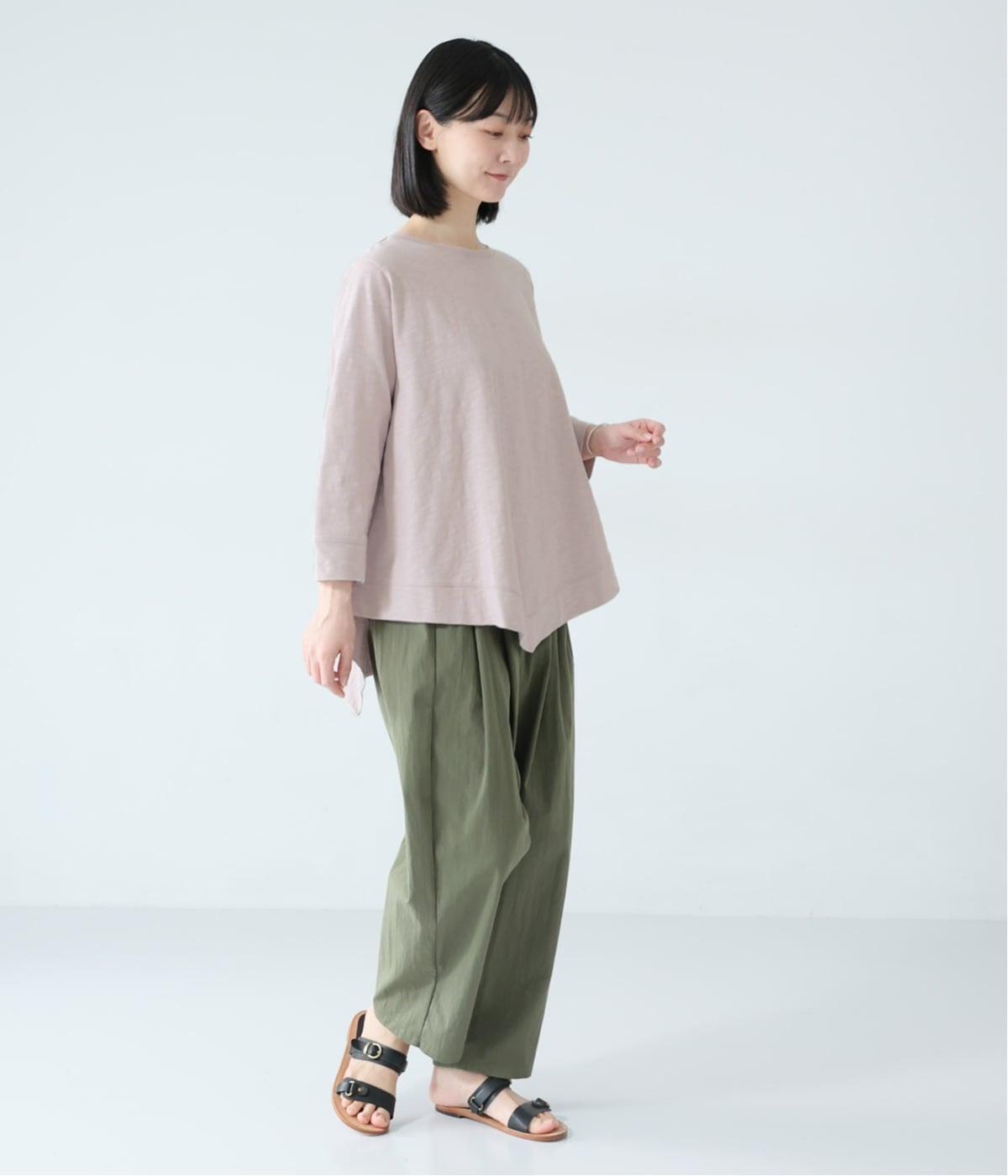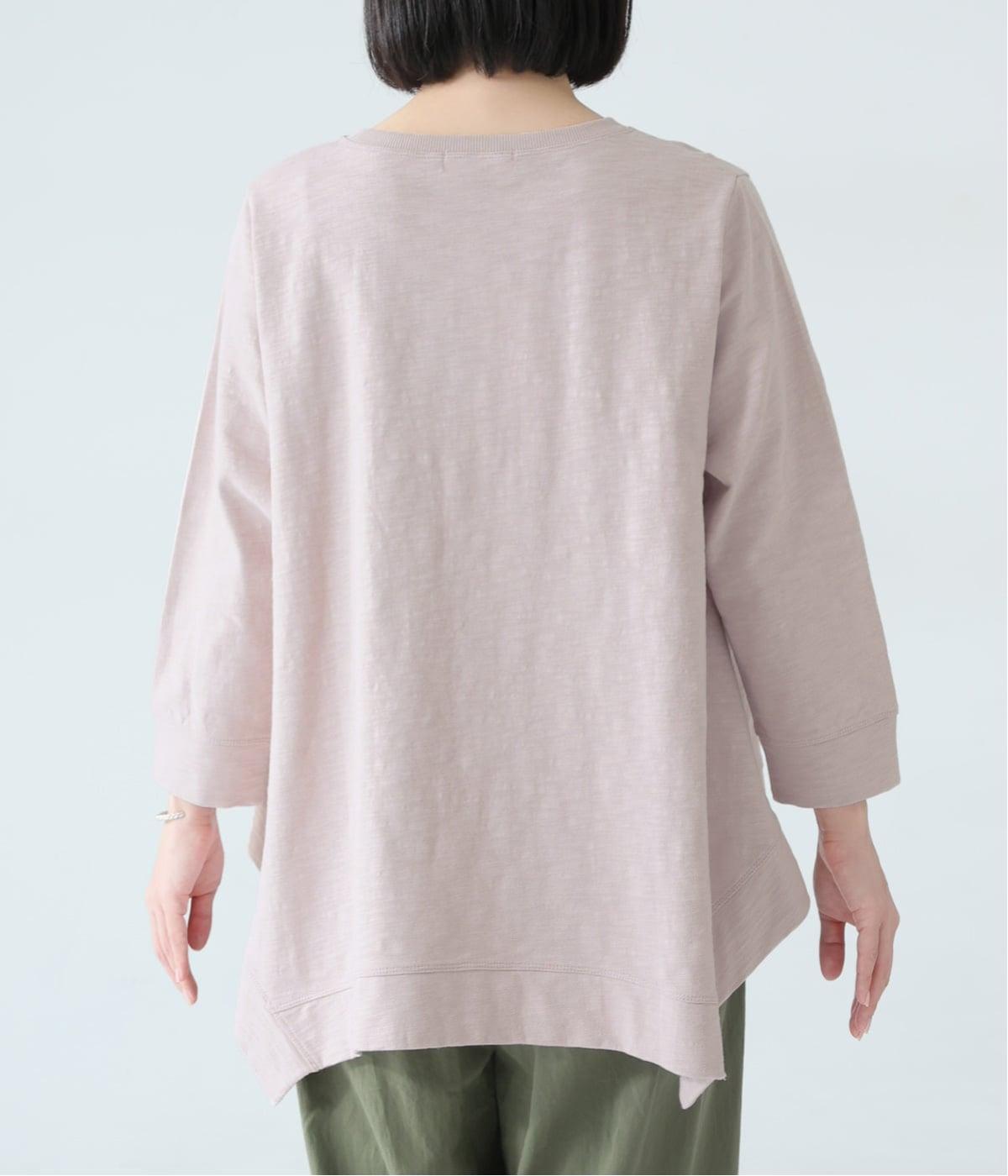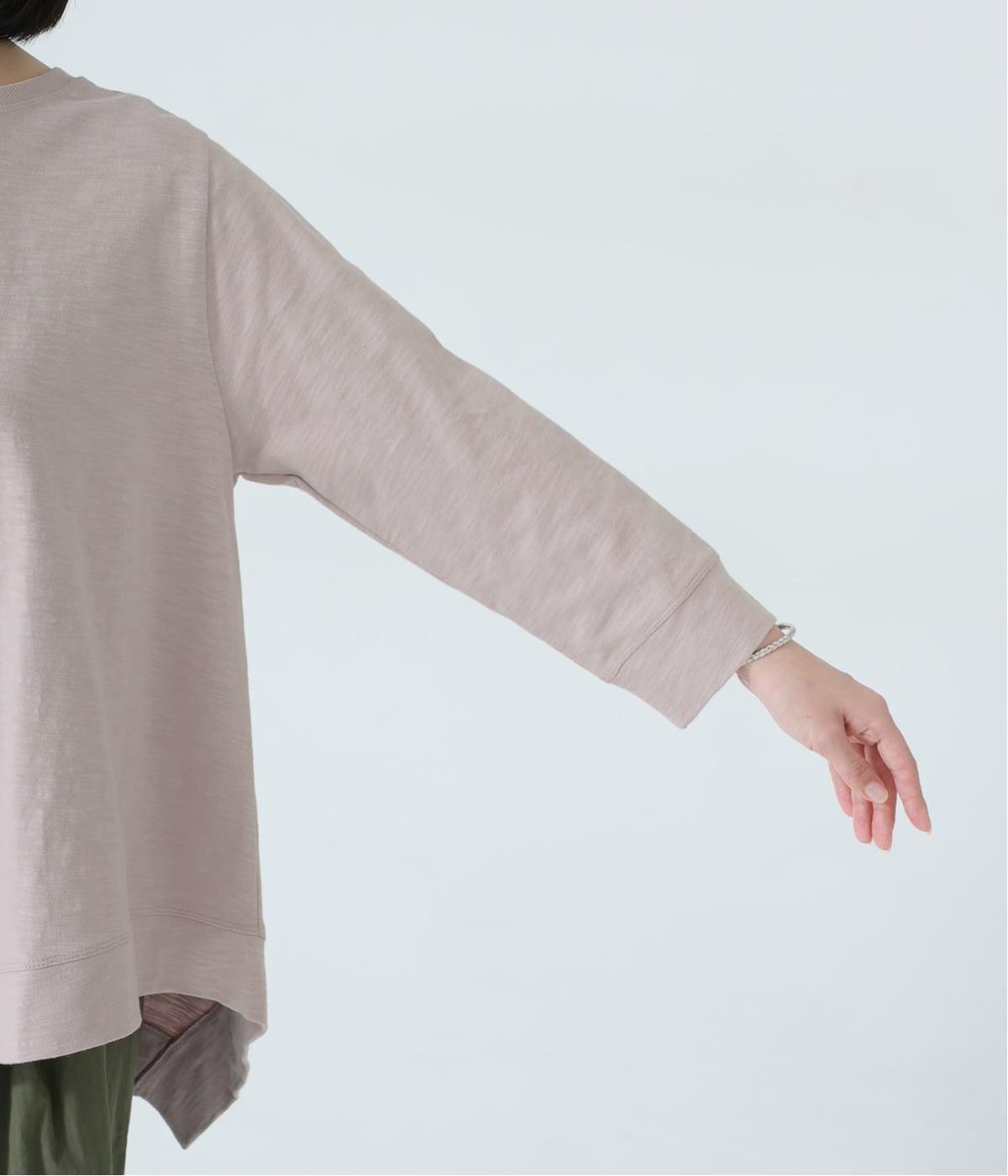 変形ヘムが軽やかな動きのあるシルエットを描くプルオーバーです。ゆるやかに揺れるラインがやわらかな表情を生み、前後差のある裾がニュアンスを添えます。シンプルながらも装いのポイントになり、バランスよく着こなせる一枚です。